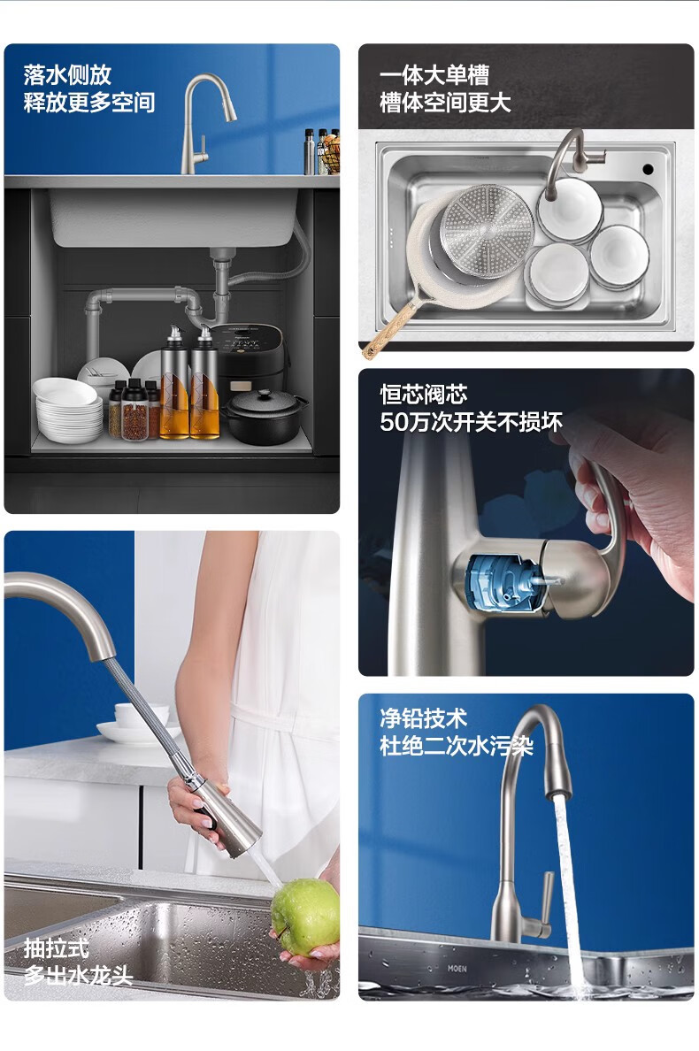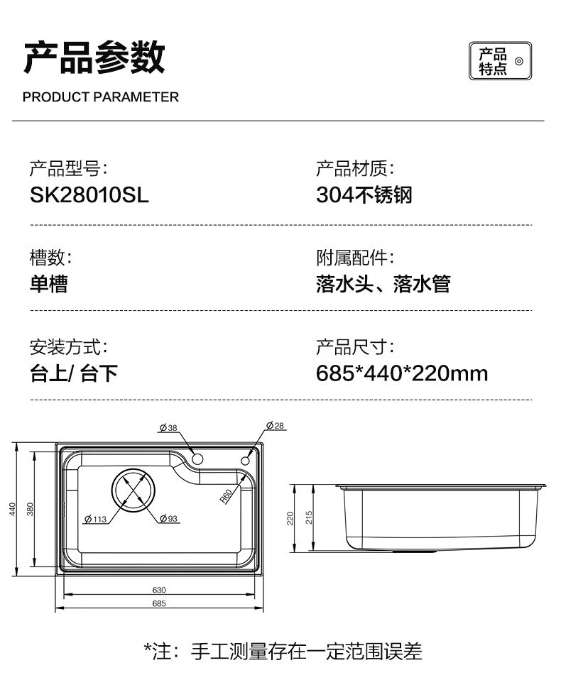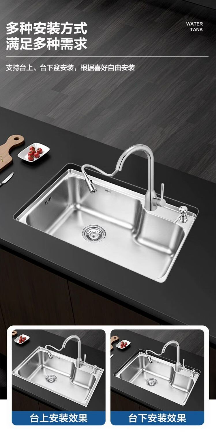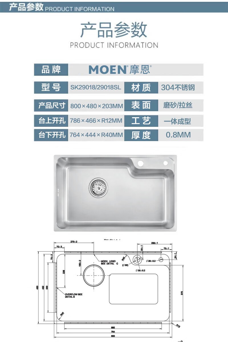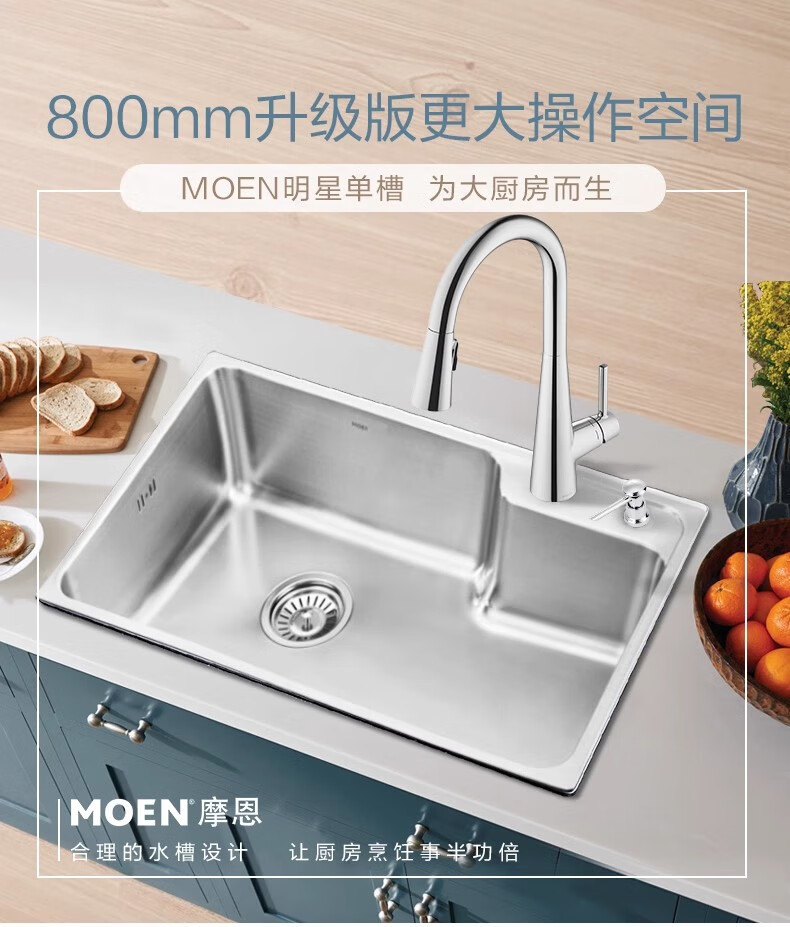 Moen 68/70/80cm classic kitchen single-slot stainless steel sink 28010SL 29018SL 68cm single-slot SK28010SL 685*440*2