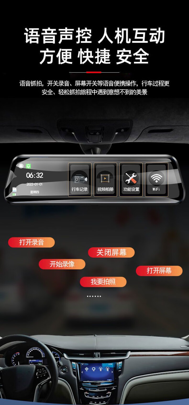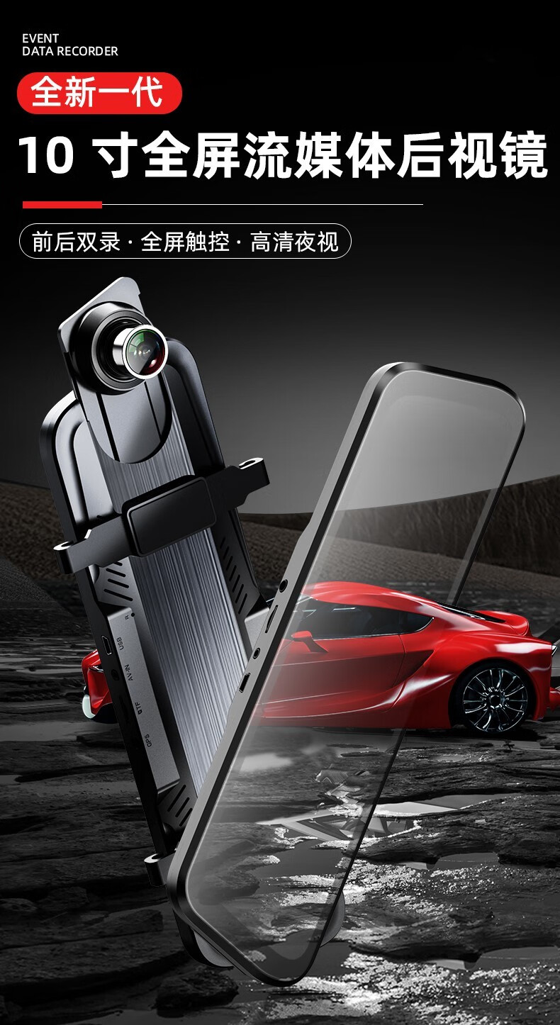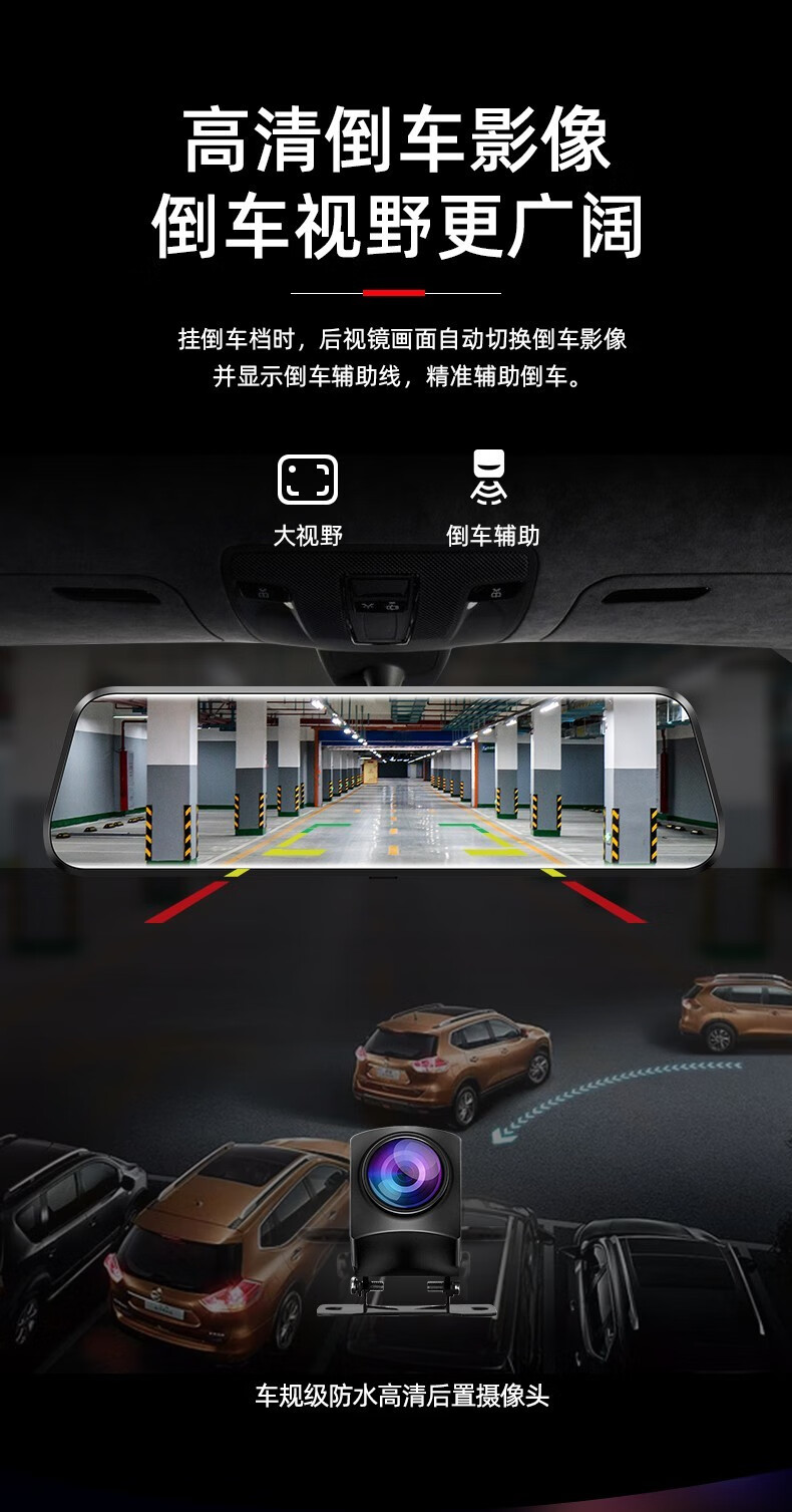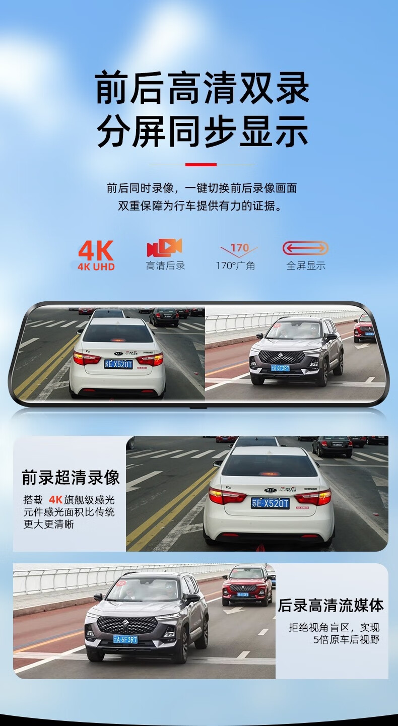 Lingjing 2025 new 4K driving recorder ultra-clear night vision in-car front and rear three-camera reversing image streaming online car-hailing 10-inch three-lens 64G