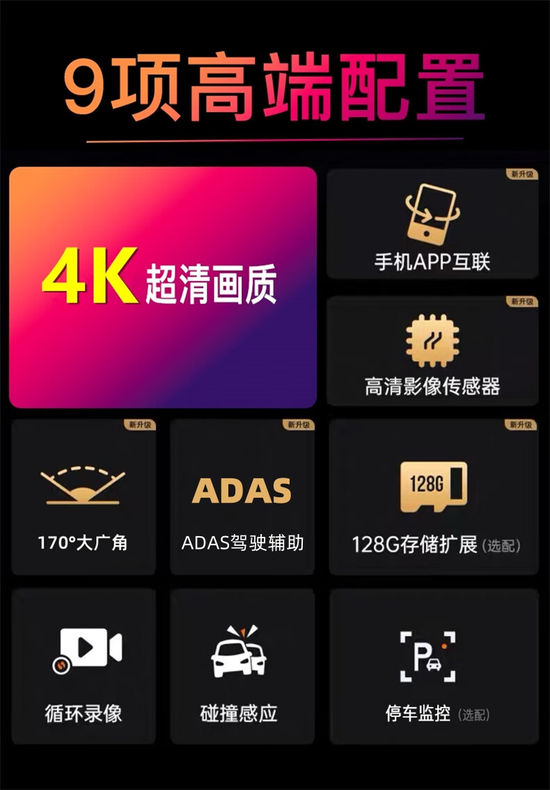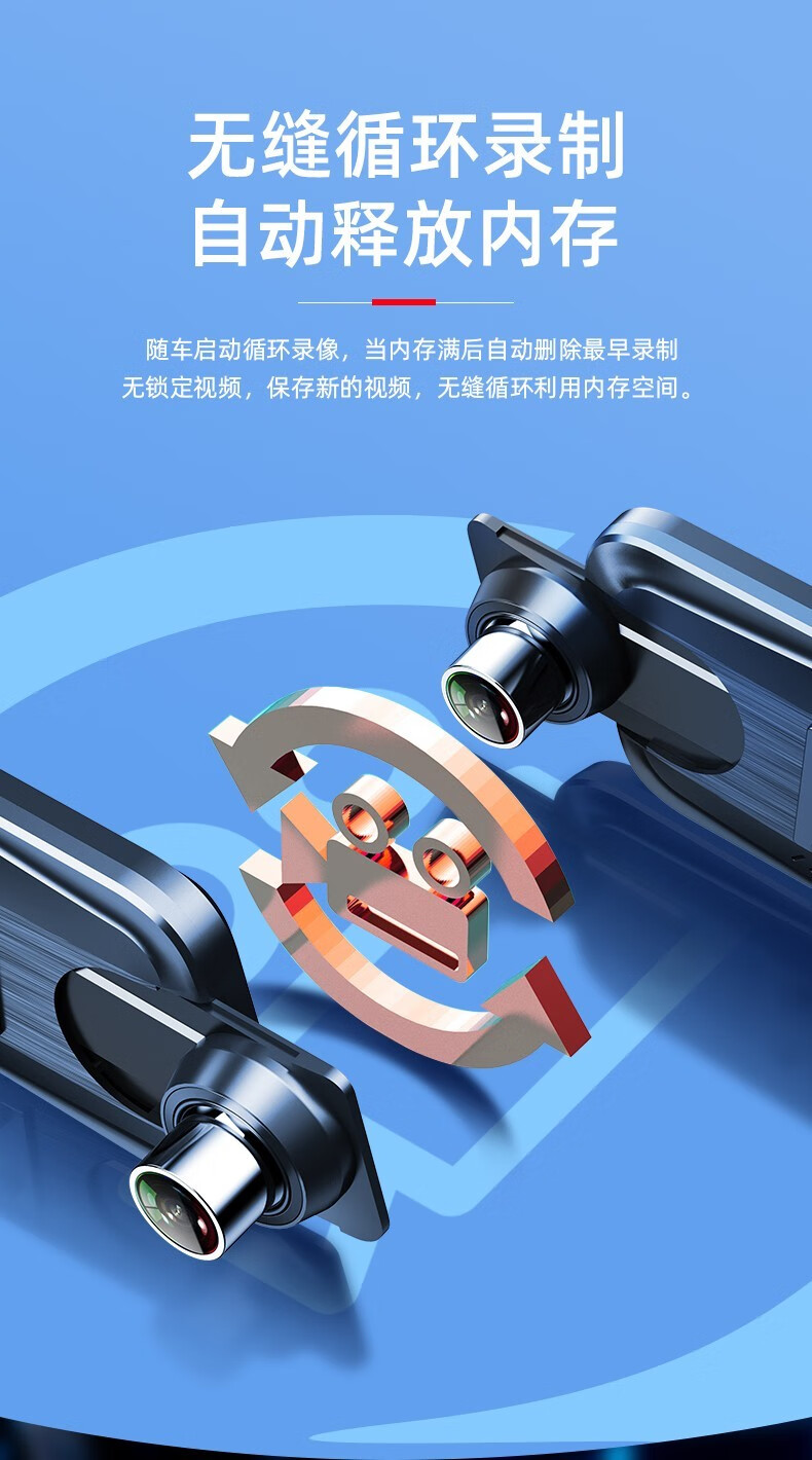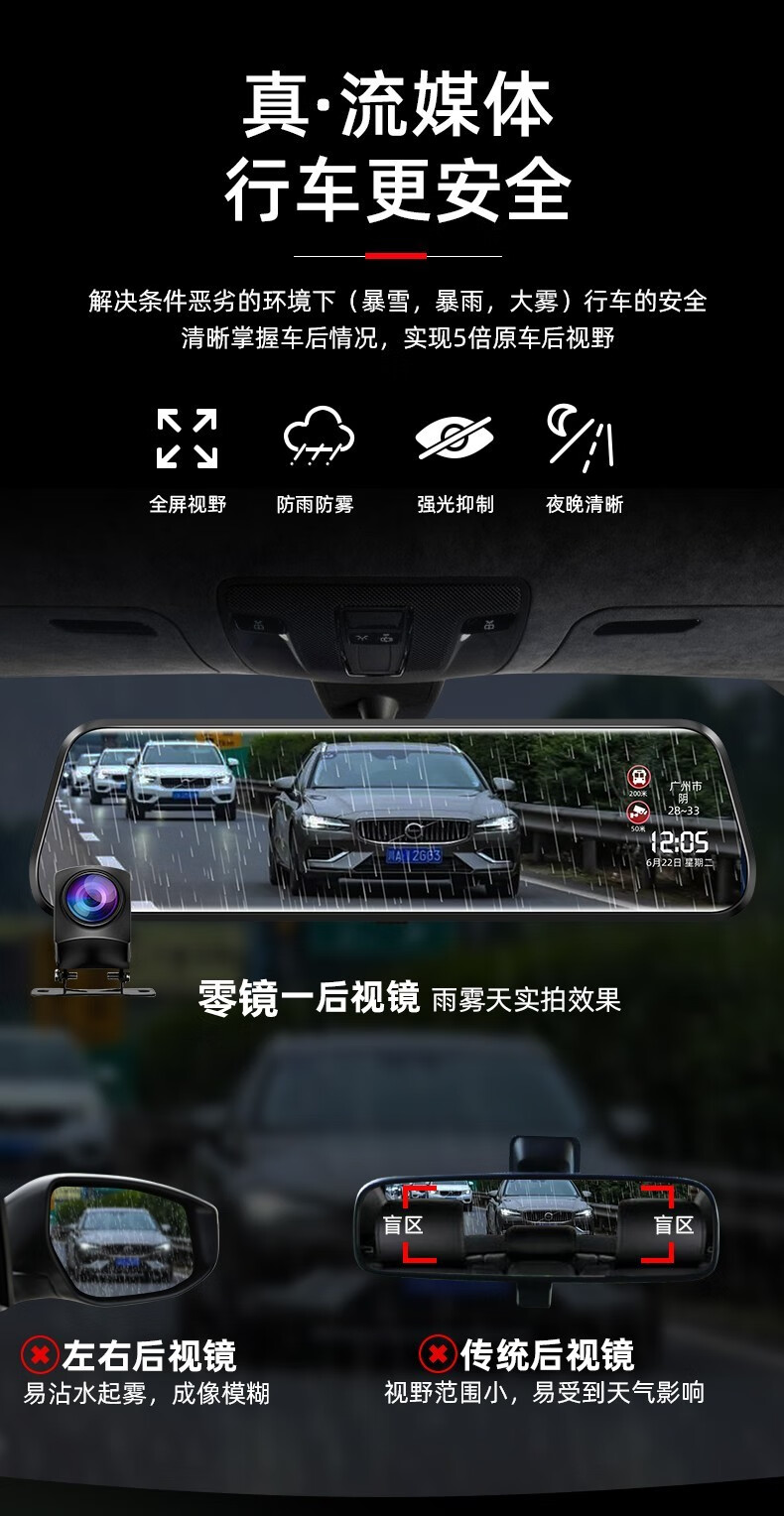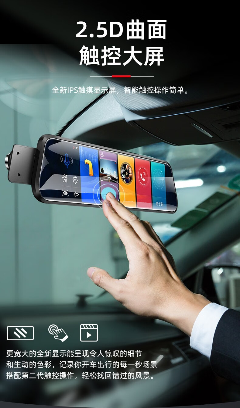 Lingjing 2025 new 4K driving recorder ultra-clear night vision in-car front and rear three-camera reversing image streaming online car-hailing 10-inch three-lens 64G