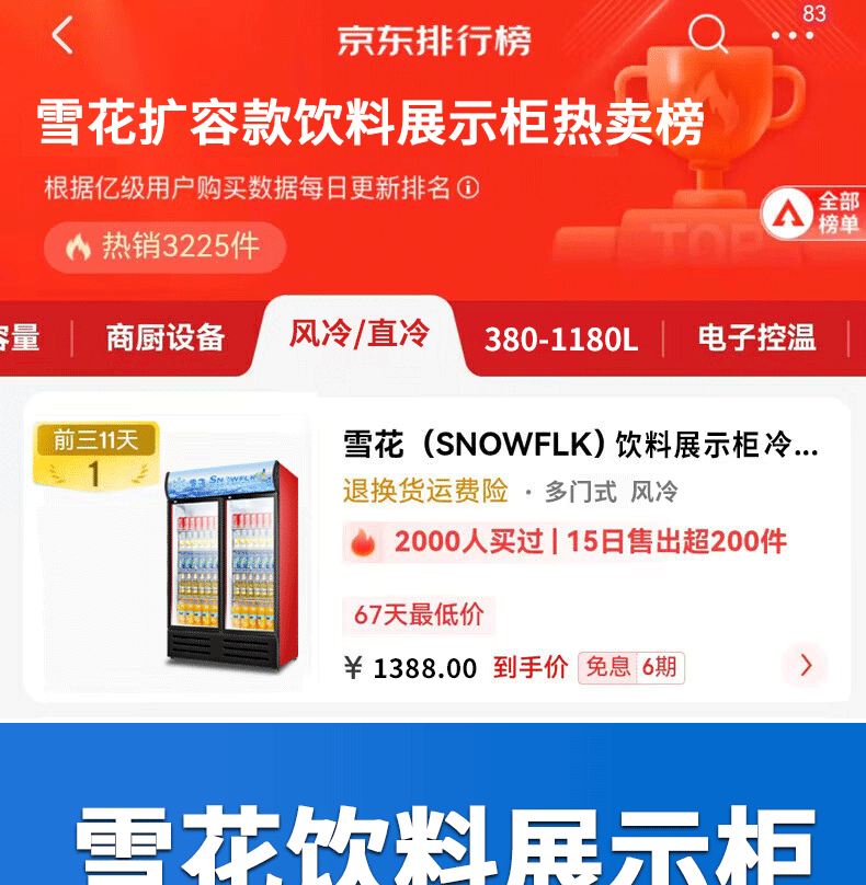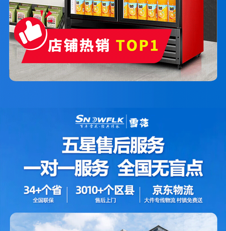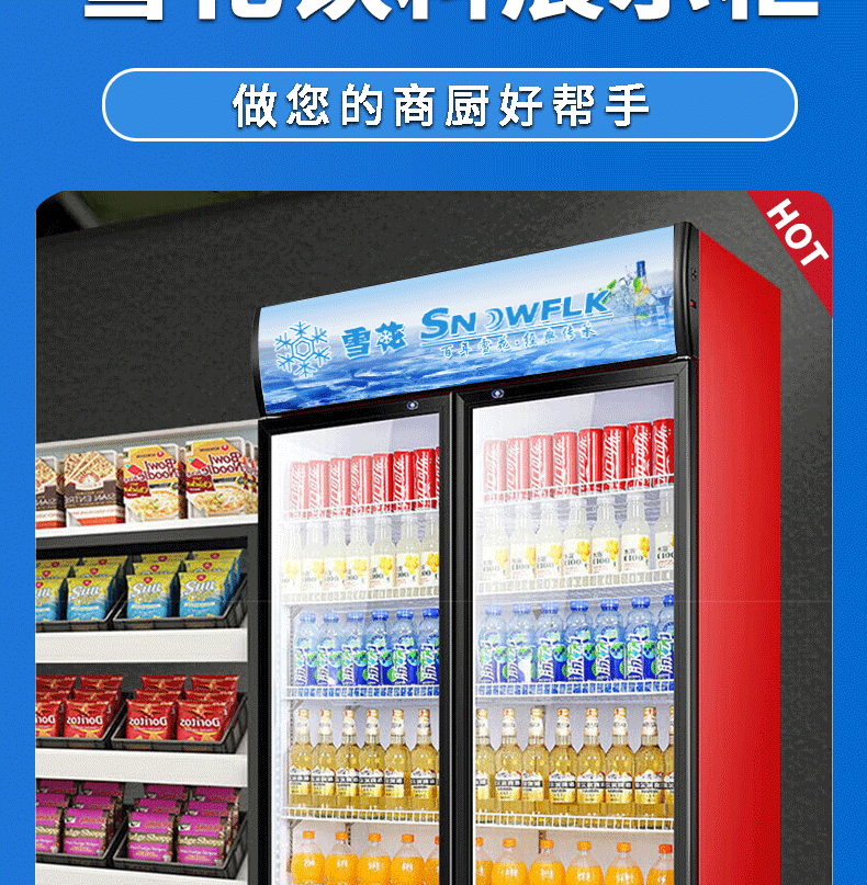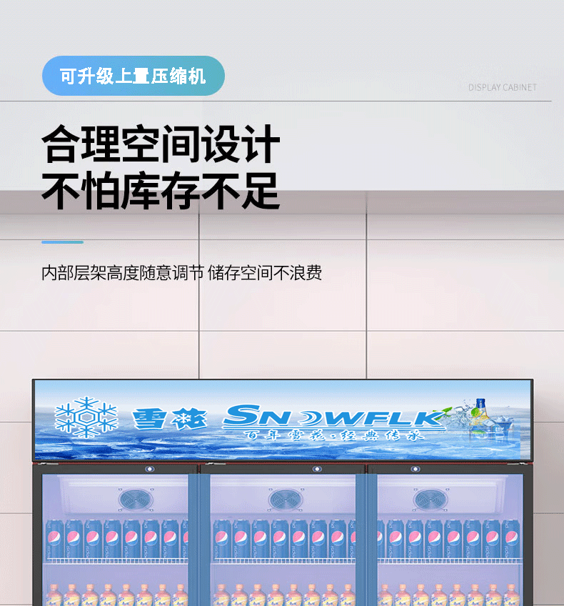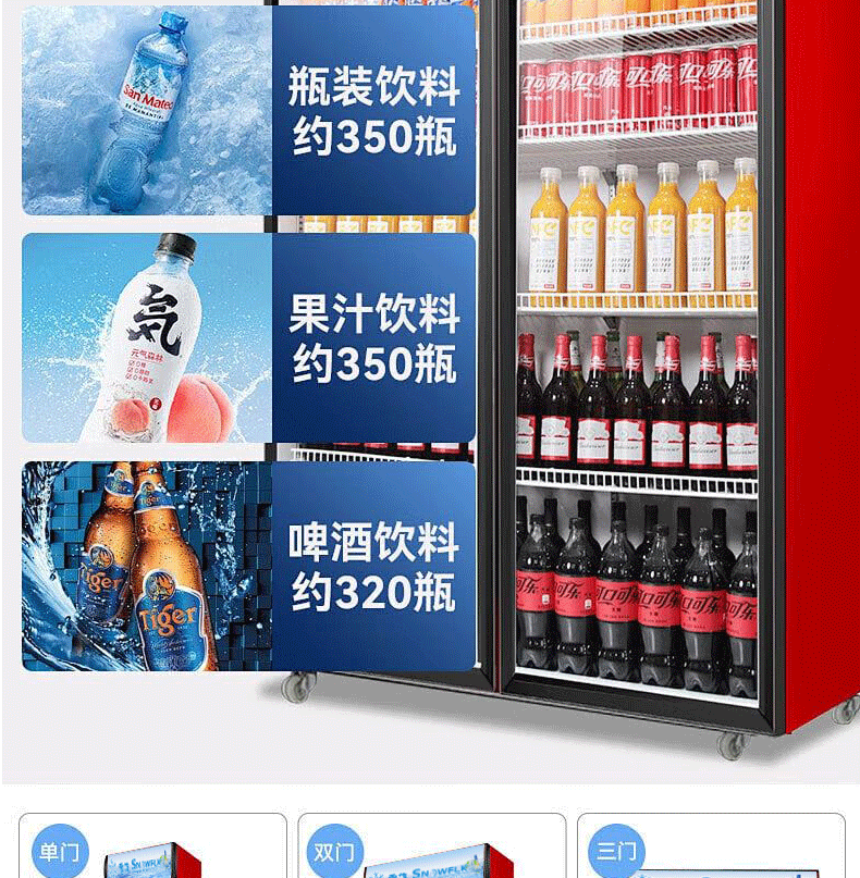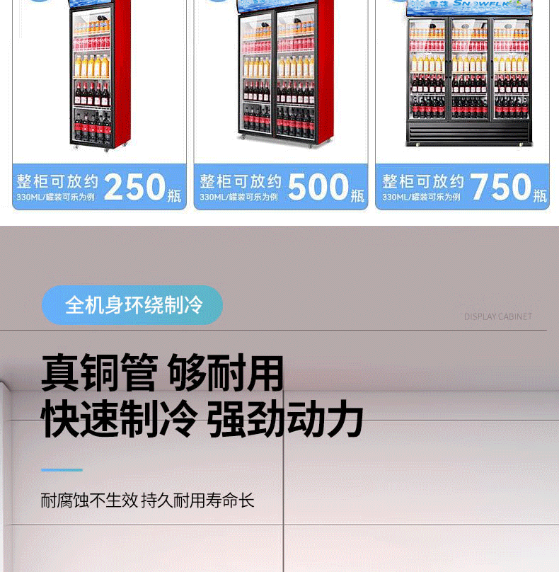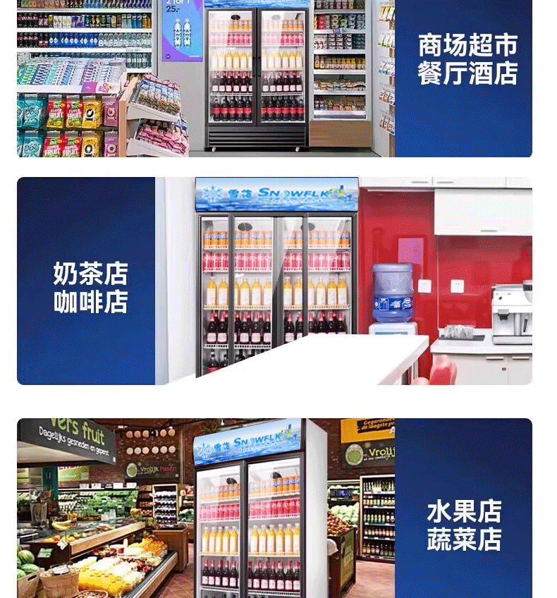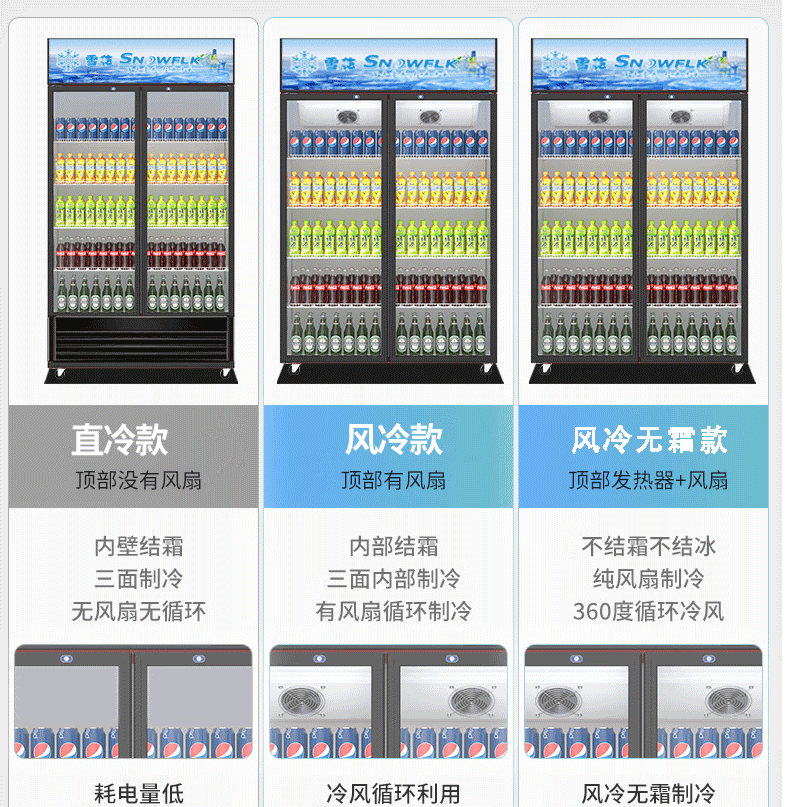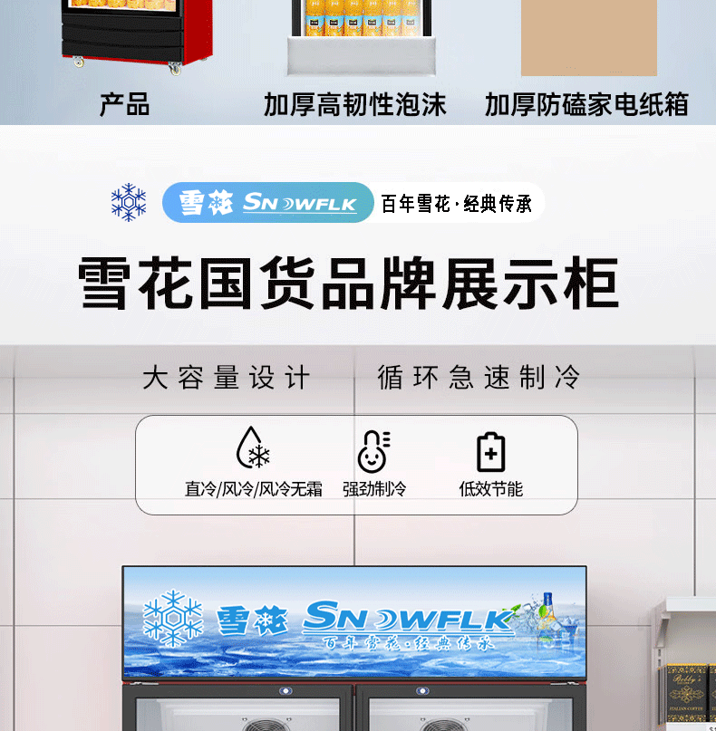Snowflake large-capacity beverage cabinet commercial freezer direct refrigeration display cabinet wine cabinet pure air-cooled frost-free fresh cabinet supermarket glass door refrigerator vertical beer cabinet large single door丨energy-saving and efficient copper tube丨360 cycle丨air-cooled frost-free 2026 new upgrade丨360 cycle rapid cooling