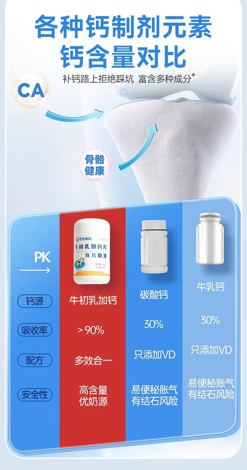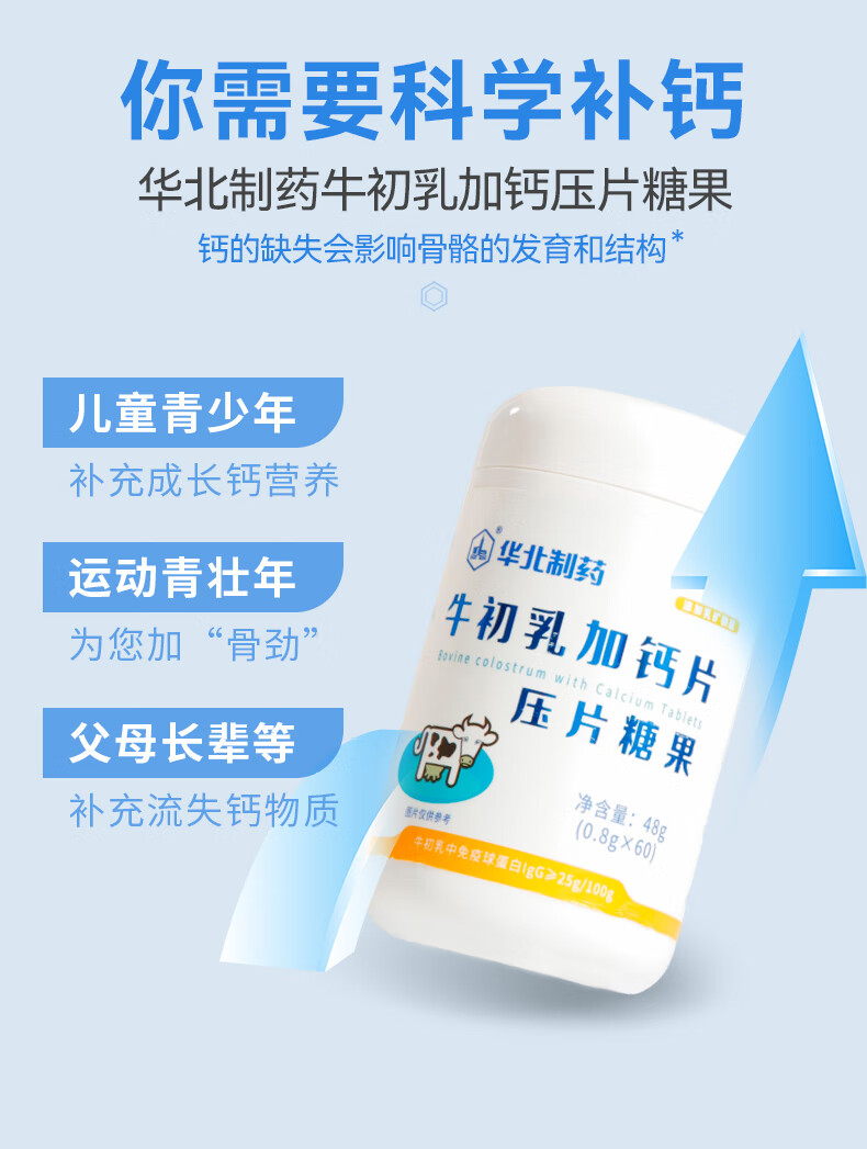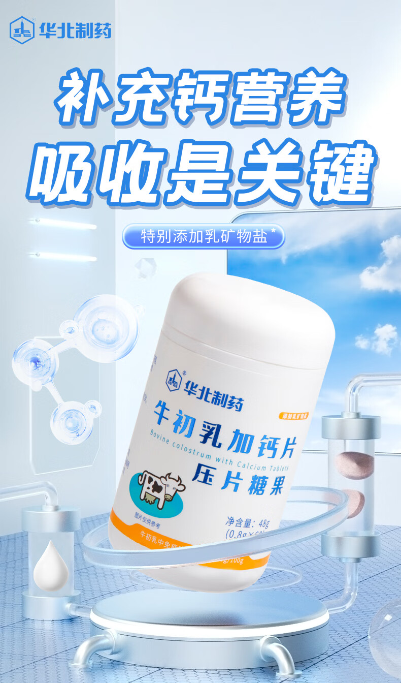 North China Pharmaceutical Colostrum Plus Calcium Chewable Tablets Nutritional Calcium Source Children and Teenagers Candy Calcium Tablets Supplementary Colostrum Calcium Nutritional Products 4 Bottles*60 Tablets Recommended by Mom