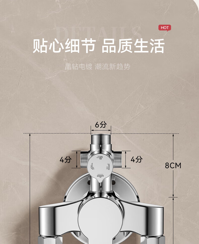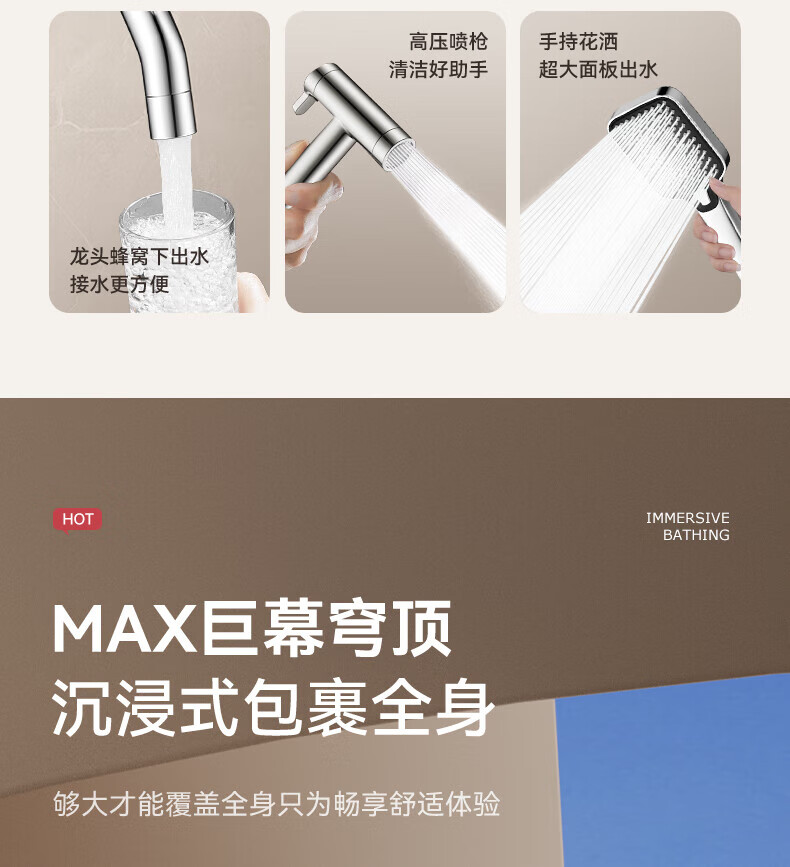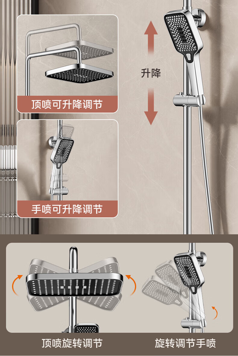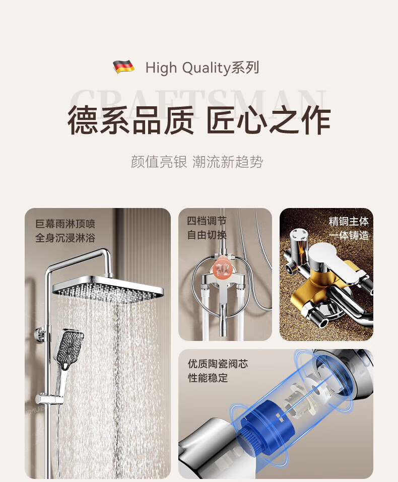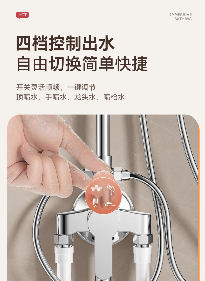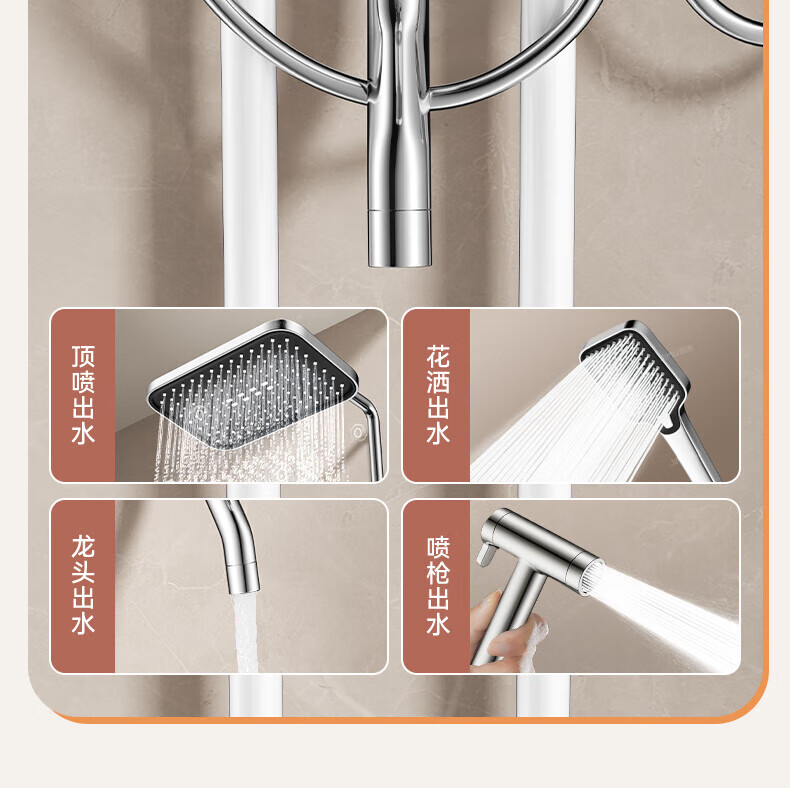 JOMOO official flagship all-copper exposed shower set household bathroom exposed tube hot and cold shower shower exposed? three water outlet square booster shower set