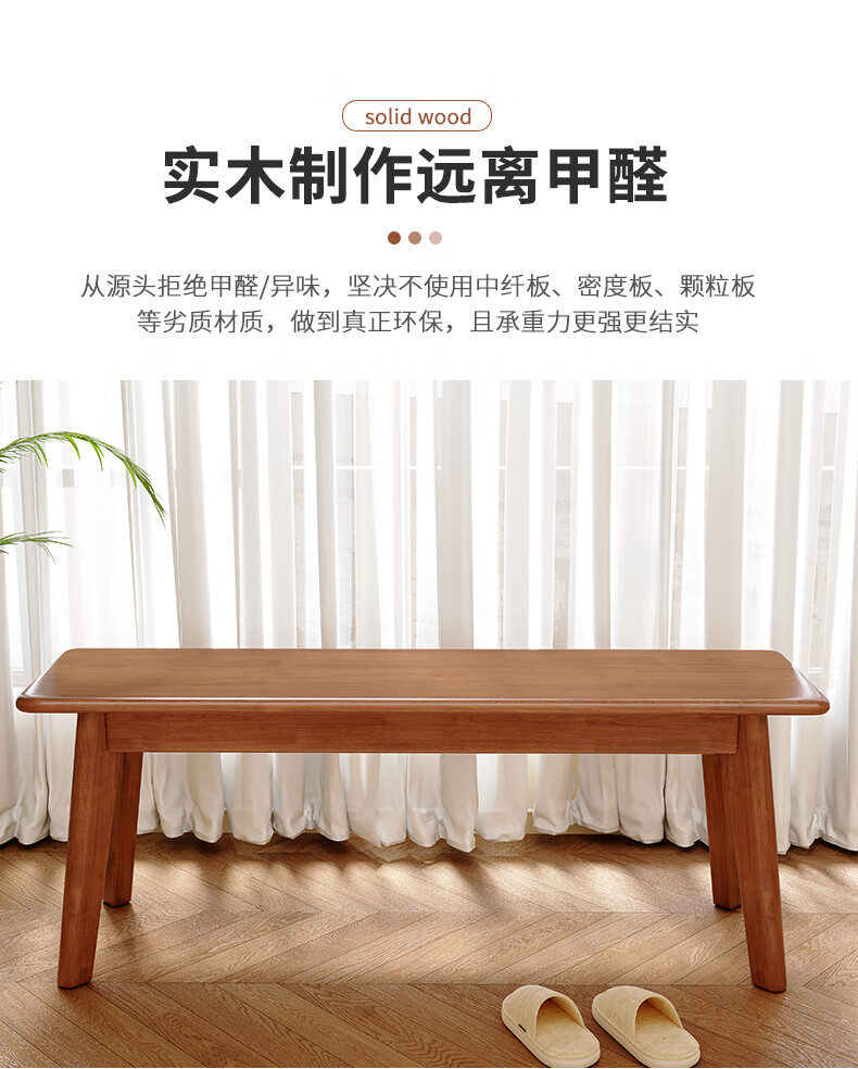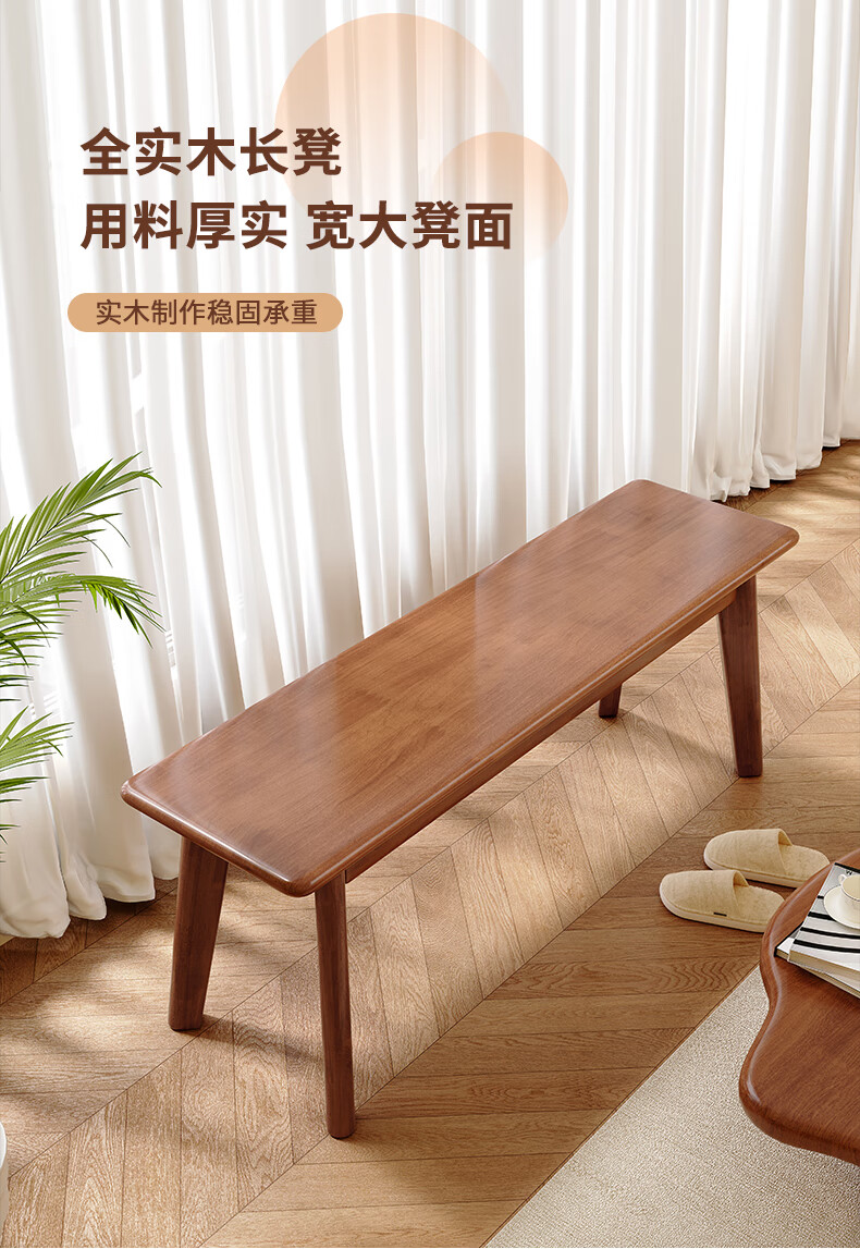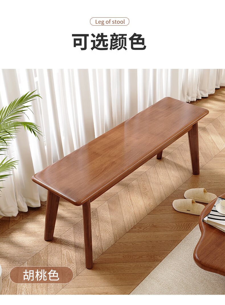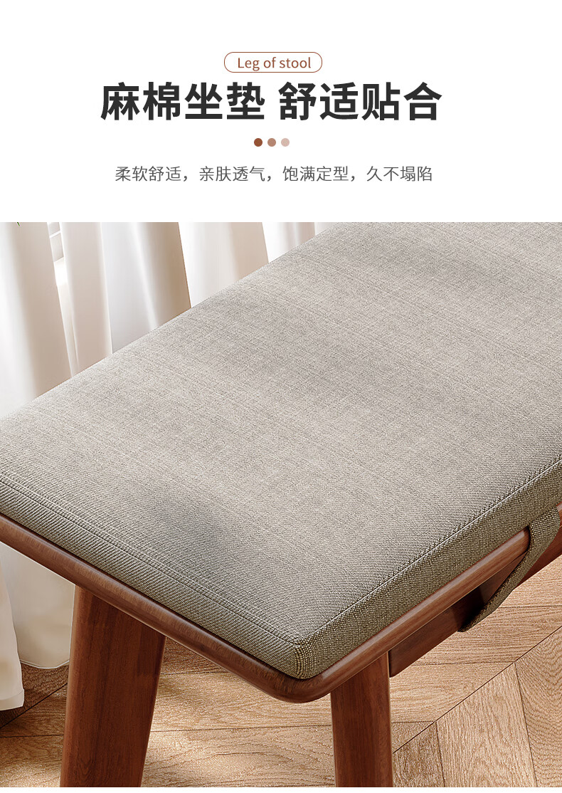 Rubber wood solid wood Nordic stool cushion stool bench bench bedroom bedside stool simple home modern dining table stool 1.2 meters long three colors available