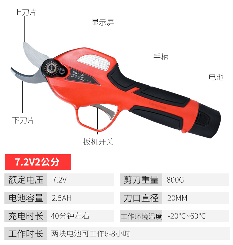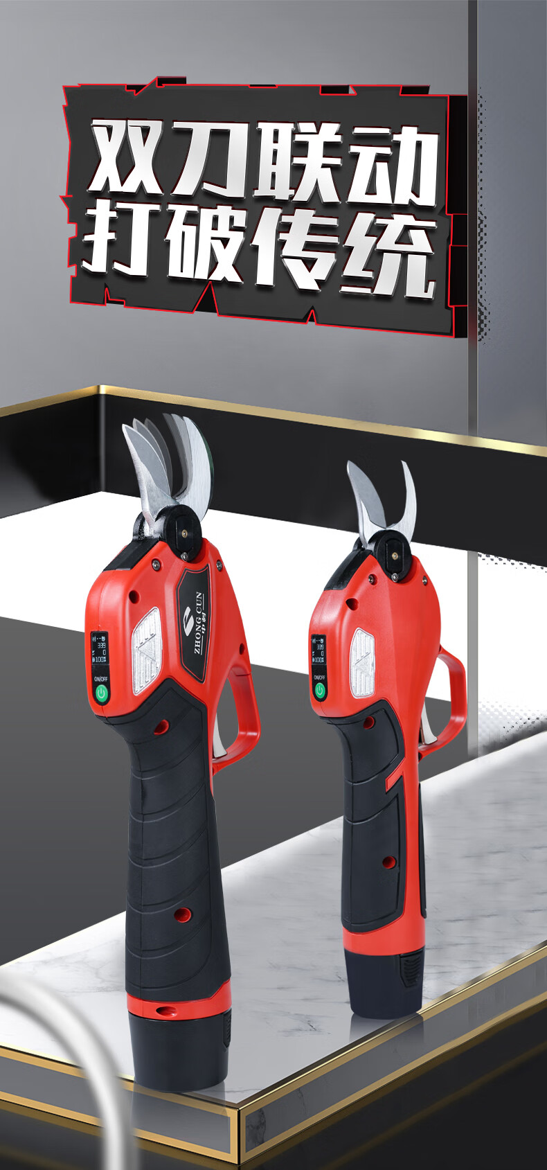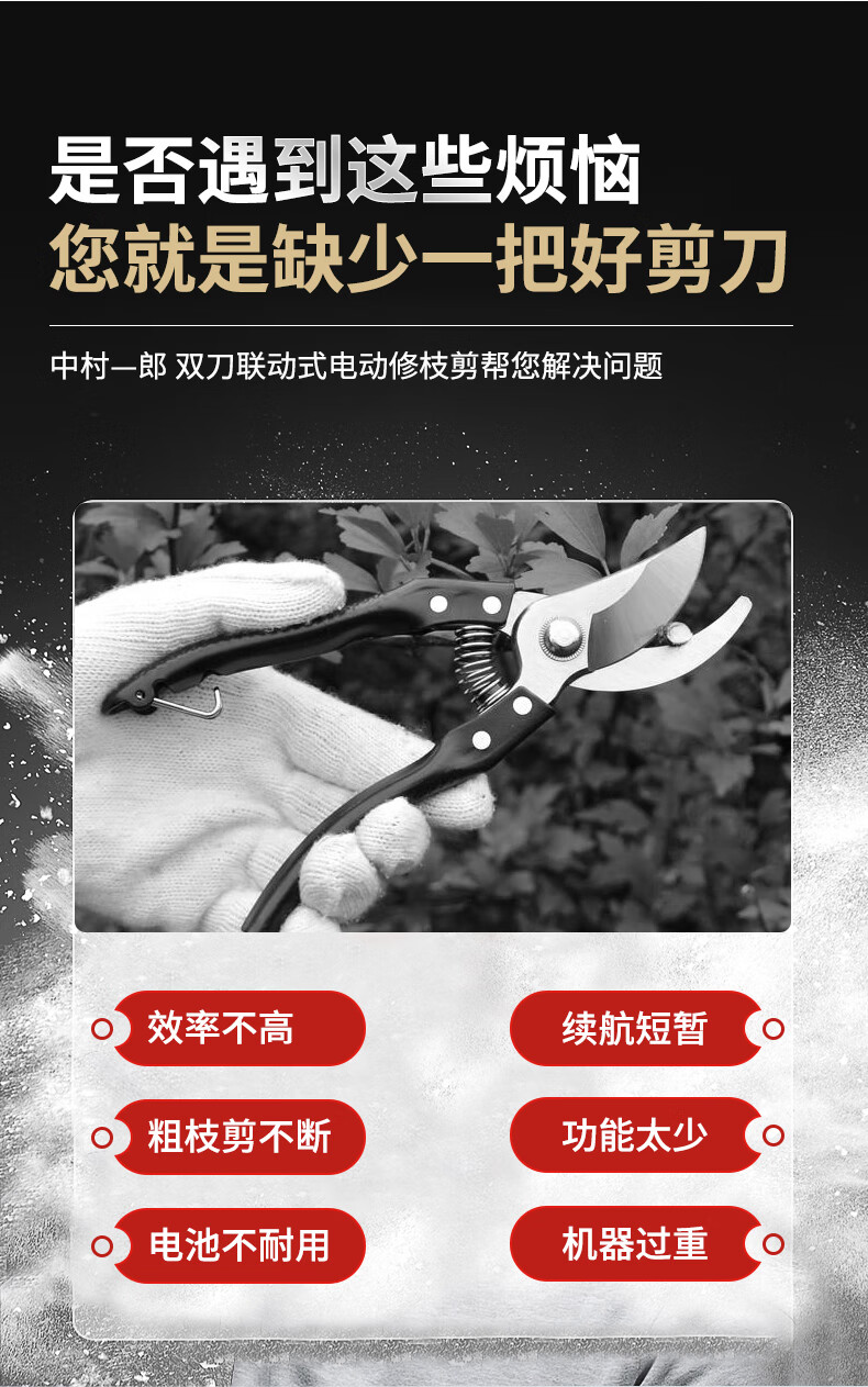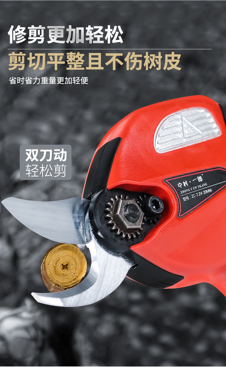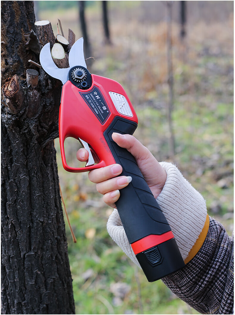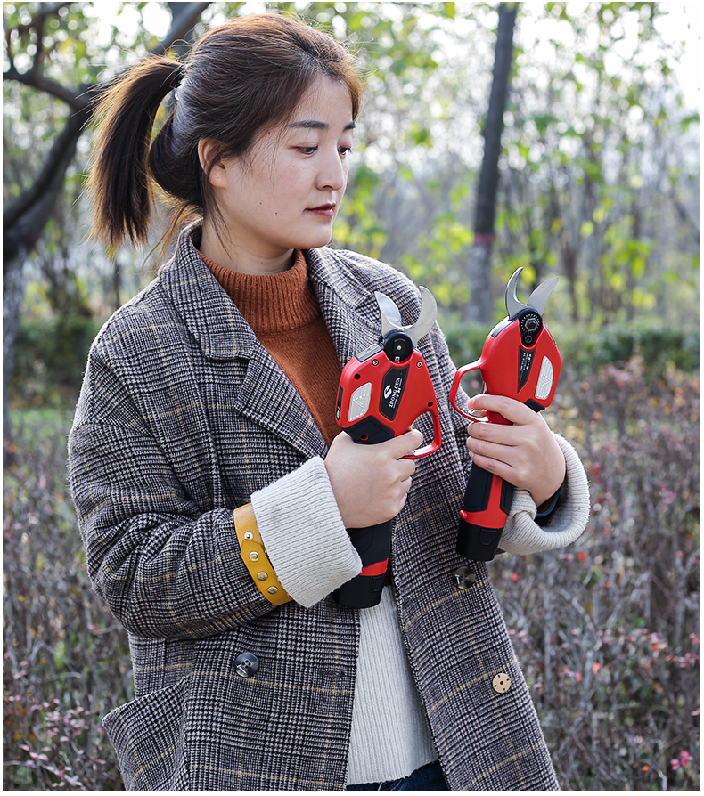 Deer-colored double-knife linkage electric pruning scissors for fruit trees and gardens rechargeable household portable branch pruning scissors 10.8V 25MM Bluetooth high-end electric shears (two pieces