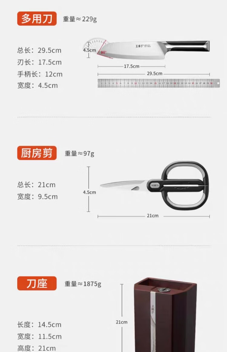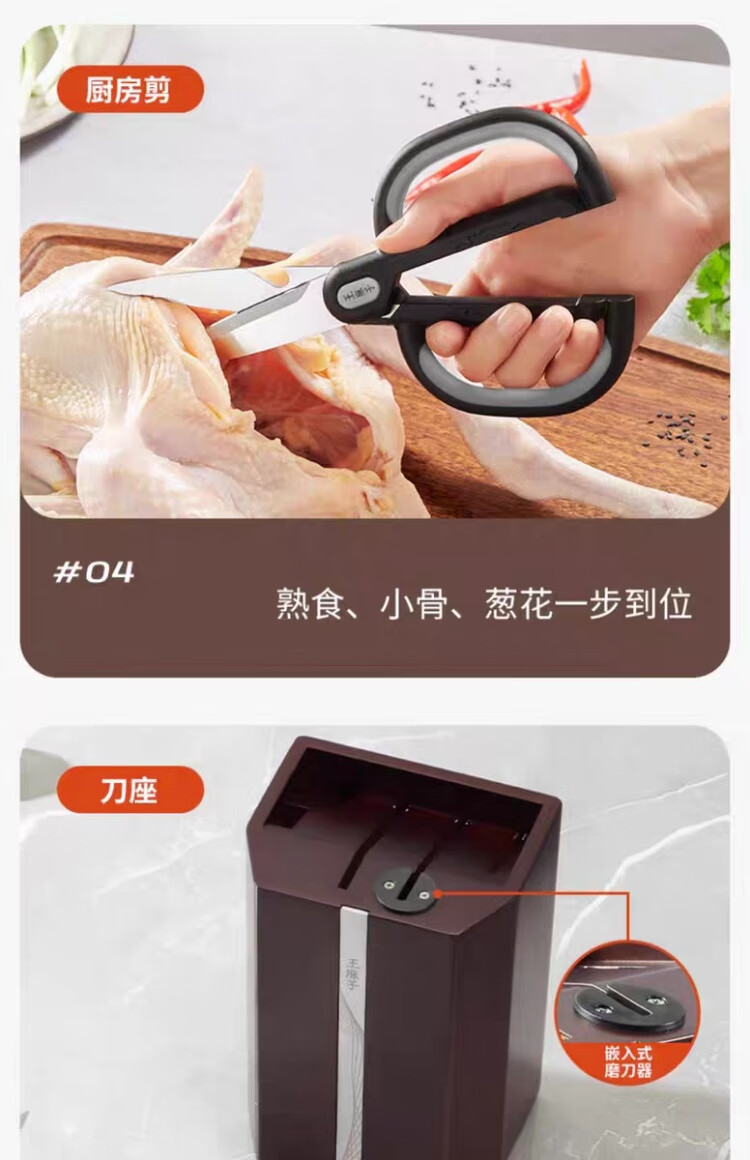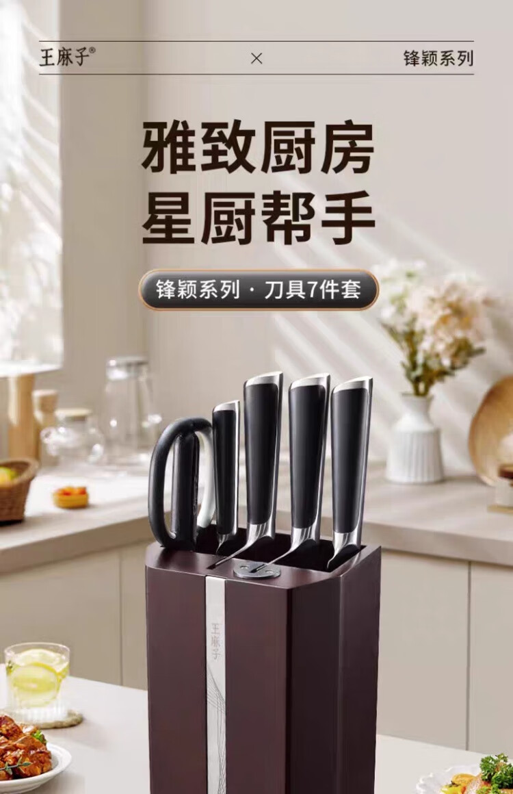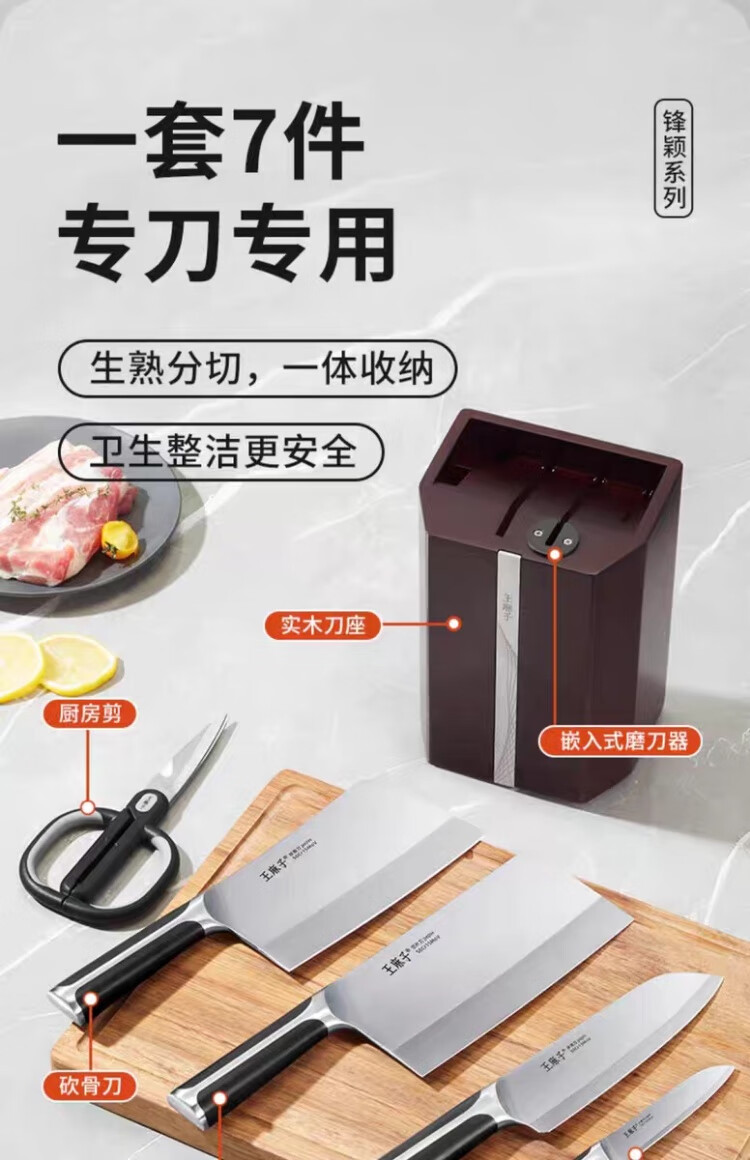 Wang Mazi Xinjiang can hair sharpen bone chopping knife, kitchen knife, small kitchen knife, fruit knife knife holder with built-in knife sharpener, seven-piece set