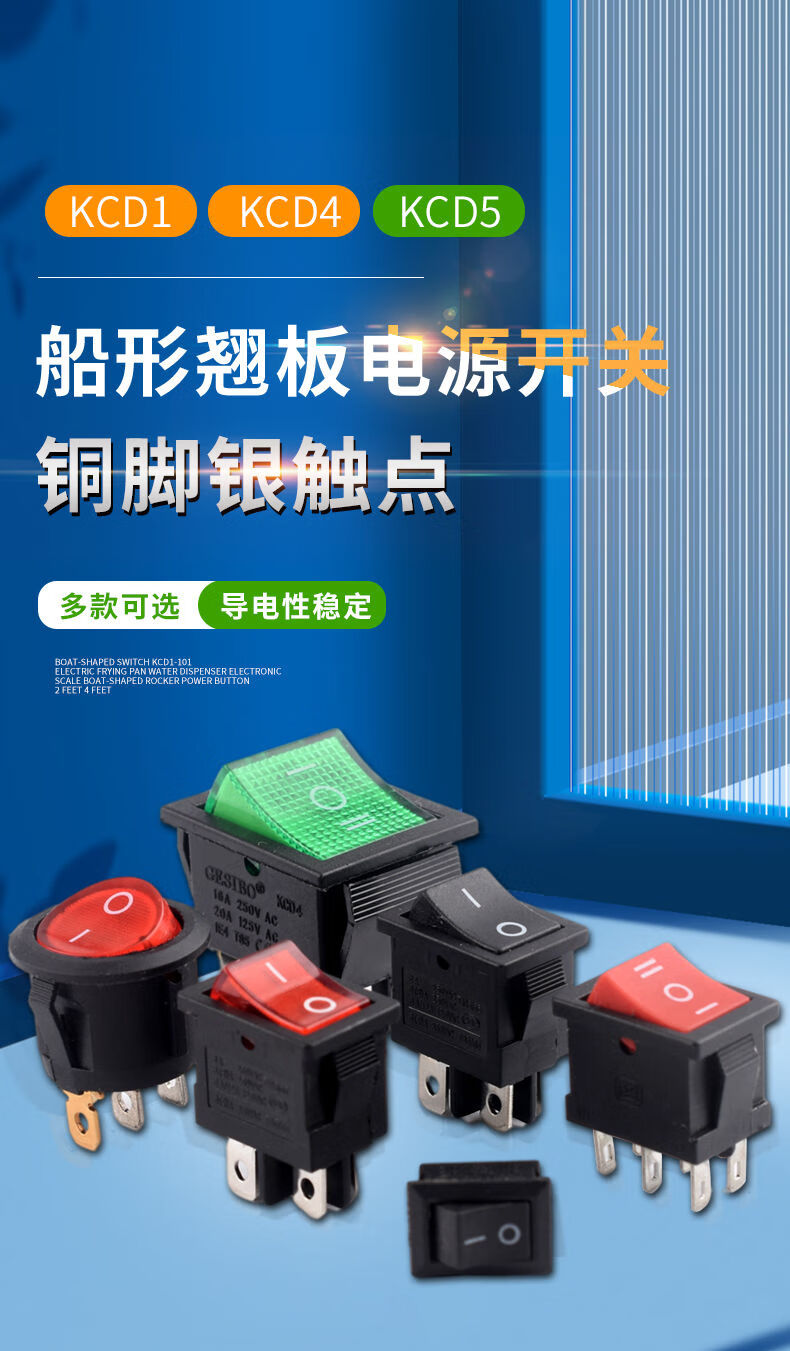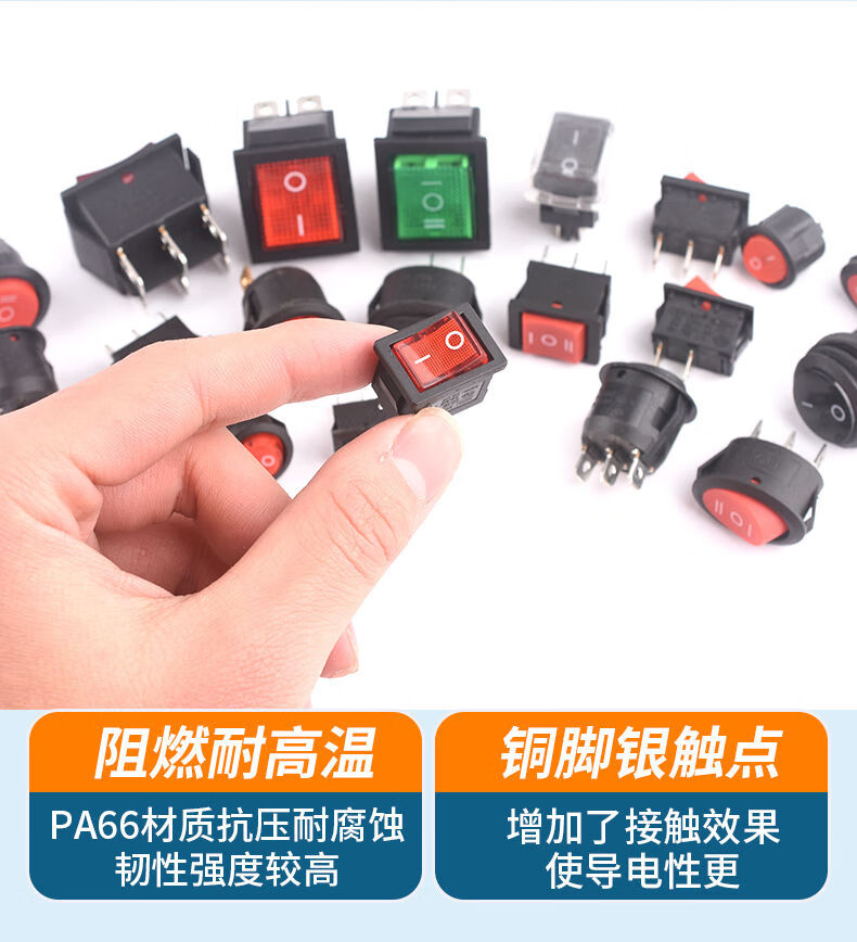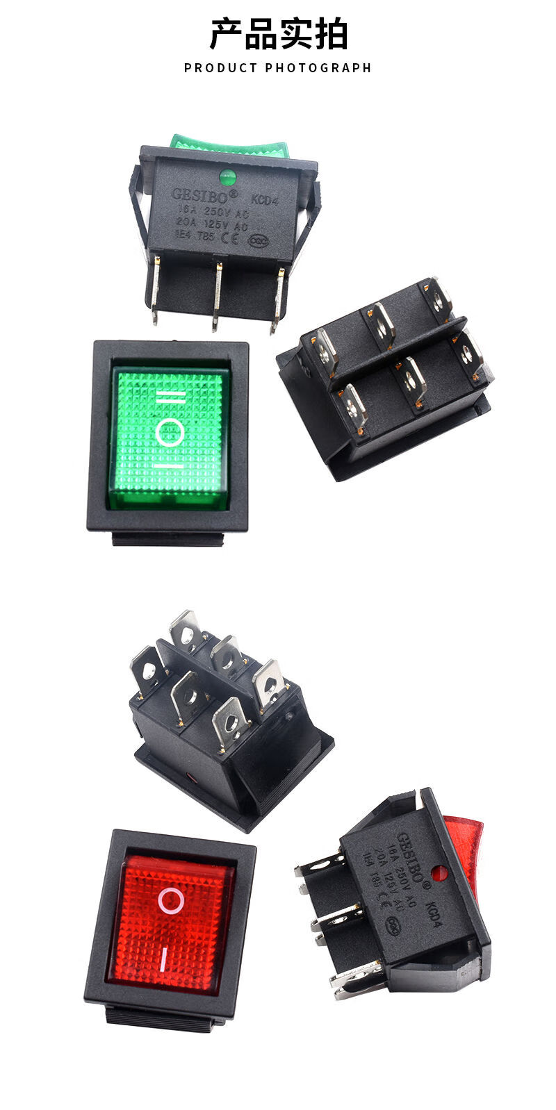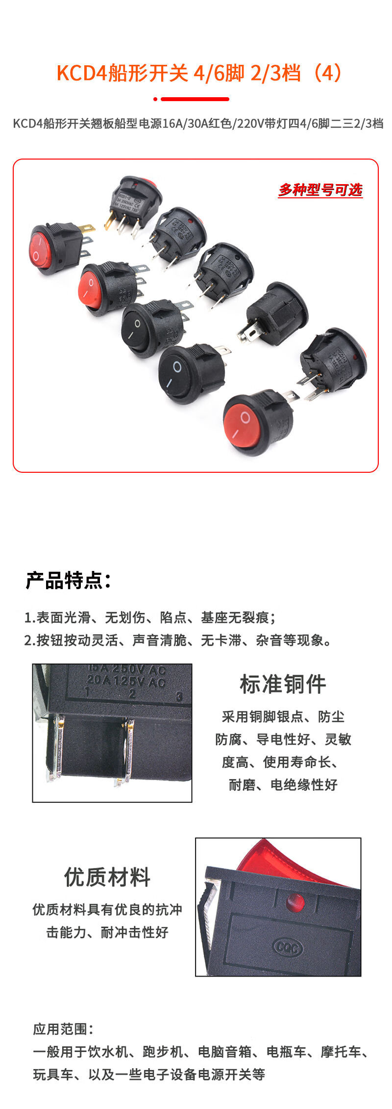 Electrical common switch KCD1/3/4/5/11 small boat-shaped switch water dispenser electronic scale power button boat-shaped rocker 2 feet 4 feet 3 gears KCD4 4 feet 2 gears red light (1 piece)