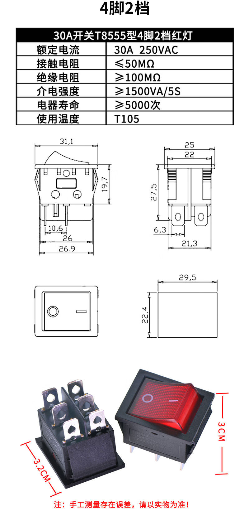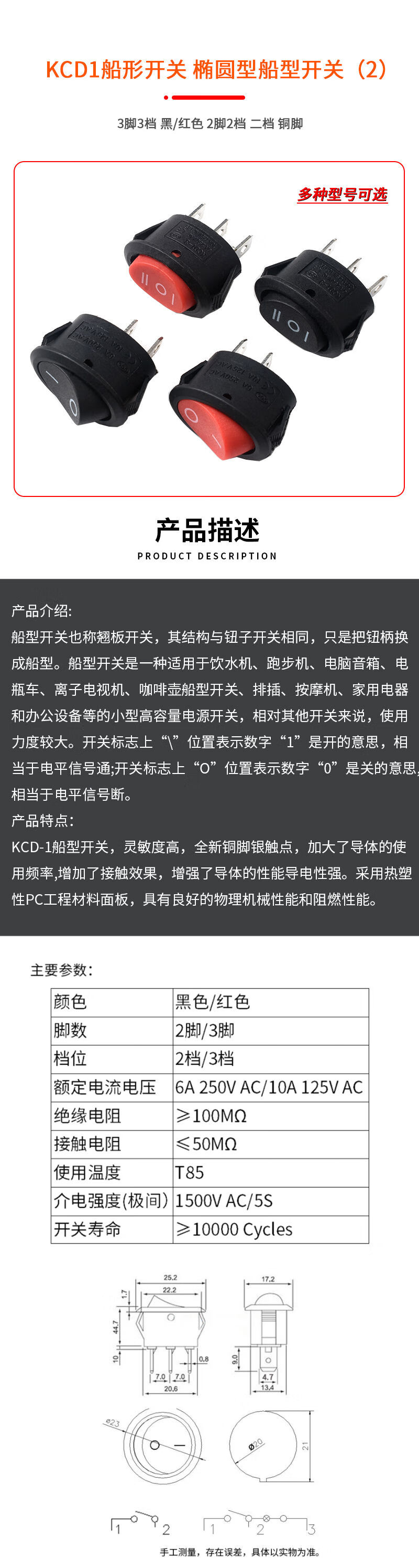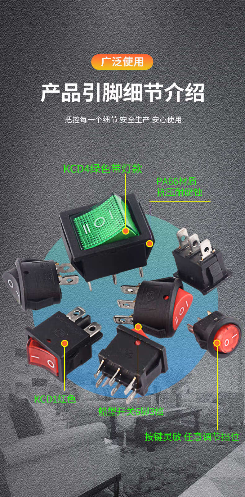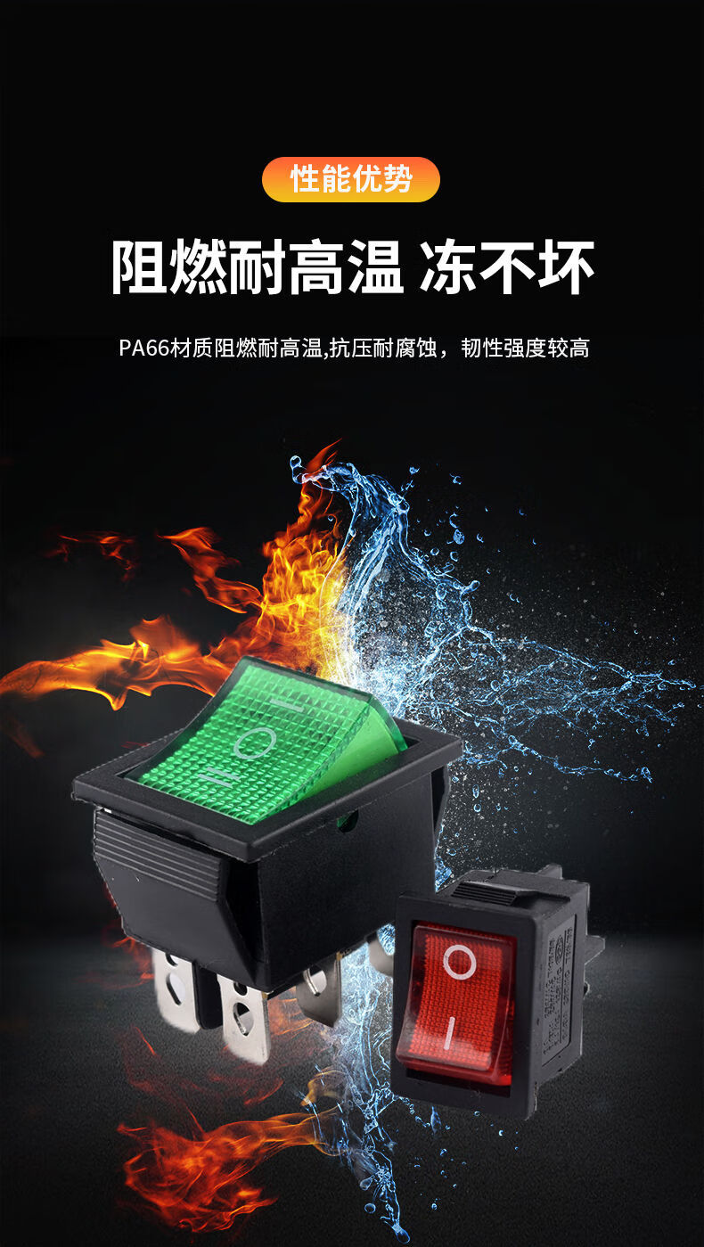 Electrical common switch KCD1/3/4/5/11 small boat-shaped switch water dispenser electronic scale power button boat-shaped rocker 2 feet 4 feet 3 gears KCD4 4 feet 2 gears red light (1 piece)
