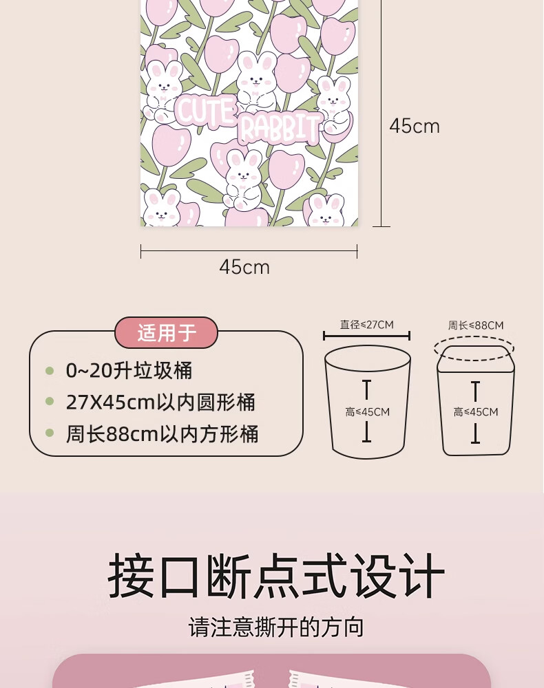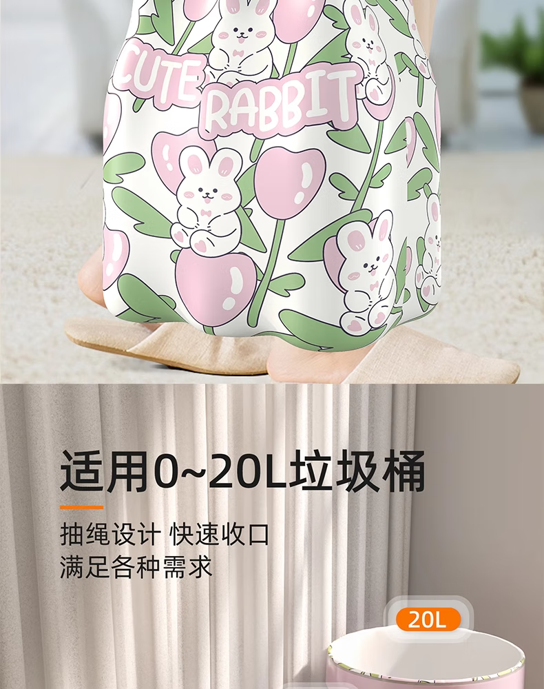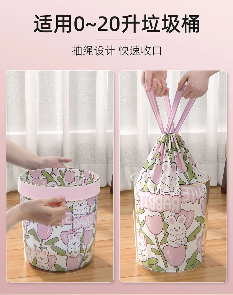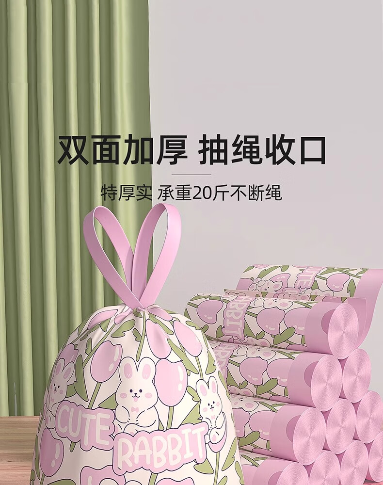 Tulip Rabbit new drawstring garbage bag household portable thickened kitchen large plastic bag affordable extra thick Tulip Rabbit drawstring 1 roll 60 pieces