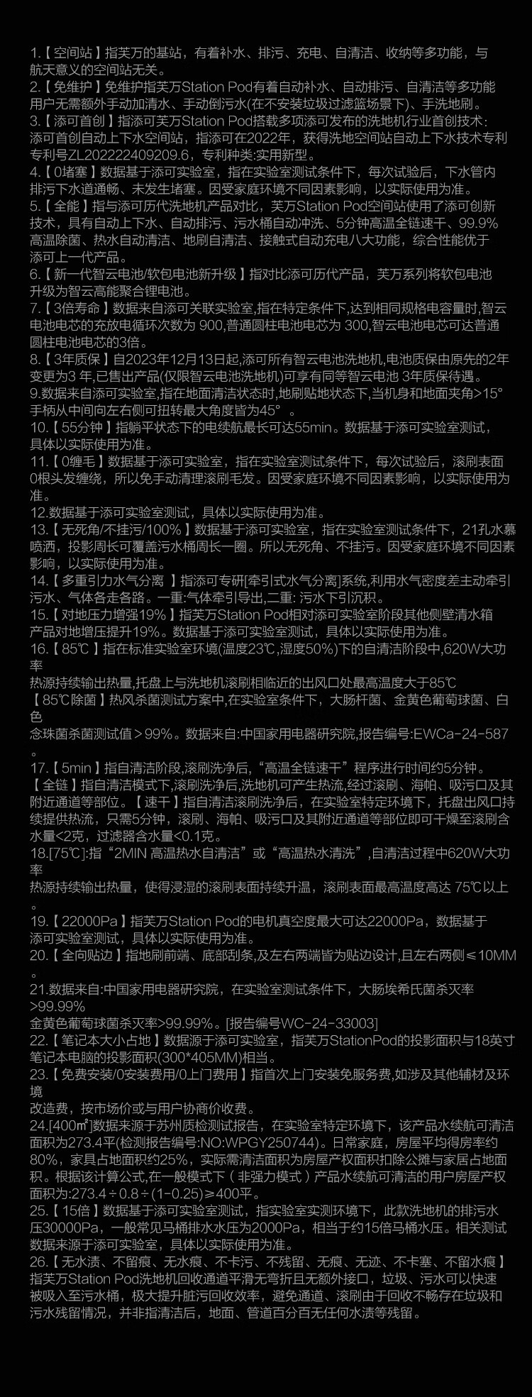 Tiankfuwan Station Pod capsule space station 8-in-1 automatic water supply and drainage 180 flat base station floor scrubber high temperature sterilization omnidirectional welt mopping robot Fuwan station pod