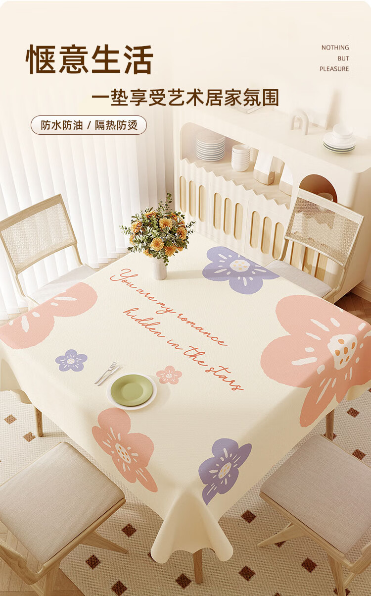 Square tablecloth waterproof and oil-proof no-wash anti-scalding tablecloth light luxury high-end coffee table tablecloth small square table cover cloth ZB3676 memory blue 120*120cm