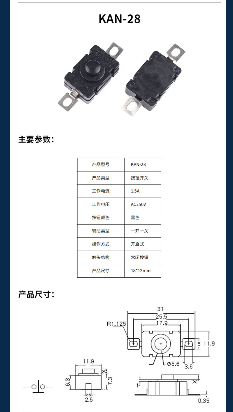 SMD/Plug-in type bright flashlight switch self-locking button power switch ultra-thin switch accessories 1712KD bright flashlight switch (5 pieces)