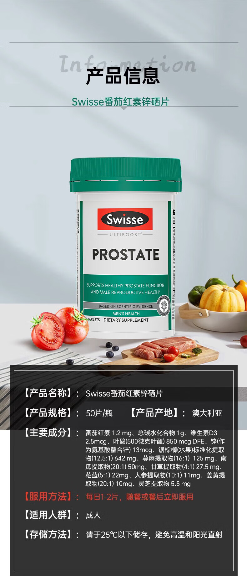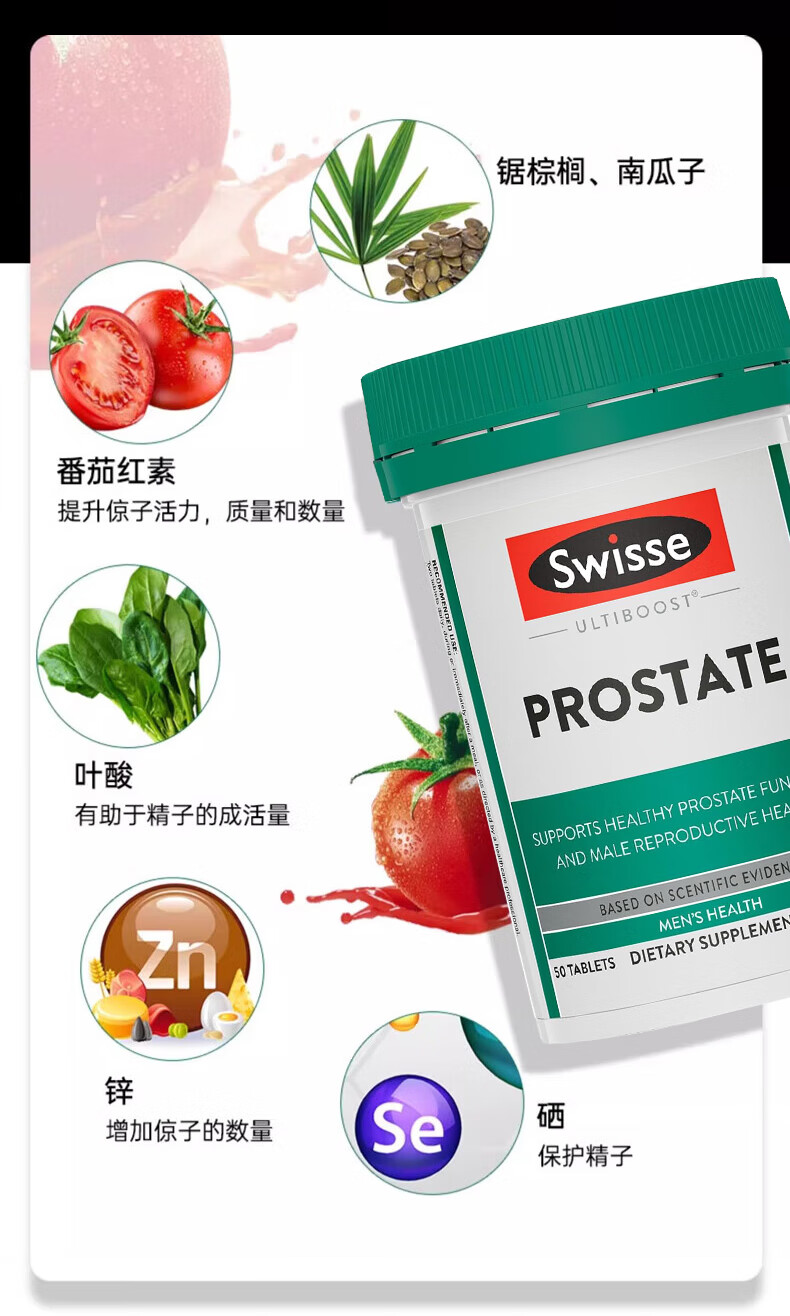 Swisse Lycopene Imported Saw Palmetto Men's Prostate Urinary Tract Health Australian Lycopene Tablets Pregnancy Men's Lycopene 50 Tablets*1 Bottle
