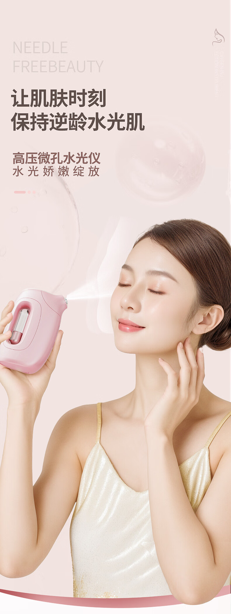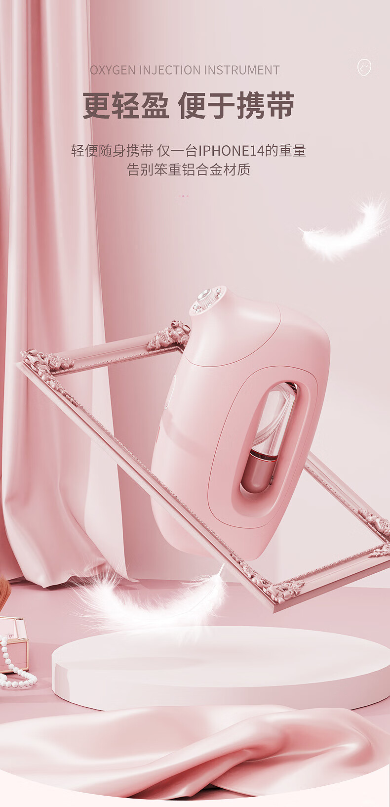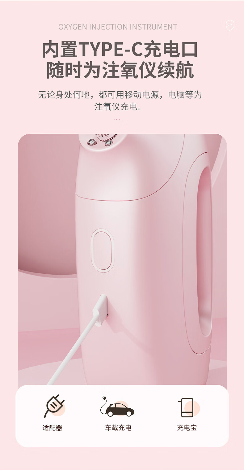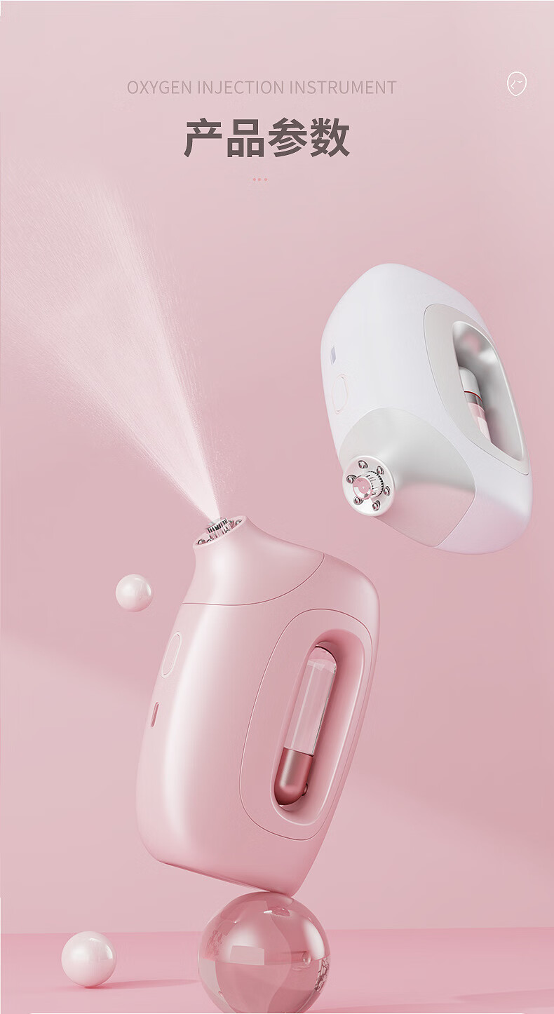 Xiaomi Guoba household portable handheld water light meter oxygen injection meter high pressure nano spray facial hydration atomizer pink (texture paint) water light meter