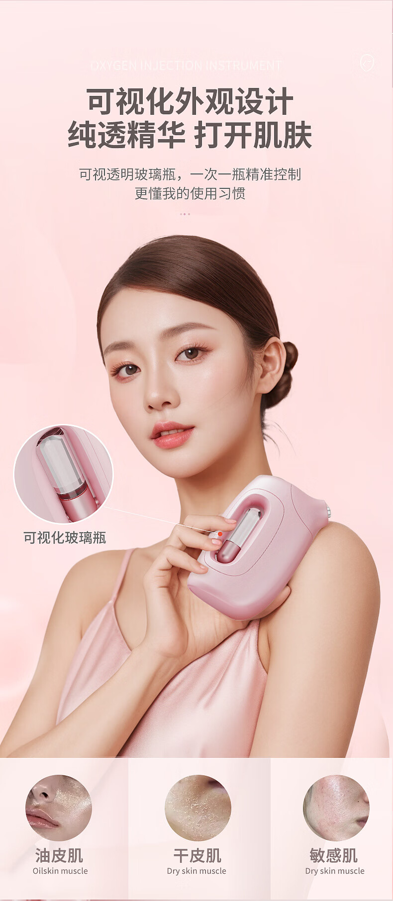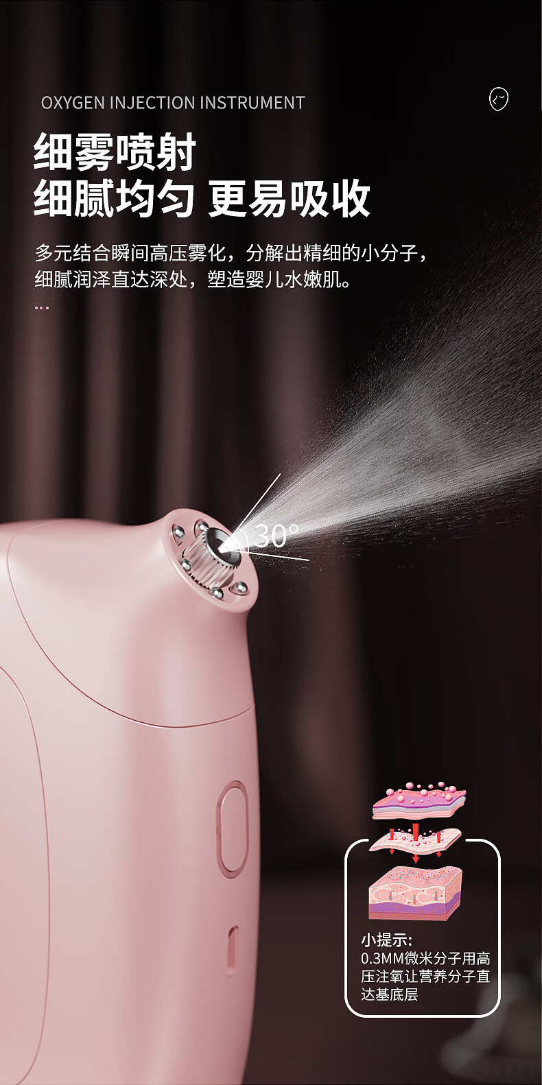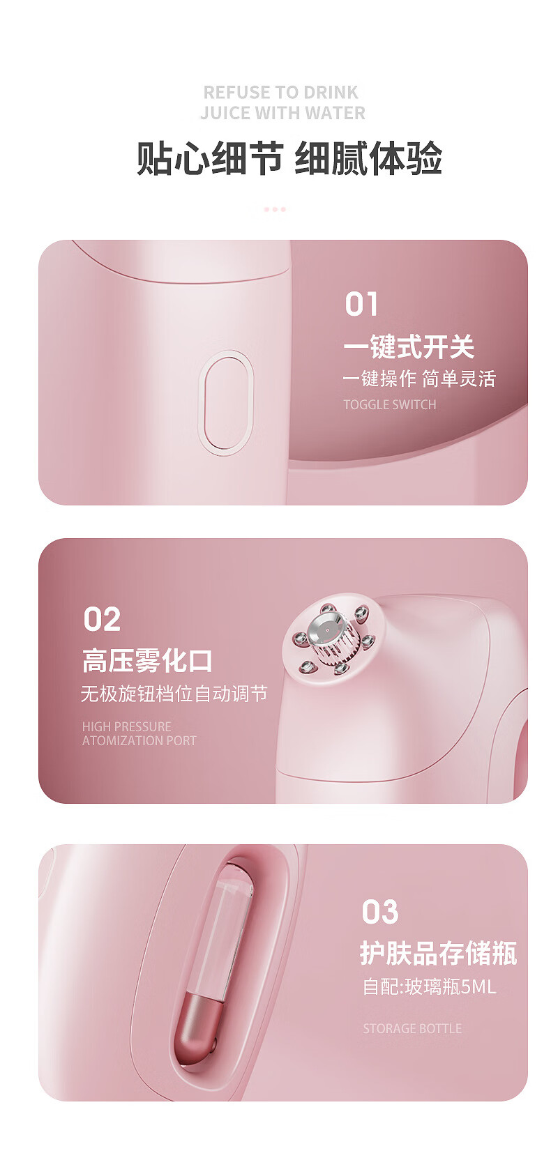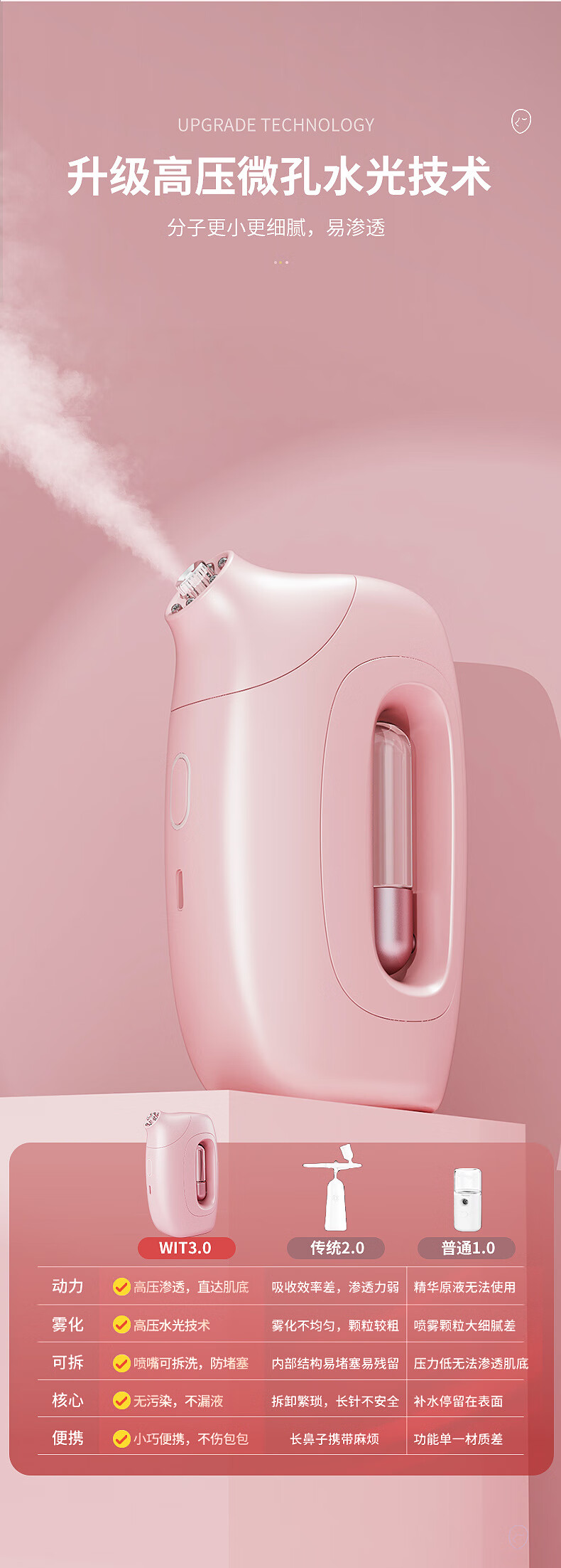 Xiaomi Guoba household portable handheld water light meter oxygen injection meter high pressure nano spray facial hydration atomizer pink (texture paint) water light meter