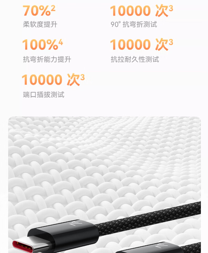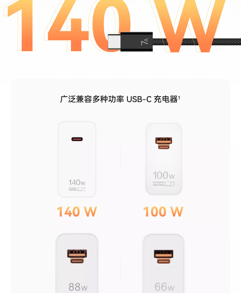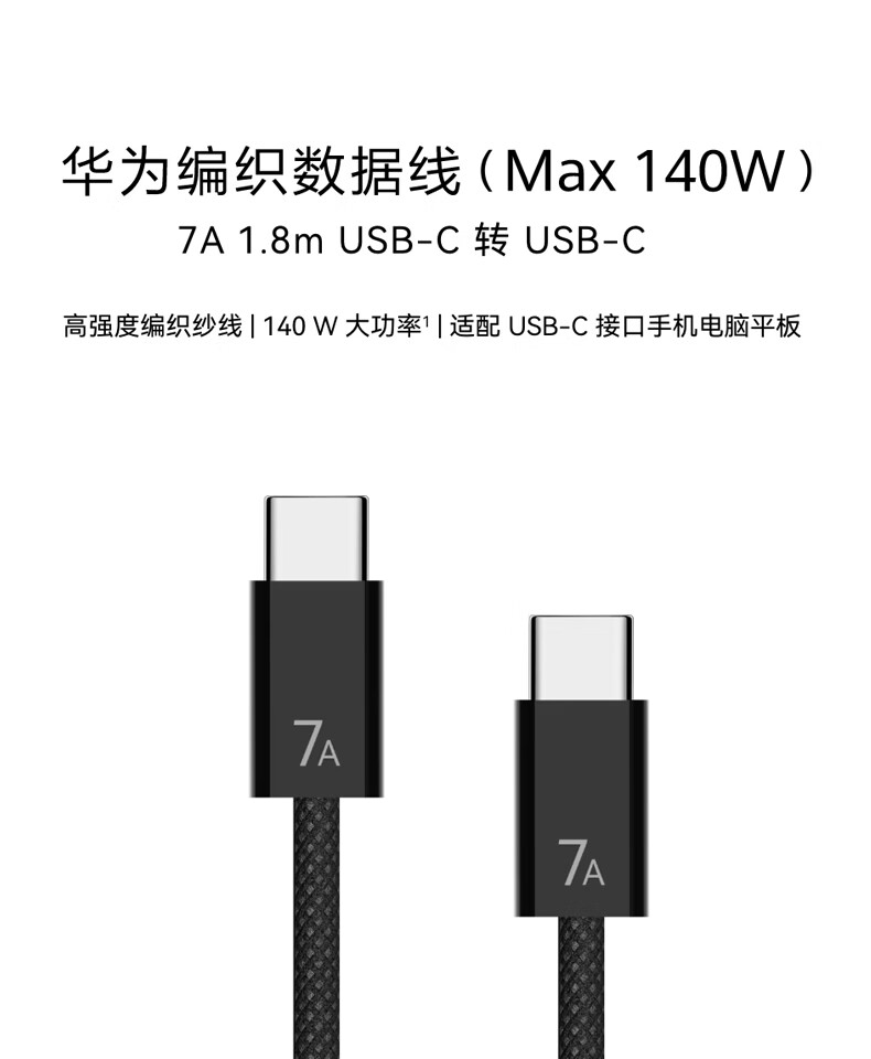 Huawei original 7A super fast charging double-ended Type-c braided data cable laptop charging cable 140wMateBookXPro D16 GT14 mate70 pro mobile phone Huawei 7A super fast charging braided cable double-ended Type-c 1.8 meters