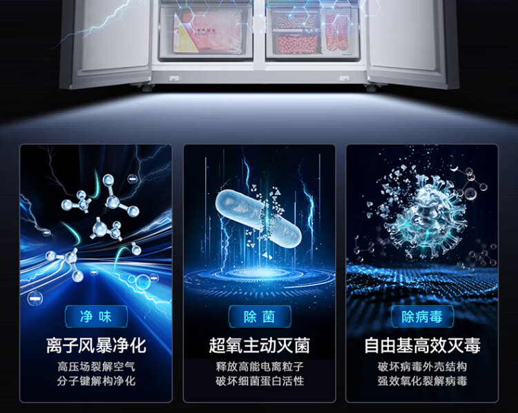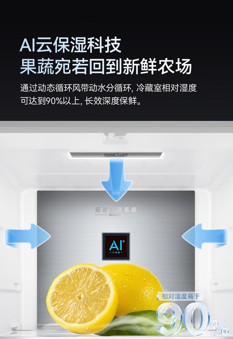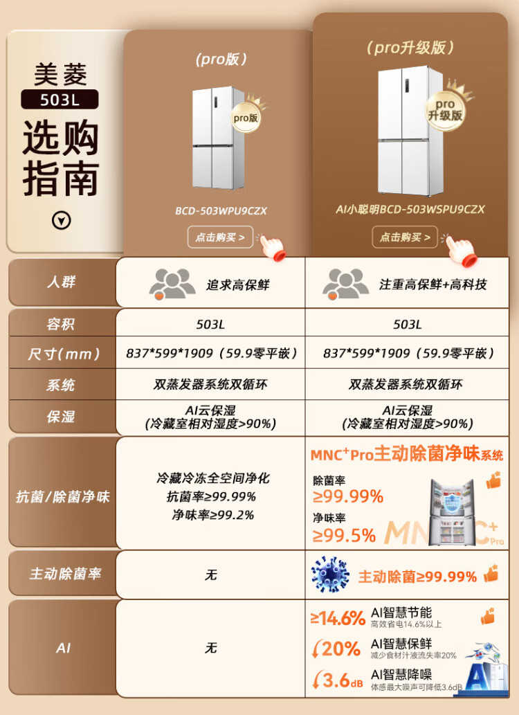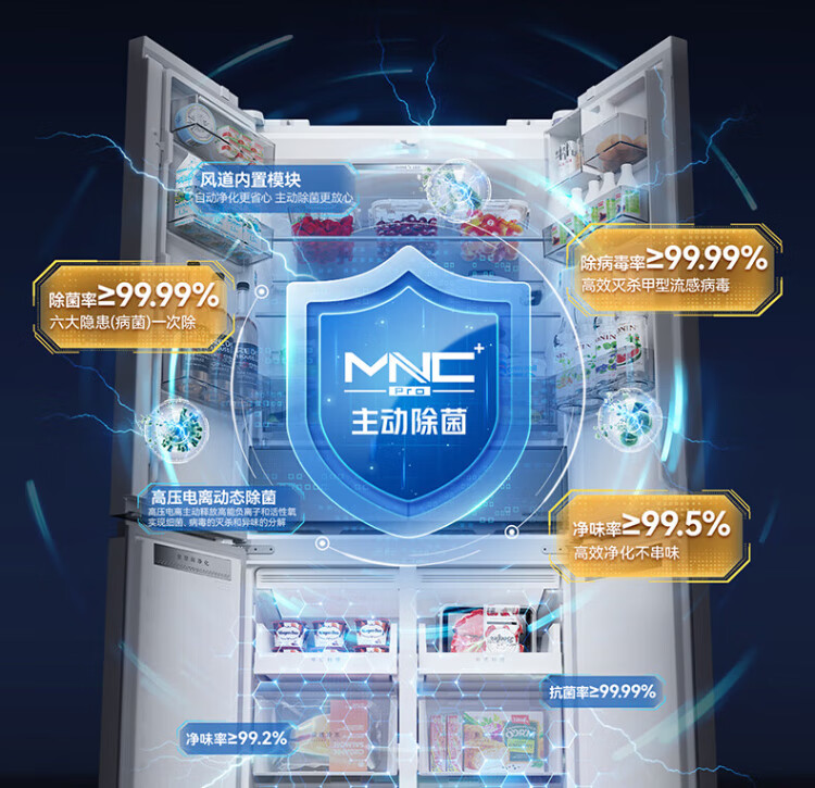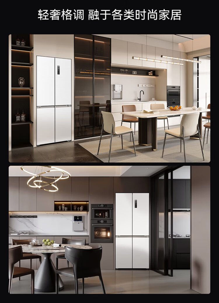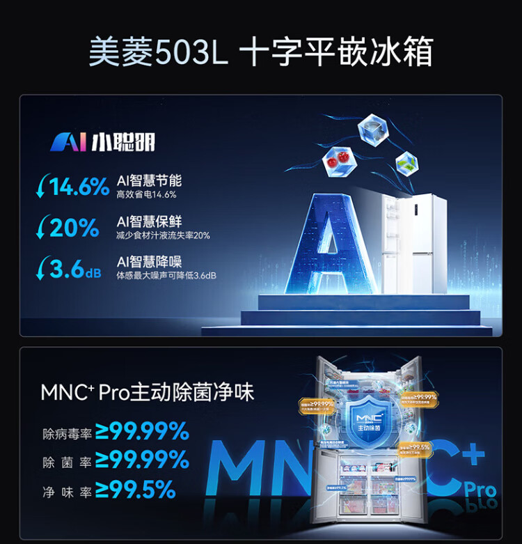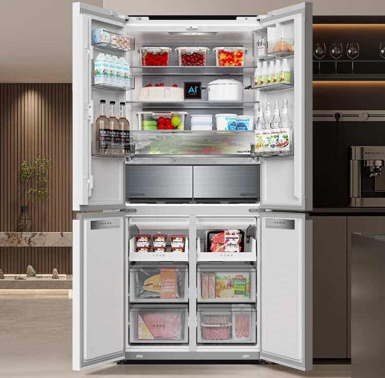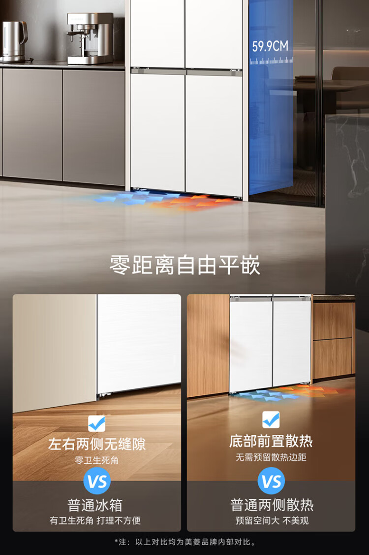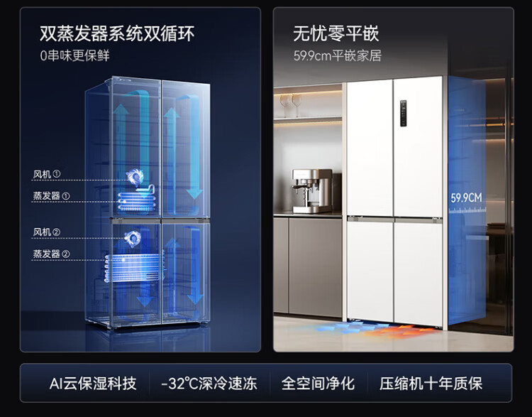 MeiLing AI Refrigerator 503 cross four-door 59.9cm dual system zero-flat inlay ultra-thin sterilization, virus removal and fresh-keeping large capacity first-class power-saving refrigerator national subsidy worry-free inlay BCD-503WSPU9CZX-white