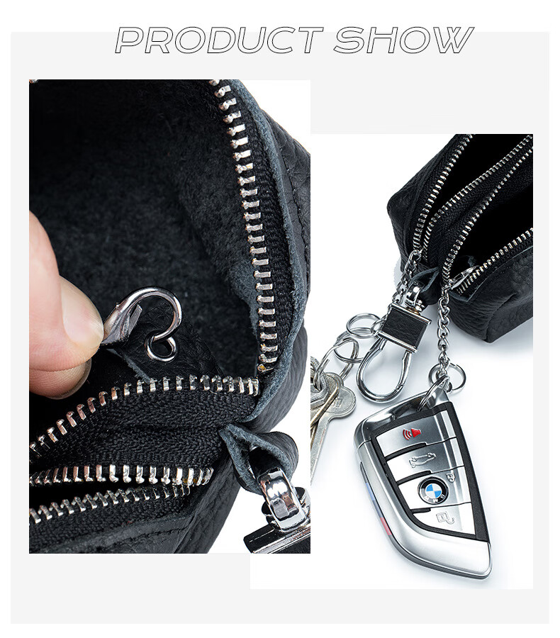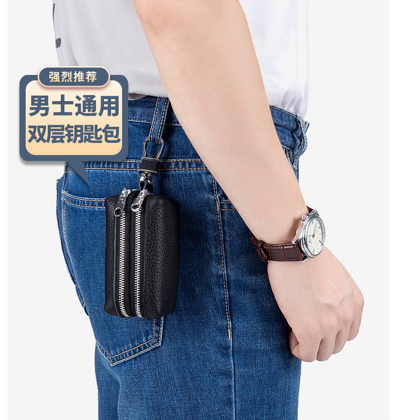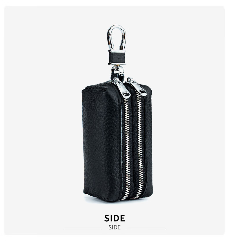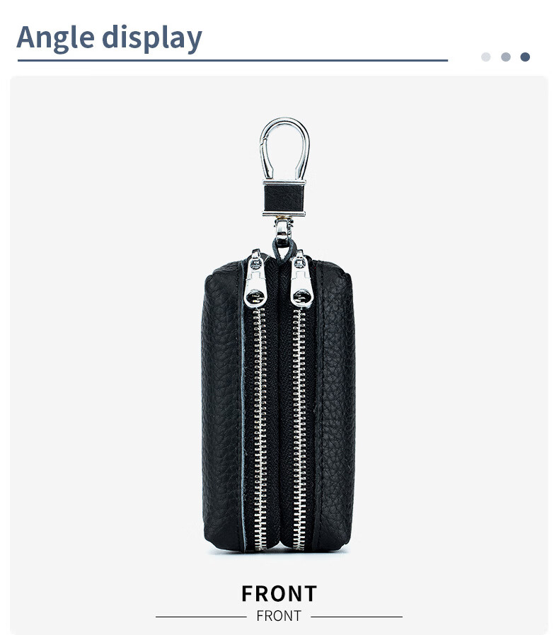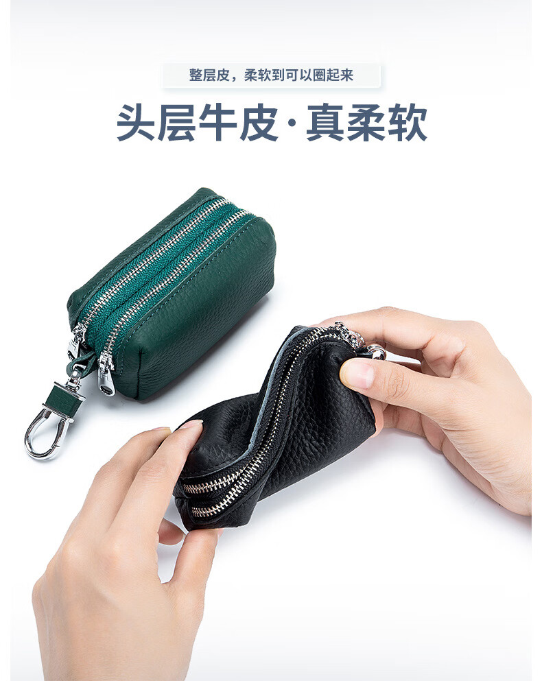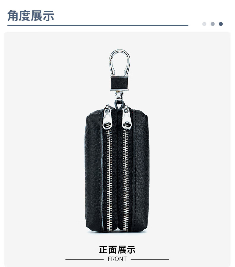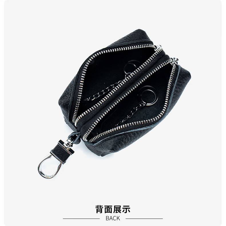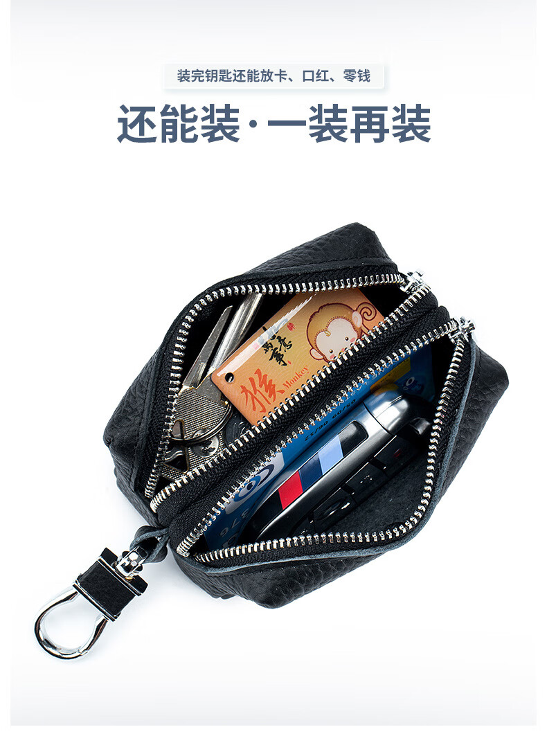 Kuqi Kangaroo (KUQIDAISHU) large-capacity key bag double-layer soft multi-functional card holder for men and women coin purse key bag home first-layer cowhide black
