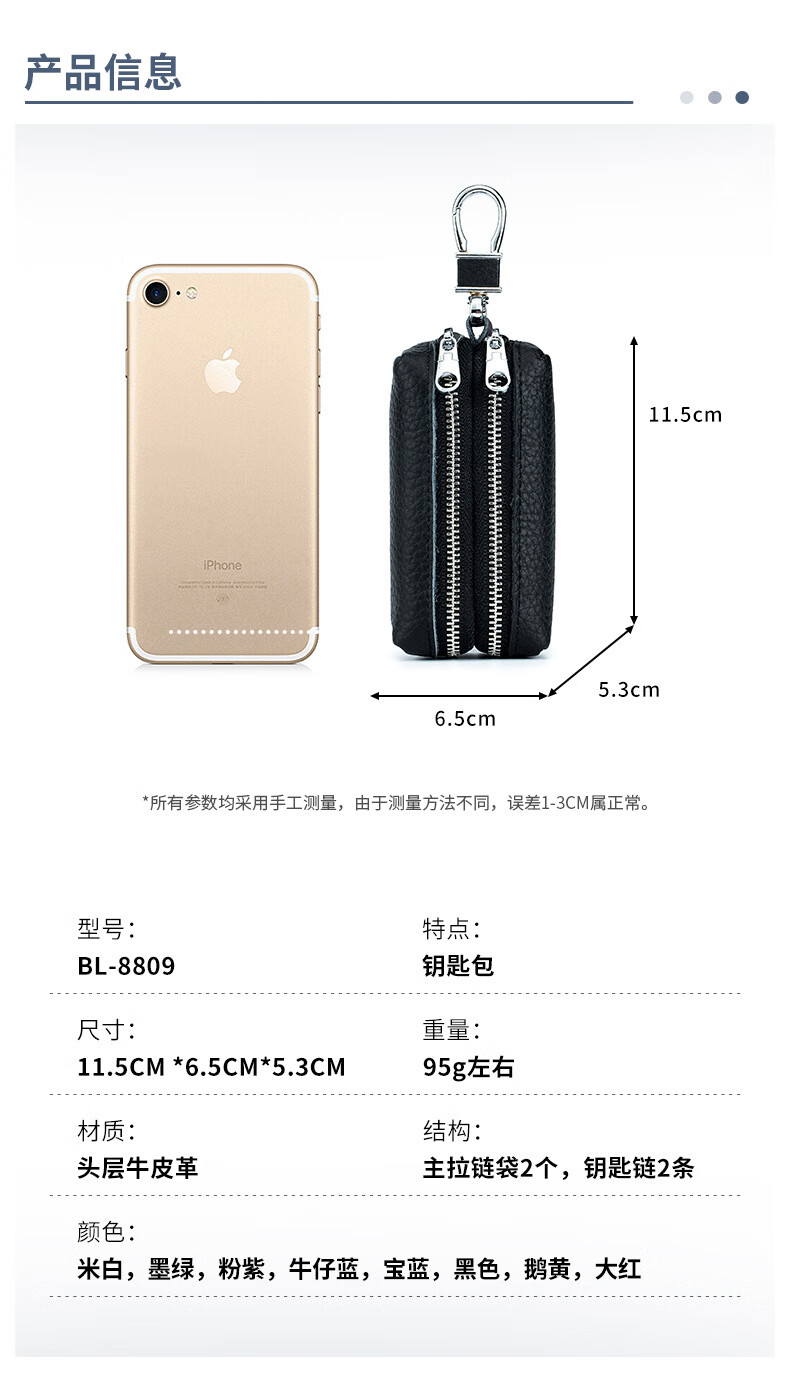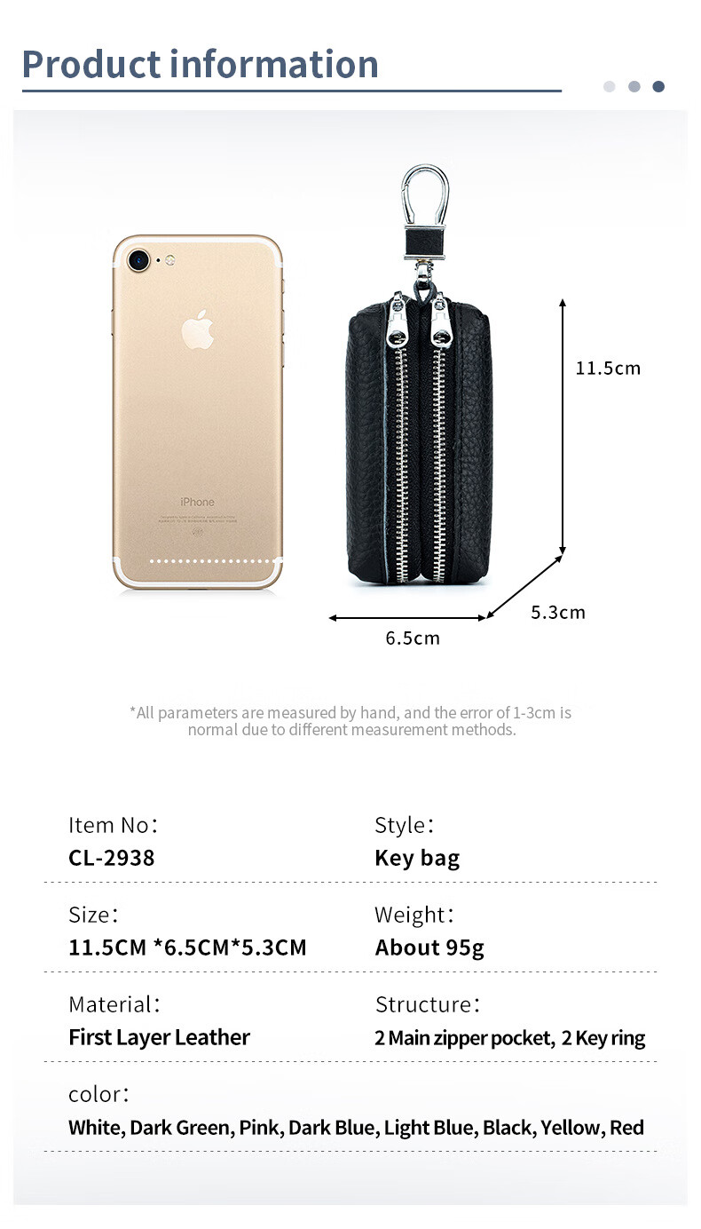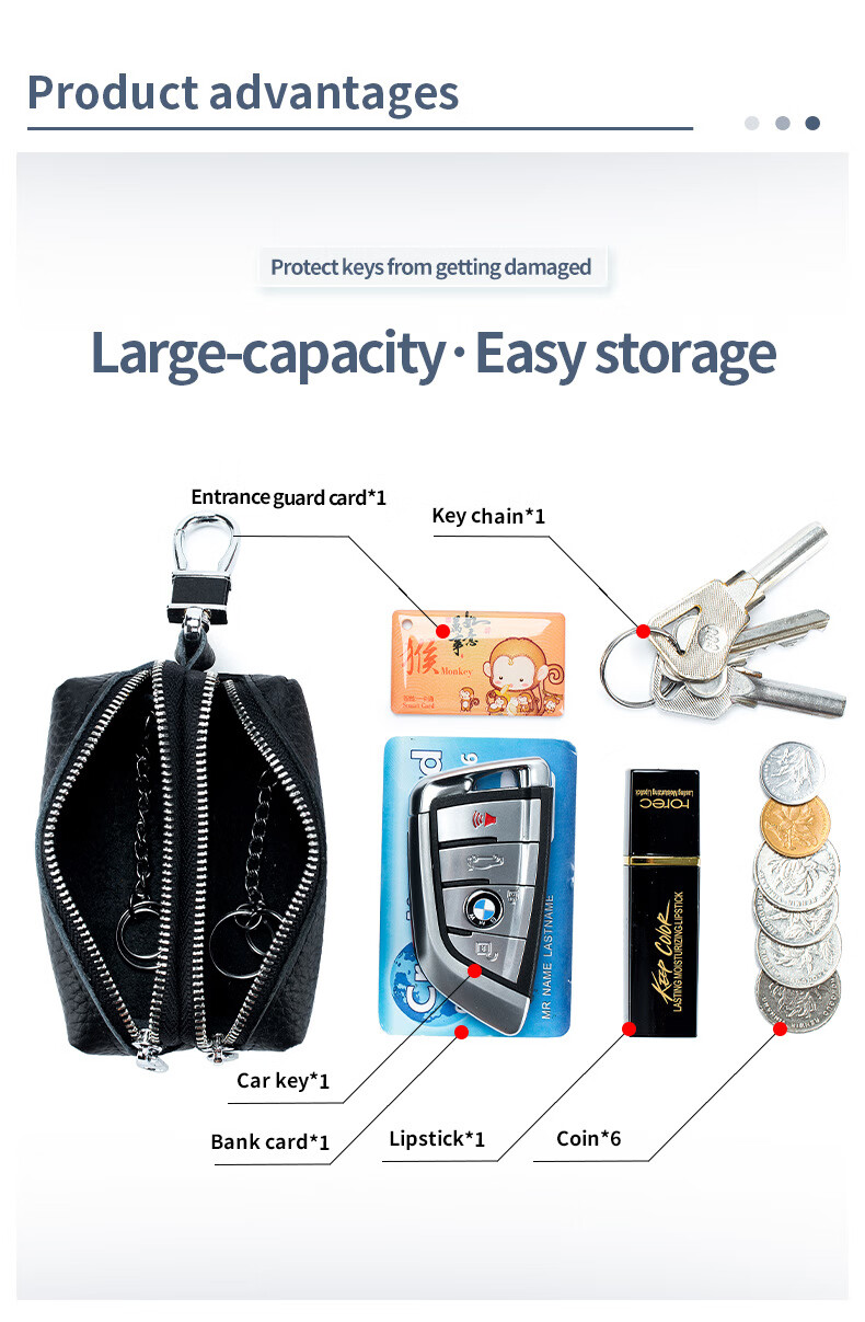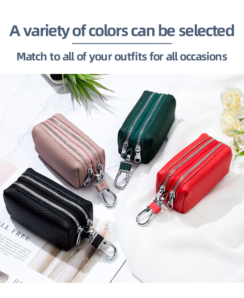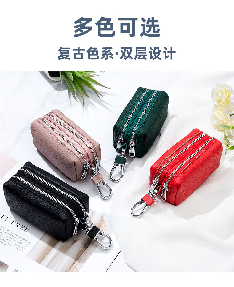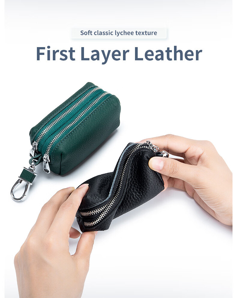 Kuqi Kangaroo (KUQIDAISHU) large-capacity key bag double-layer soft multi-functional card holder for men and women coin purse key bag home first-layer cowhide black