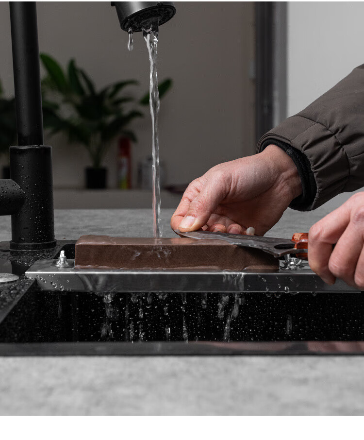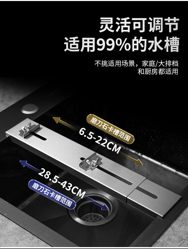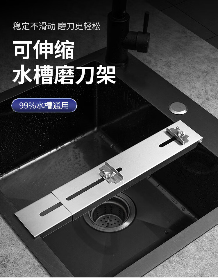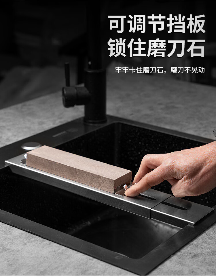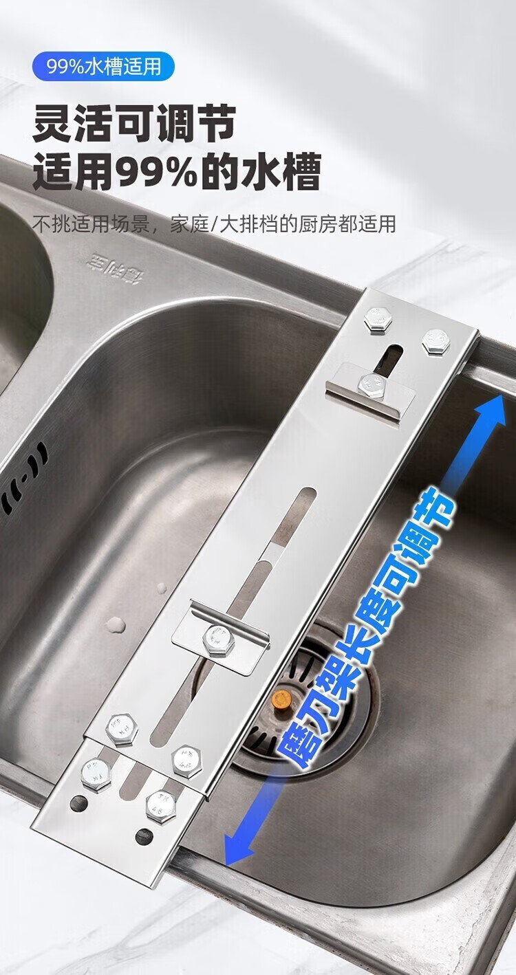 Initial idea of whetstone holder, whetstone, 304 stainless steel household sink, adjustable thickened telescopic knife sharpener artifact, stainless steel whetstone + whetstone, whetstone color random