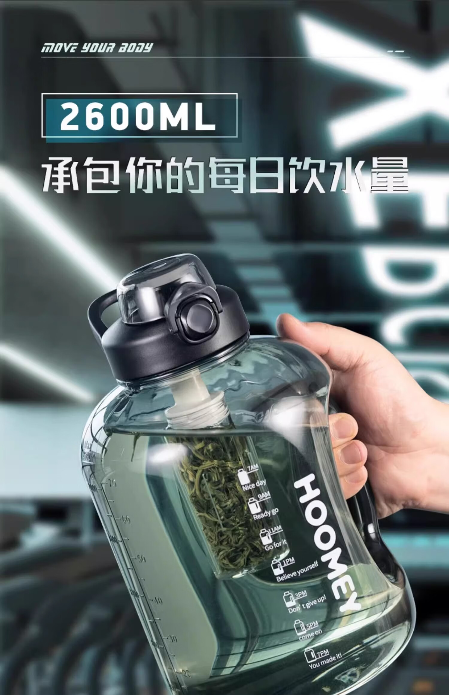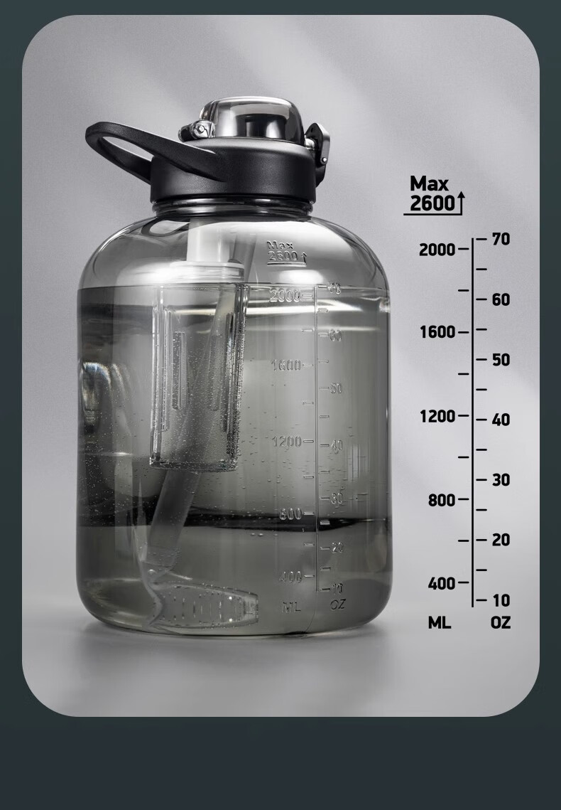Poppy Bear tons of tons of large-capacity water cups men's sports fitness kettle high temperature resistant summer bucket big belly cup tons of buckets black iron black + cup brush 1800ml