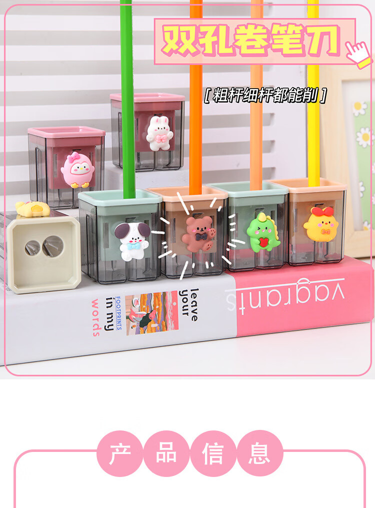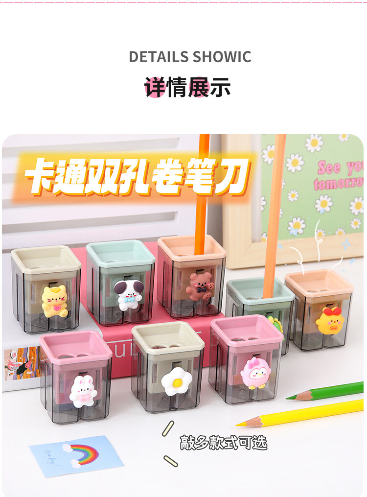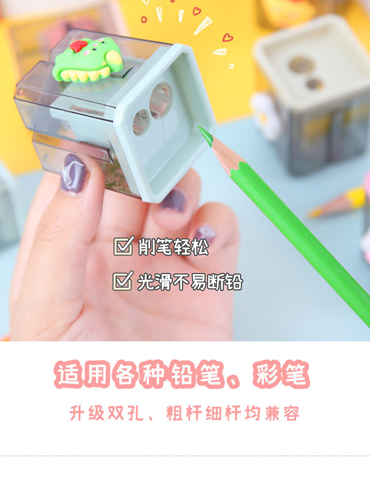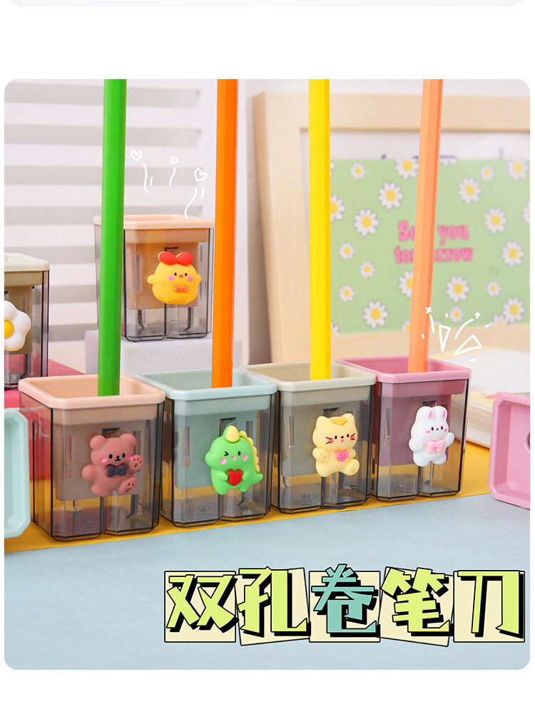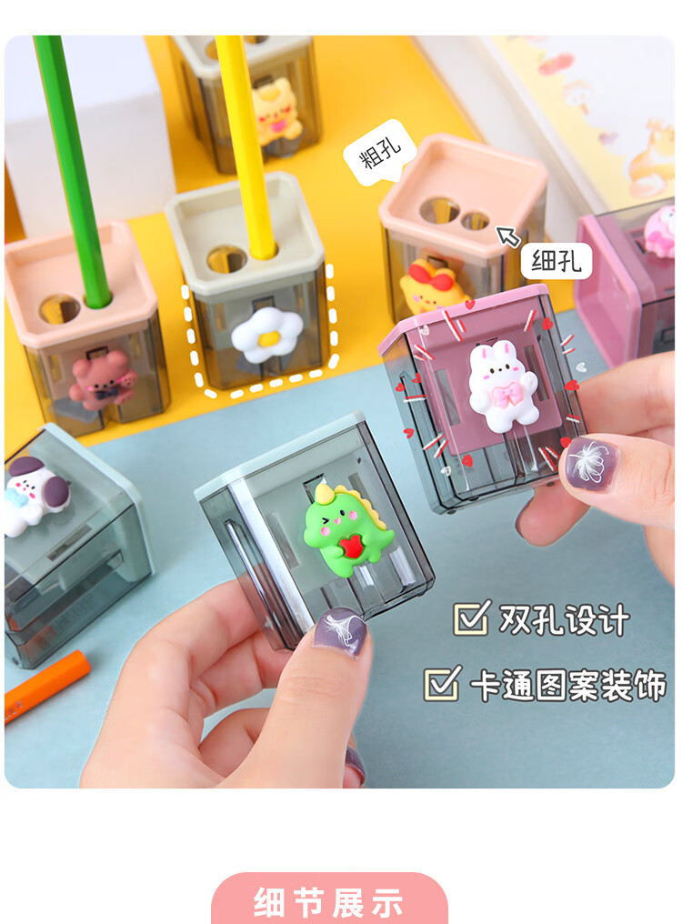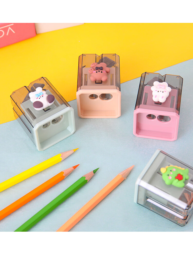 Cartoon double-hole pencil sharpener for students, small portable pencil sharpener, student pencil sharpener, pencil sharpener, random 1 piece