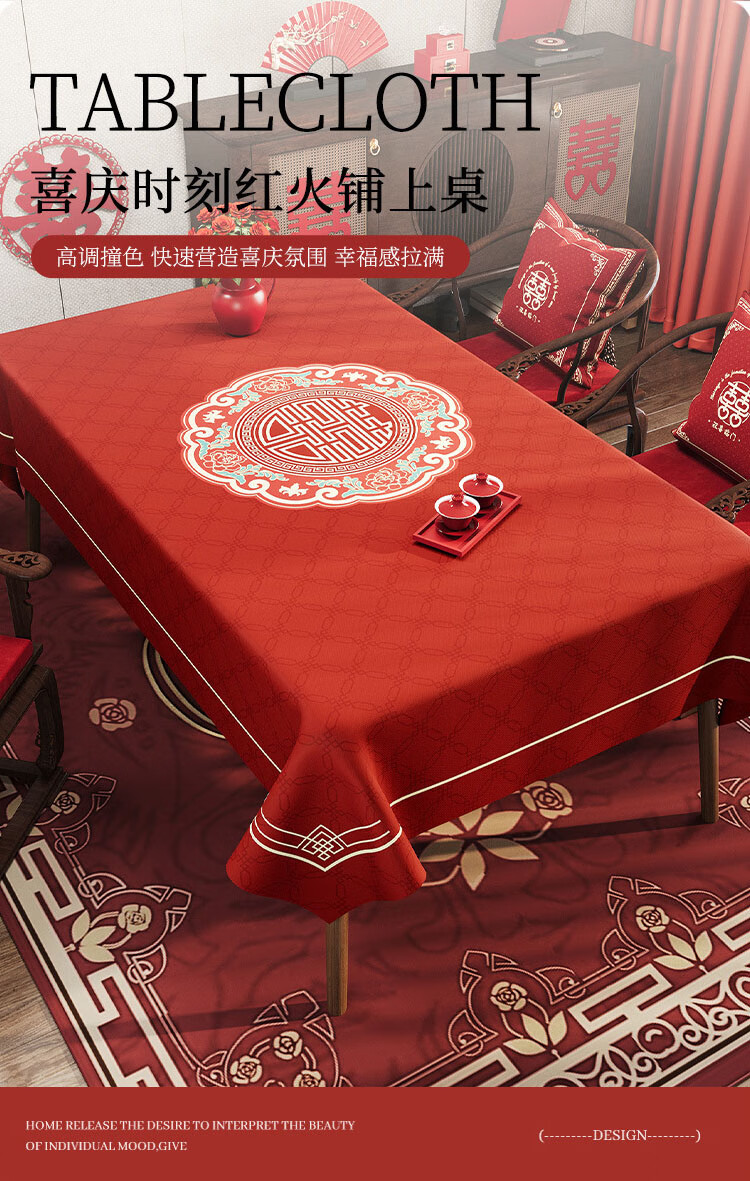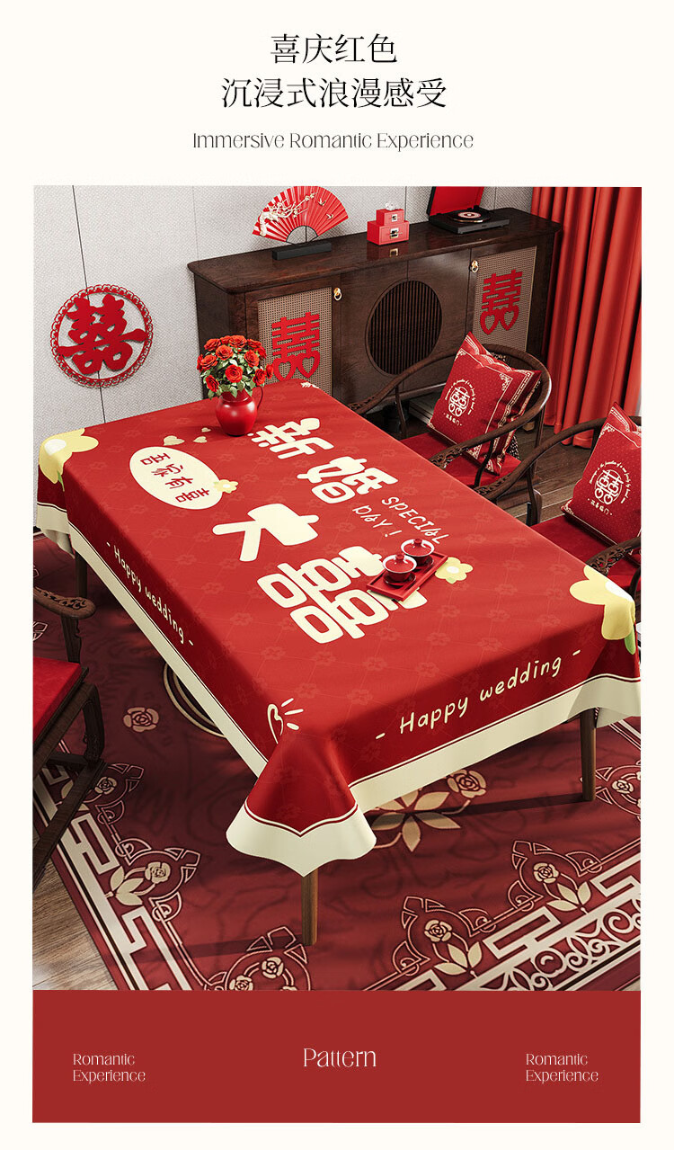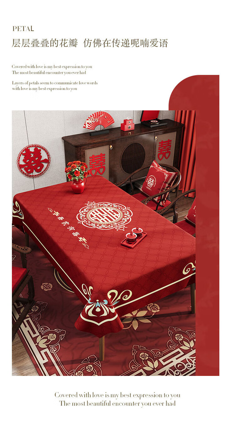 Red festive wedding tablecloth oil-proof, waterproof, no-wash, light luxury, high-end new tablecloth, household coffee table tablecloth, Changbiyi 60*120cm