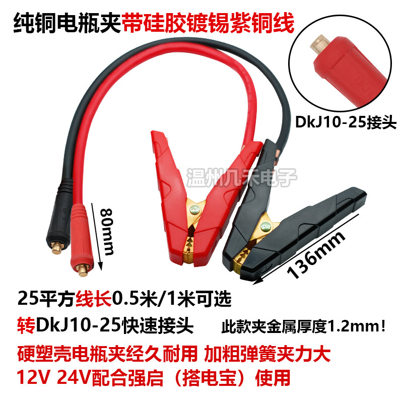 Qixun adapts to 12V24V car emergency starting power supply to quick connector connection line pure copper strong starter battery battery 12 square meters 2 meters pure copper wire with pure copper clip