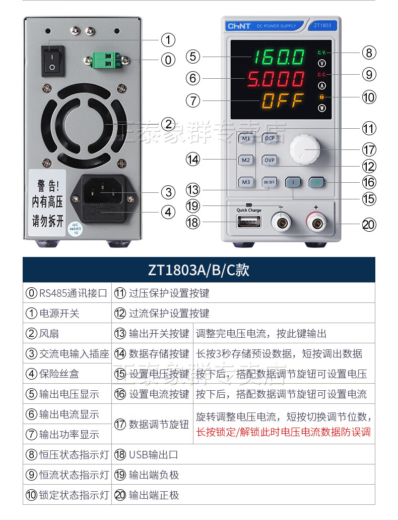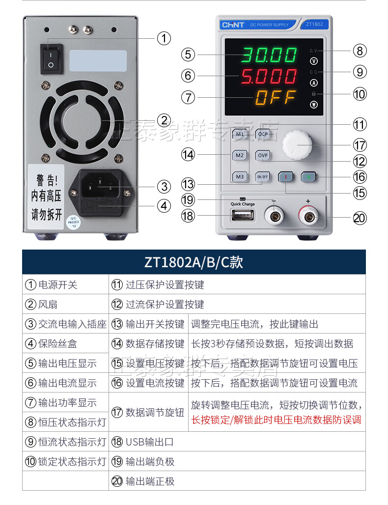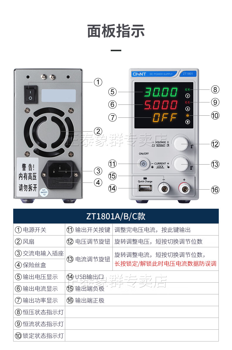 Chint adjustable DC voltage regulator power supply mobile phone repair power supply 0-30V 10A/overcurrent and overvoltage adjustable + 3 sets of data