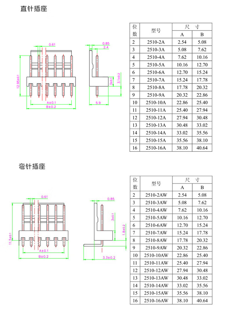 KF2510 straight pin curved needle seat rubber shell 2.54mm plug socket 2/3/4/5/6/7/8/9/10P connector KF2510 (100 pieces)