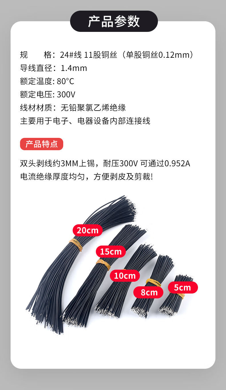1007 double-ended tinned wire 24AWG wire electronic wire connecting line red and black jumper 8cm10cm15cm20cm 24-gauge wire double-ended tinned 14 combinations others