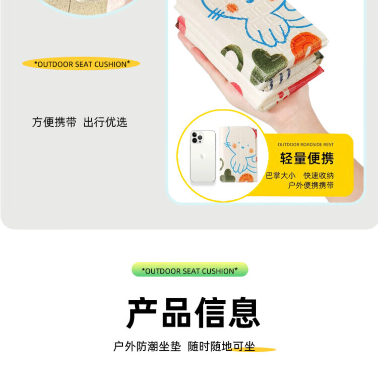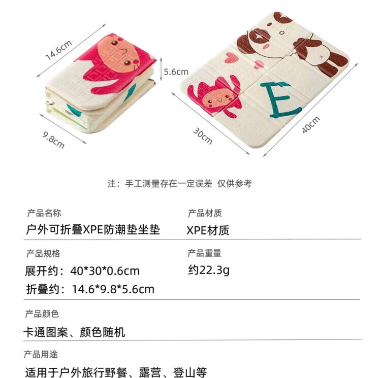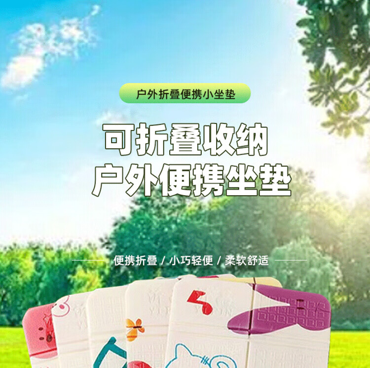 Outdoor folding cushion, portable, moisture-proof, thickened and dirt-proof, mountaineering camping mini cushion, random pattern, 1 small cartoon folding cushion (storage bag included)