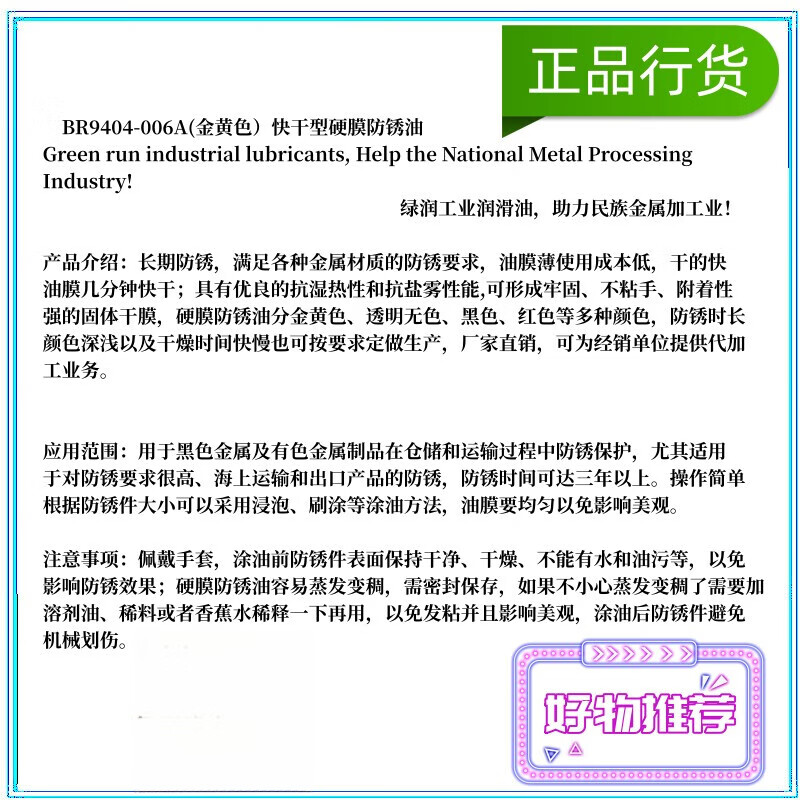 Anti-rust oil golden hard film colorless quick-drying anti-rust oil manufacturer direct sales super long-term anti-rust oil gold 1 liter
