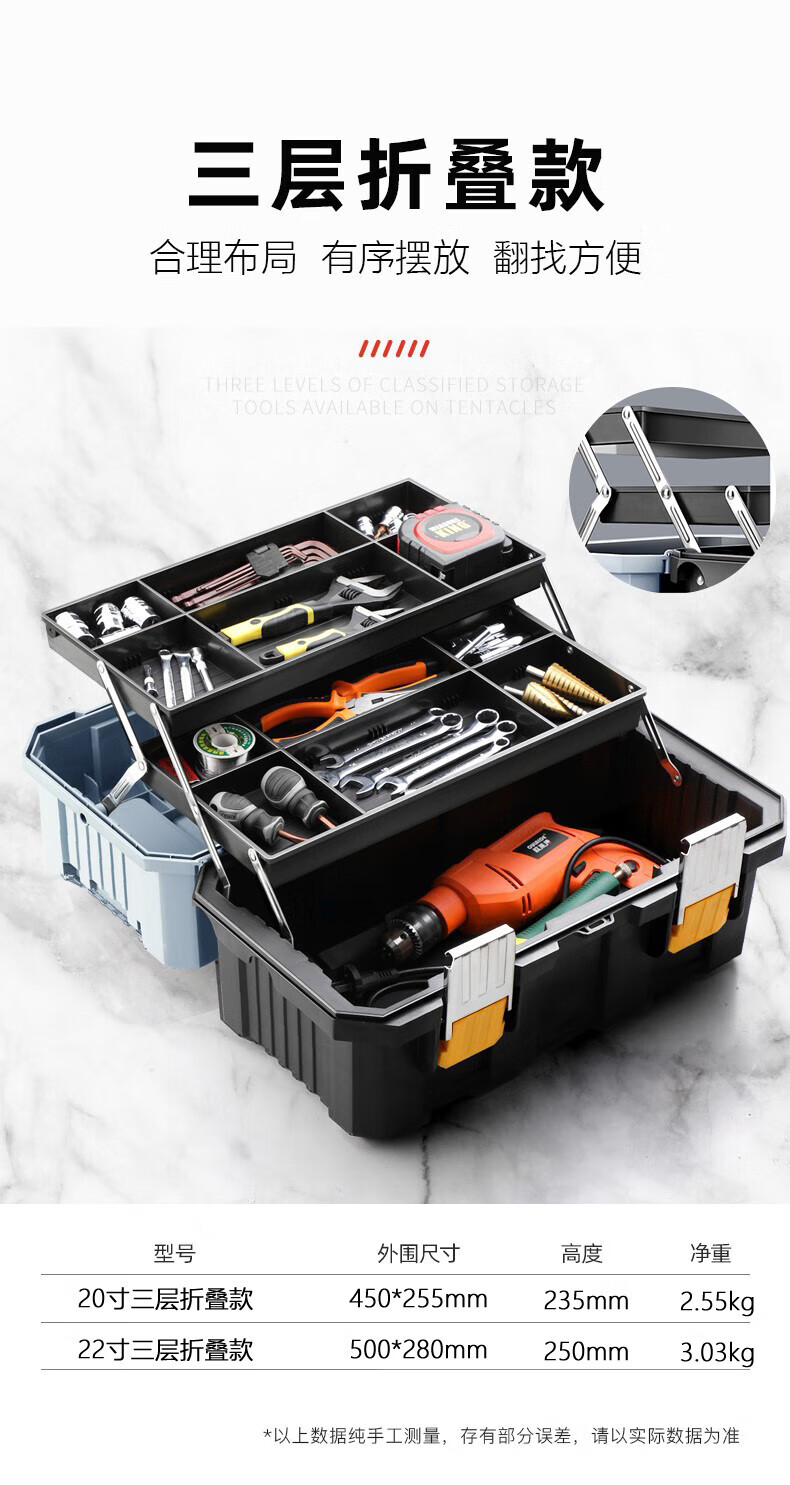 Arrizo tool box storage box household hardware repair box parts box plastic art box electrician folding suitcase small classic tool box