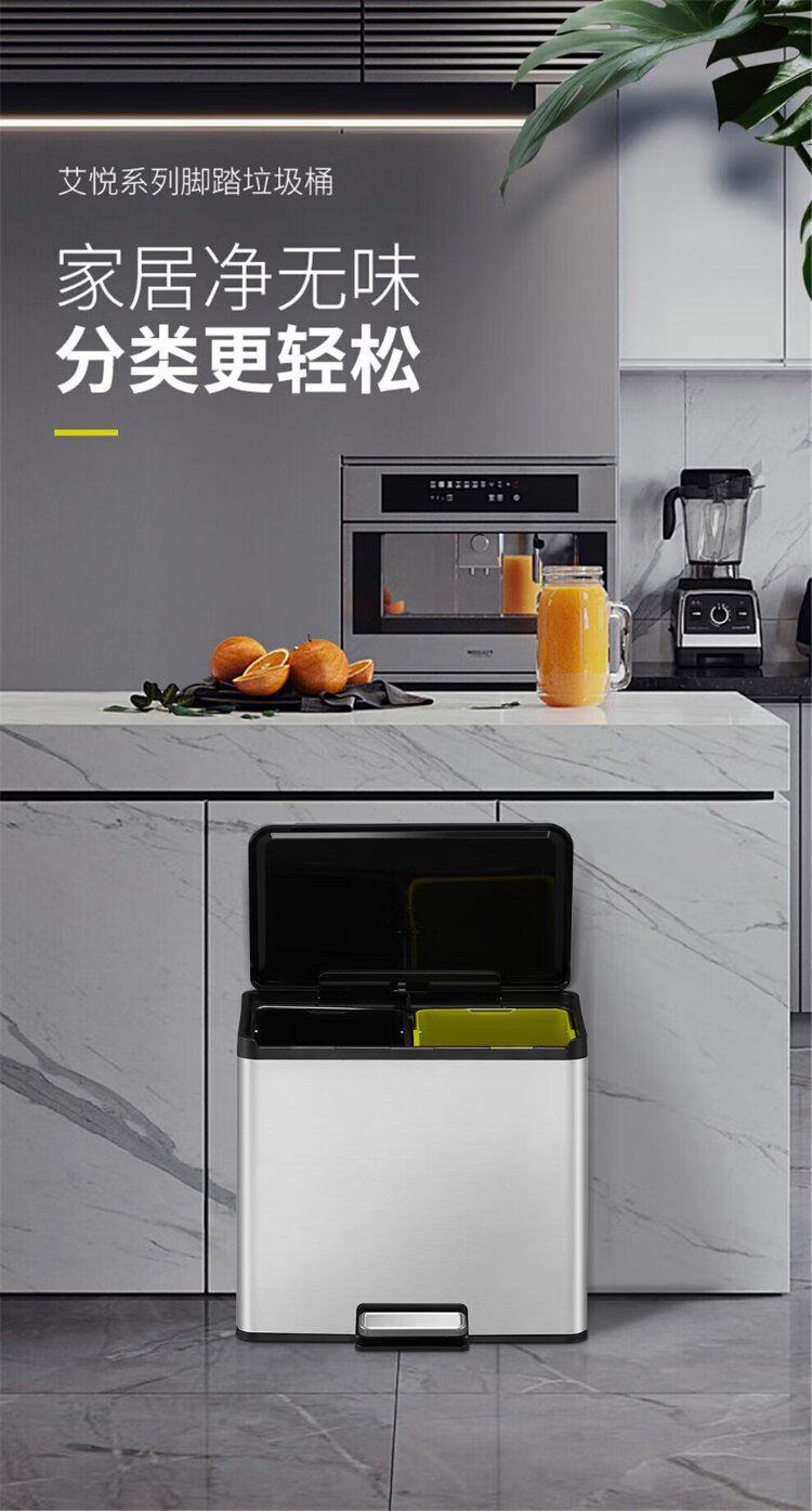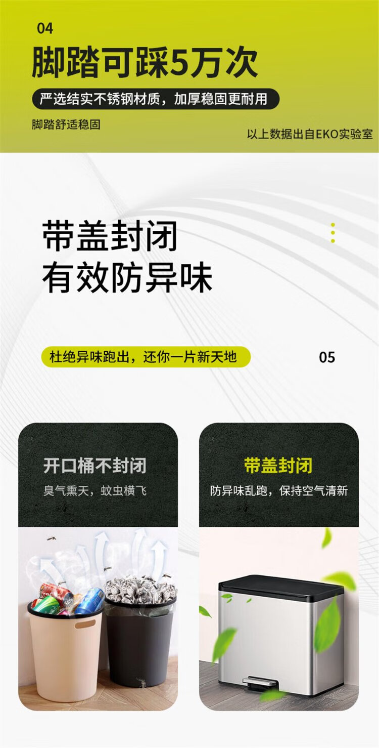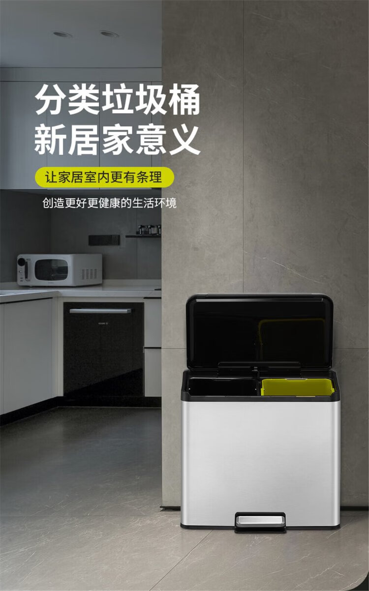 EKO large classification trash can indoor hotel property hall office hospital commercial dry and wet separation foot bucket 8229-10L+10L free classification label