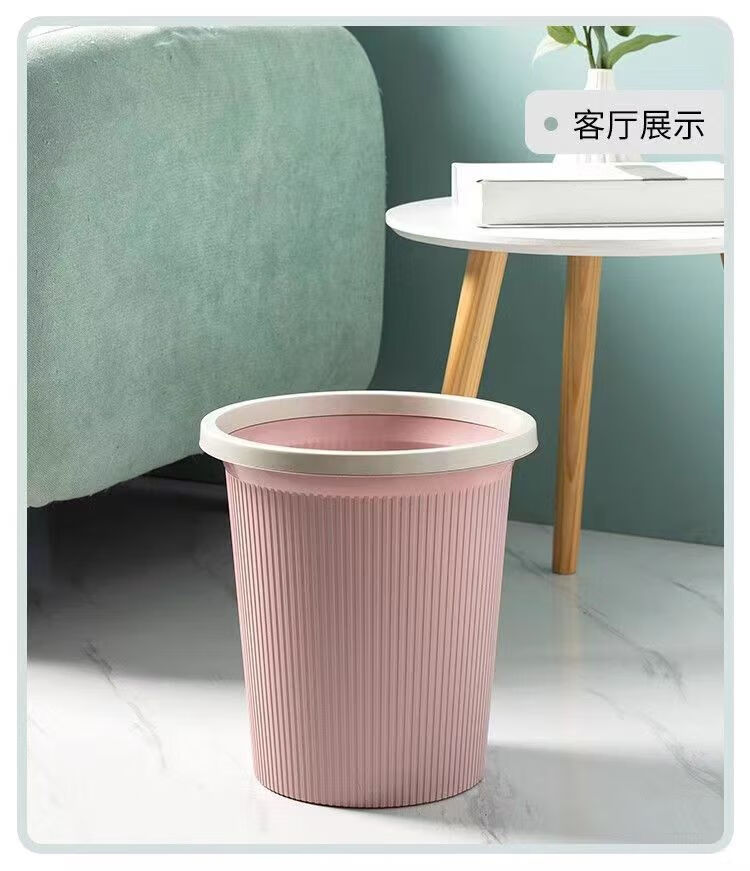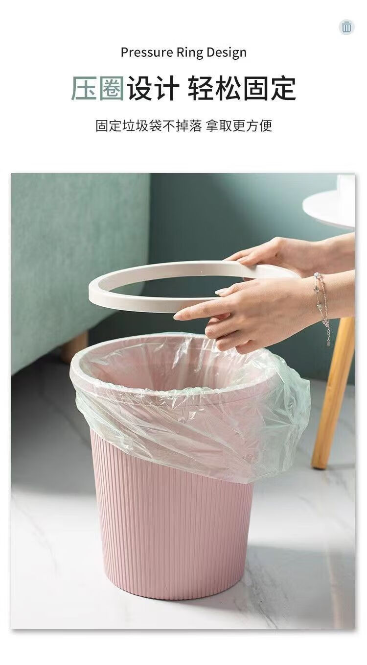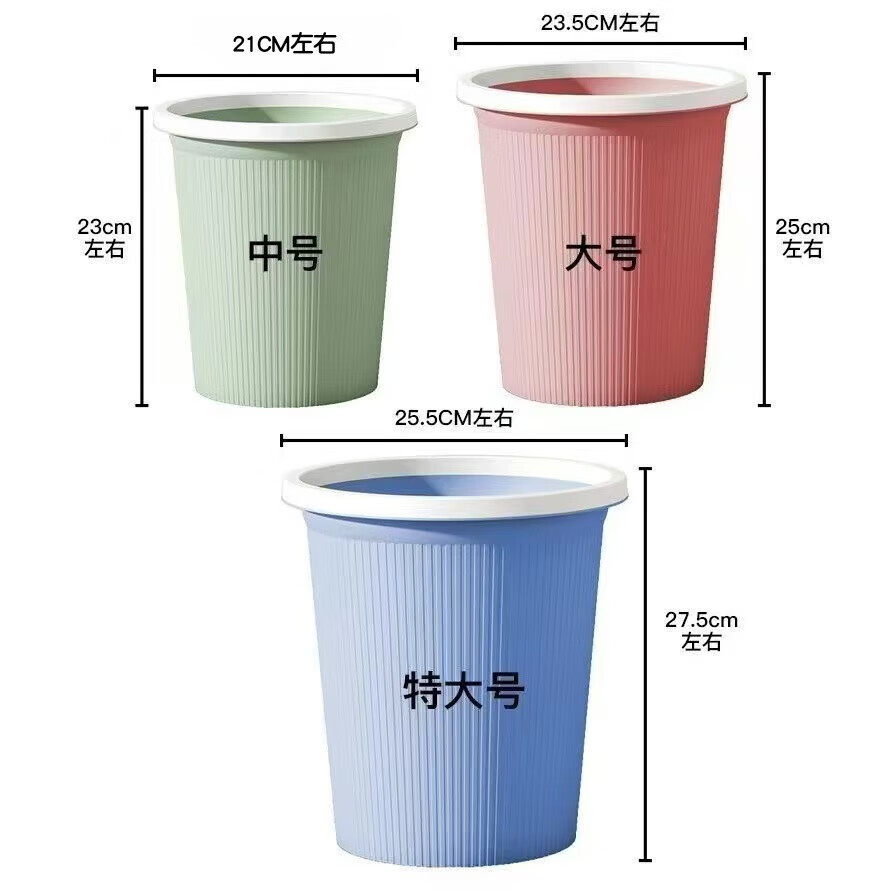 European-style household striped trash can for living room, bedroom, kitchen, toilet, bathroom, office, lidless paper basket with pressure ring, Nordic blue, medium size