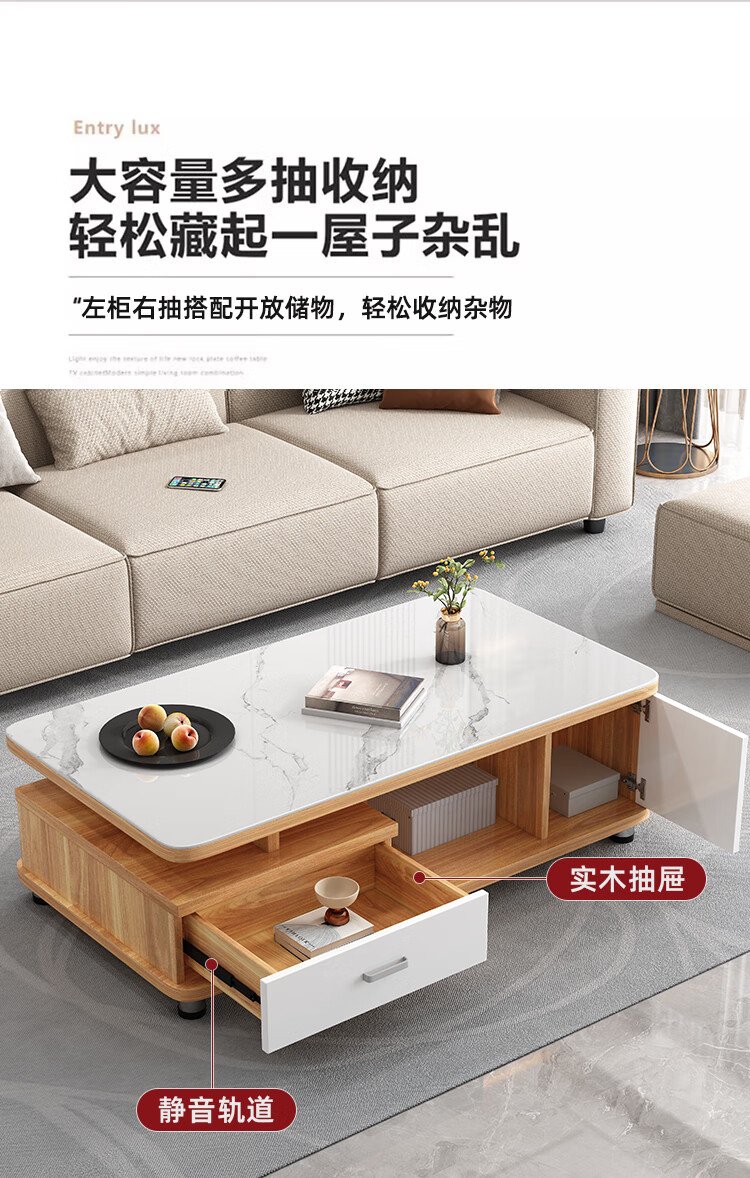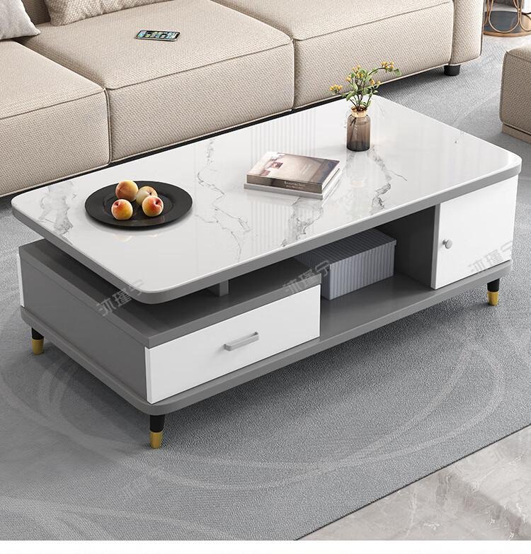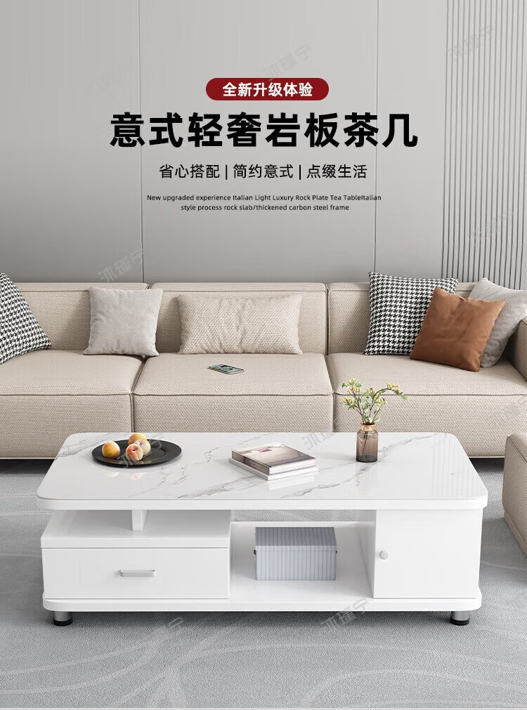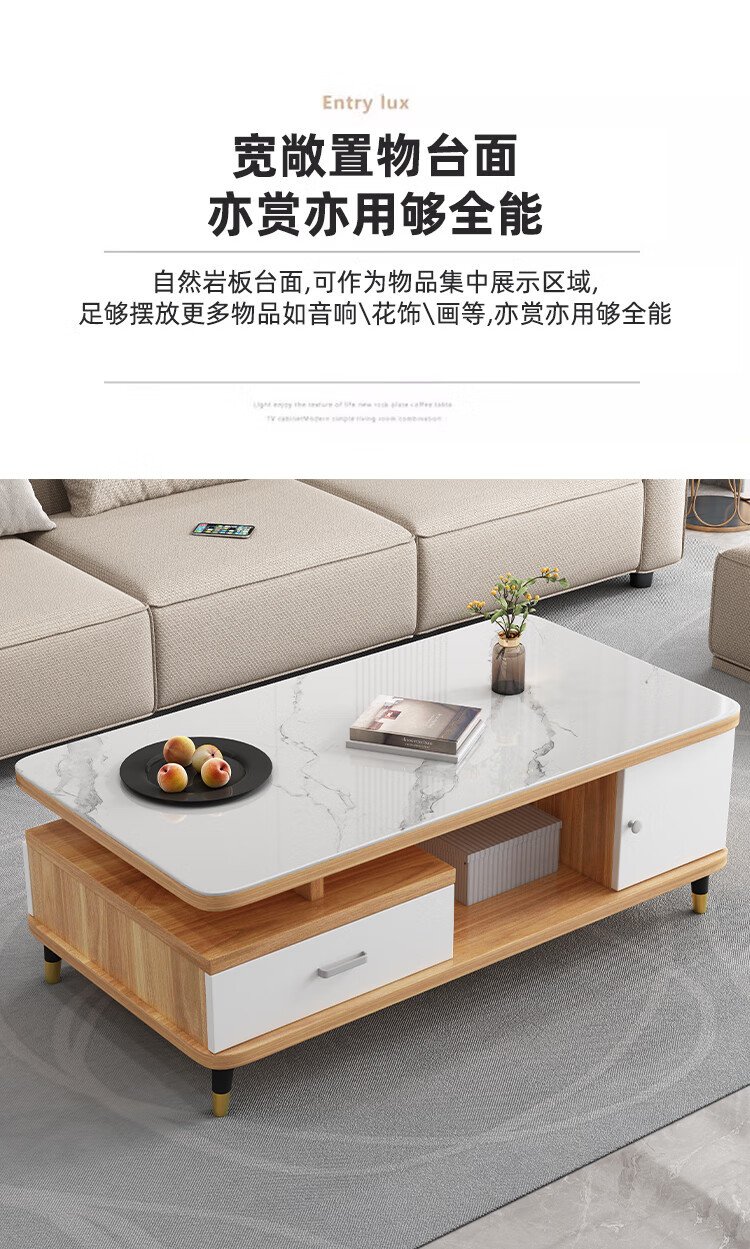 Mu Jinning Slate Coffee Table Modern Simple 2025 New Living Room Bedroom Light Luxury Small Apartment Solid Wood Ecological Board Coffee Table Side Table Extra Height Premium Gray Stone Slate Coffee Table 120cm