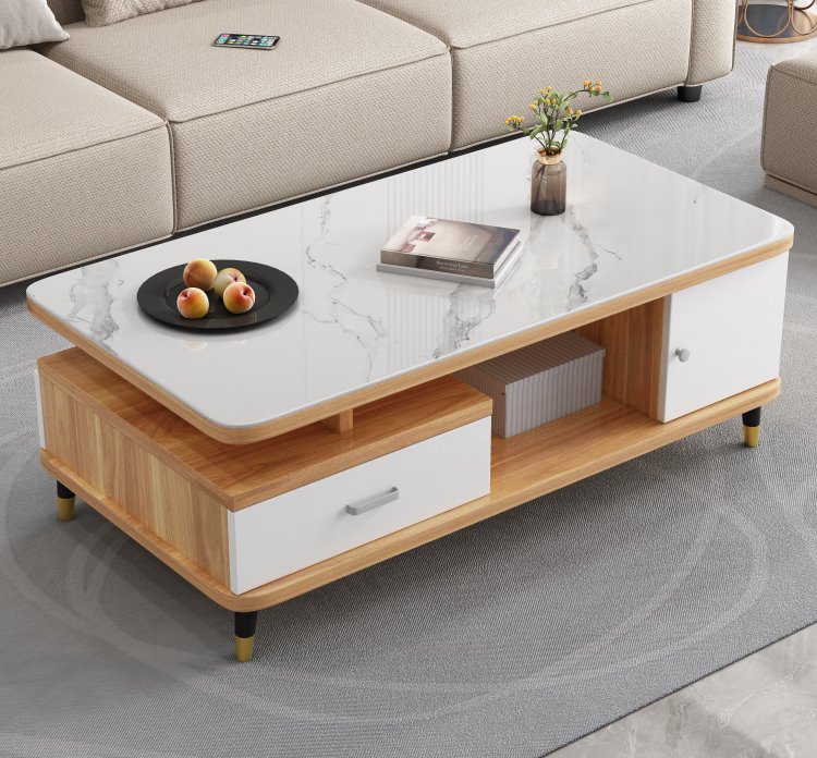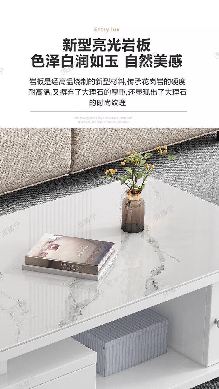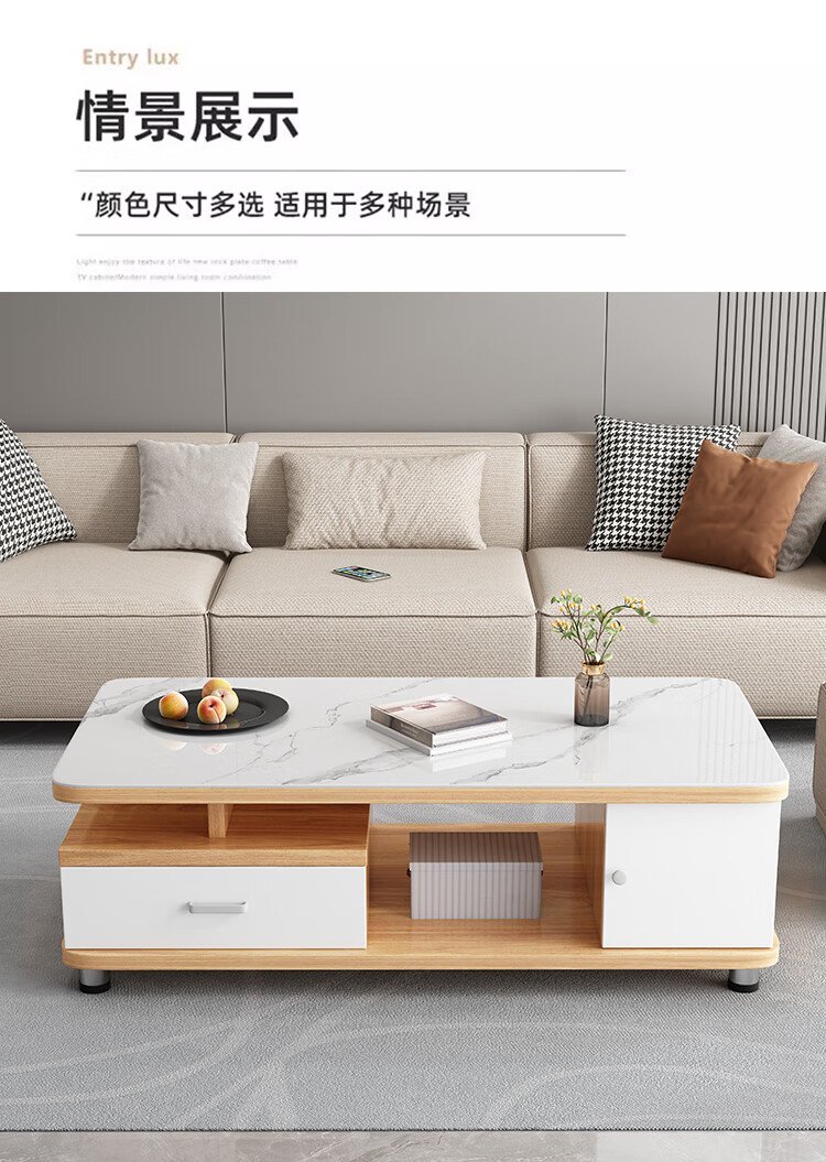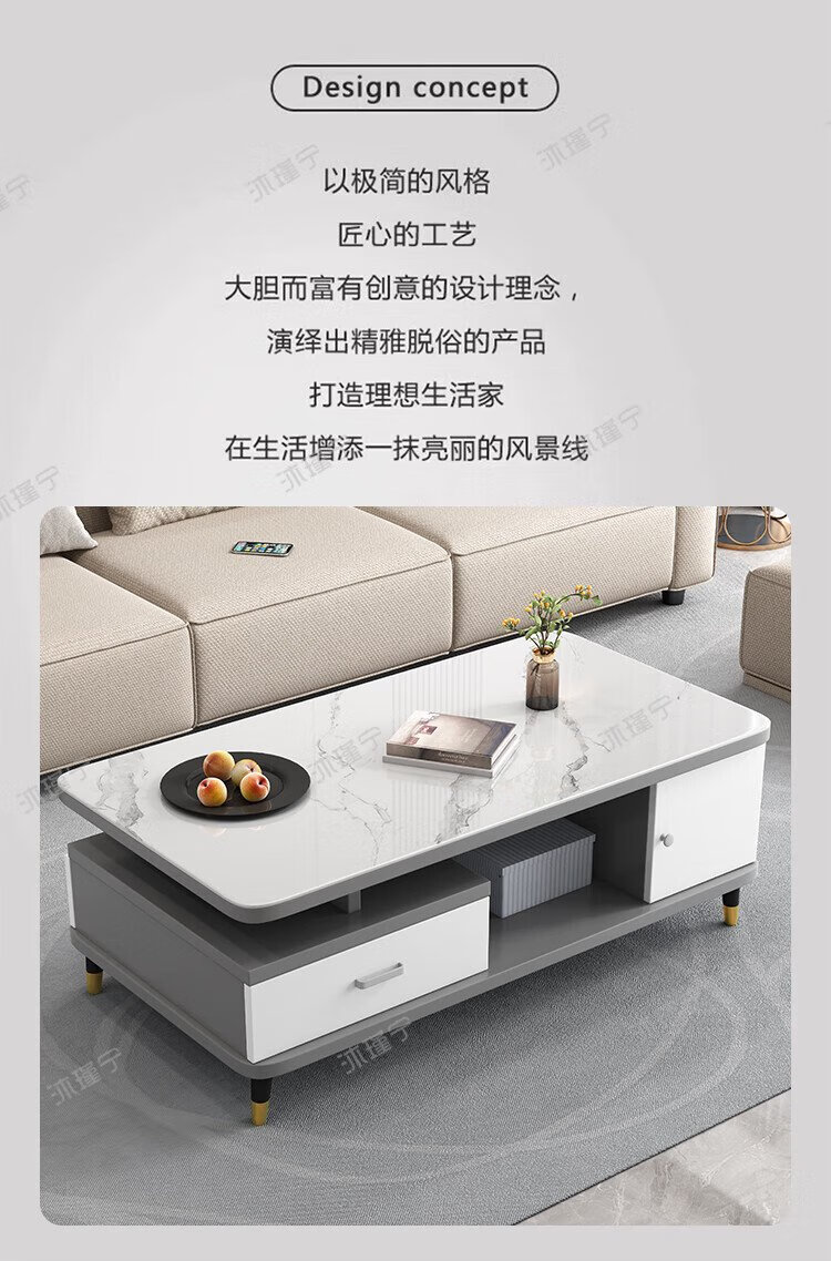 Mu Jinning Slate Coffee Table Modern Simple 2025 New Living Room Bedroom Light Luxury Small Apartment Solid Wood Ecological Board Coffee Table Side Table Extra Height Premium Gray Stone Slate Coffee Table 120cm
