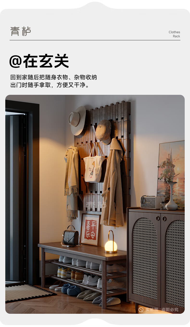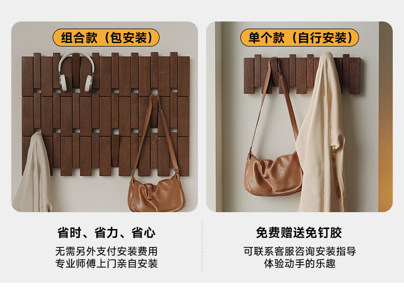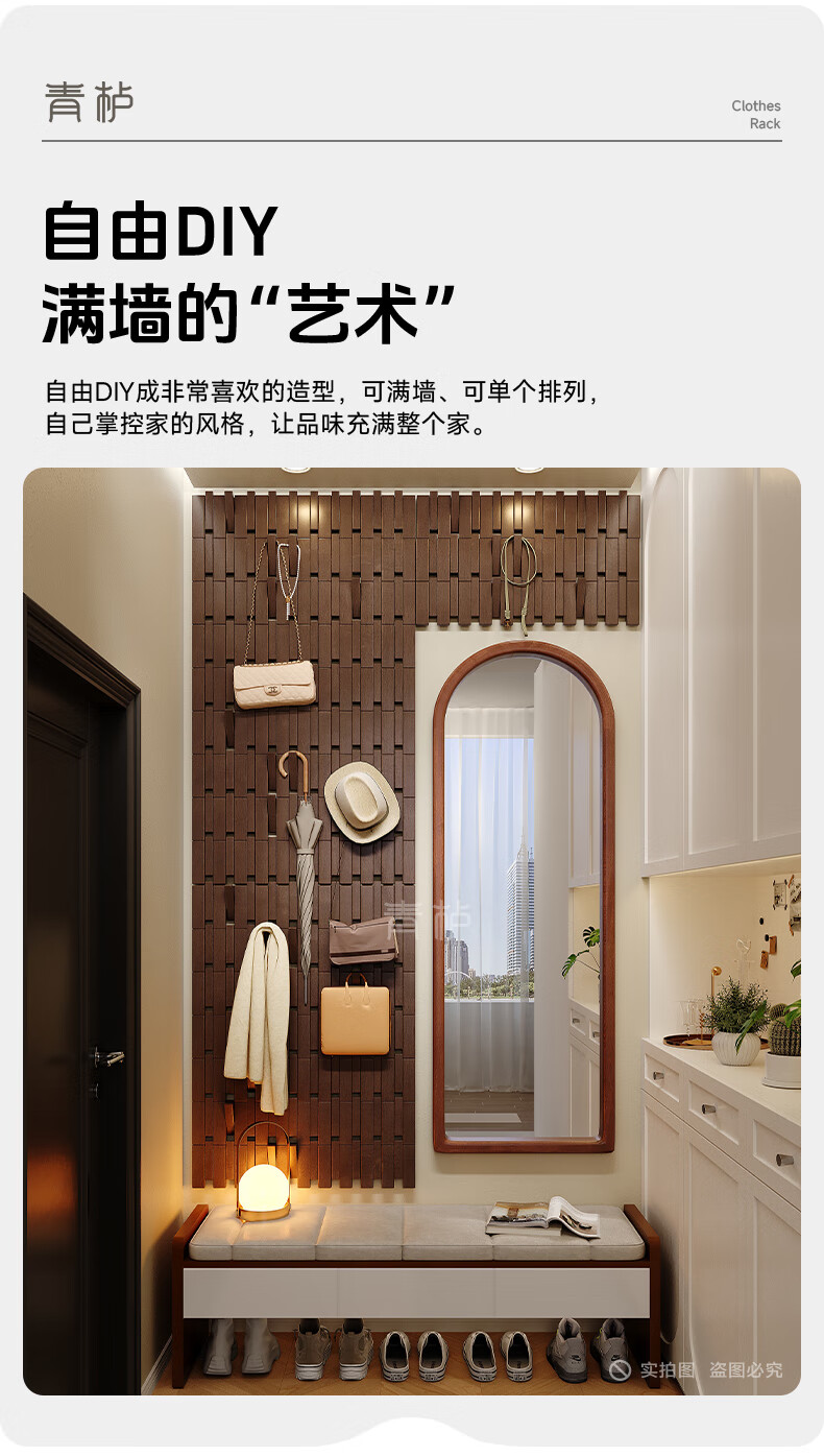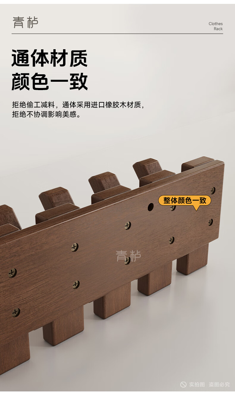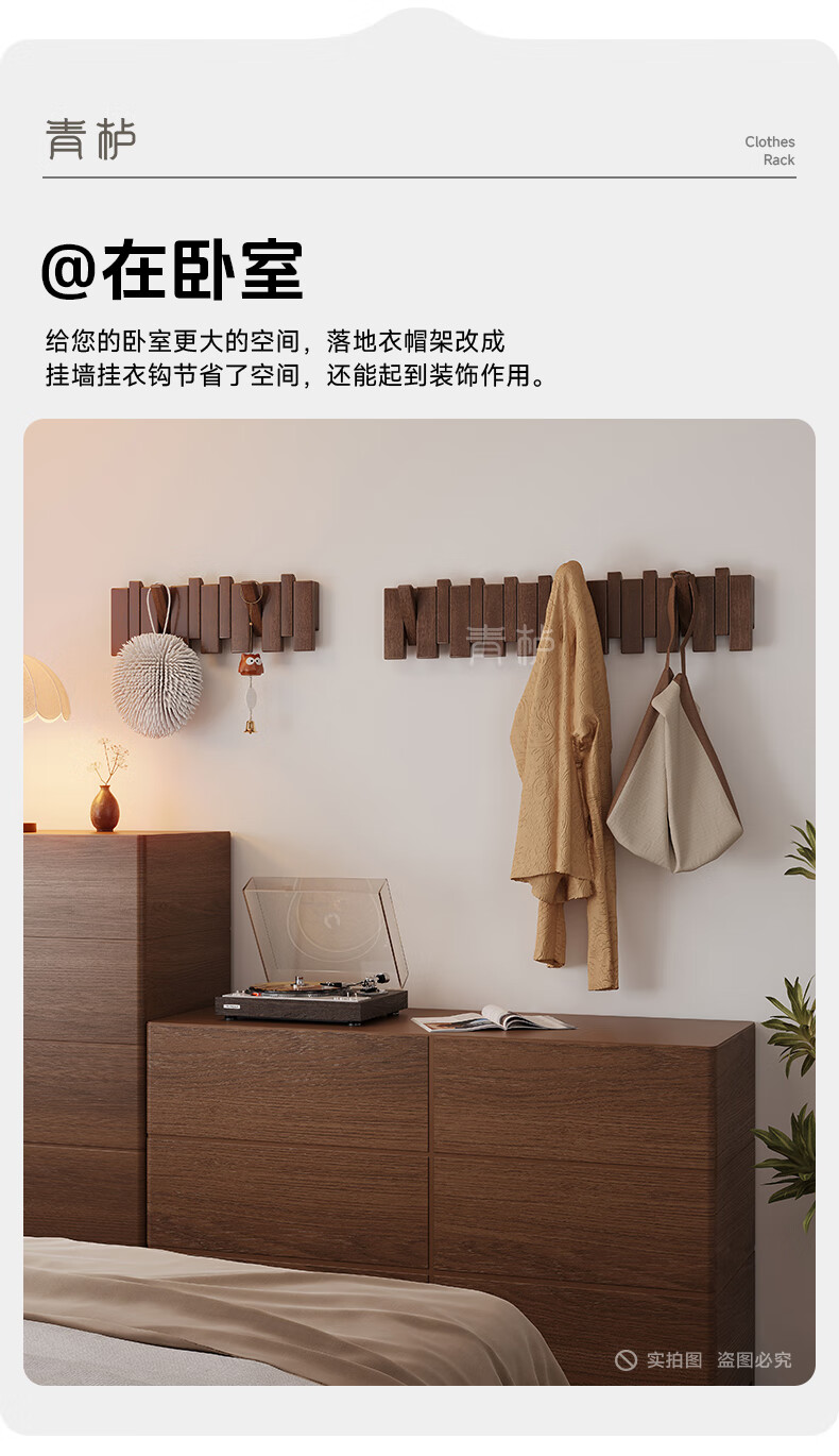 Qinggu solid wood piano key clothes hanger wall hanging coat rack wall hanging clothes hook bag rack entrance door wall clothes hook 35MM thickened walnut color 10 hooks 71CM*1