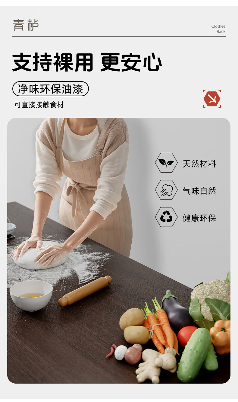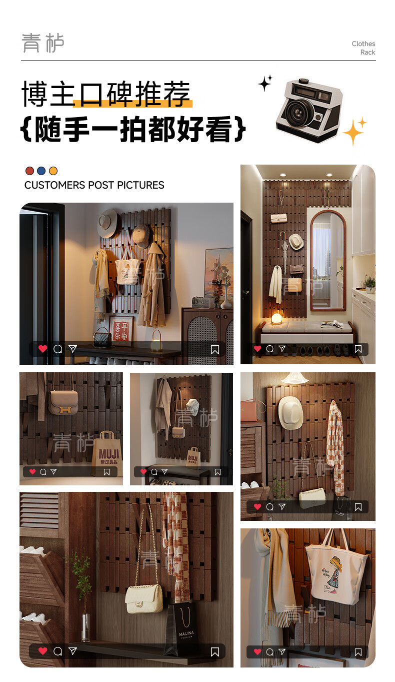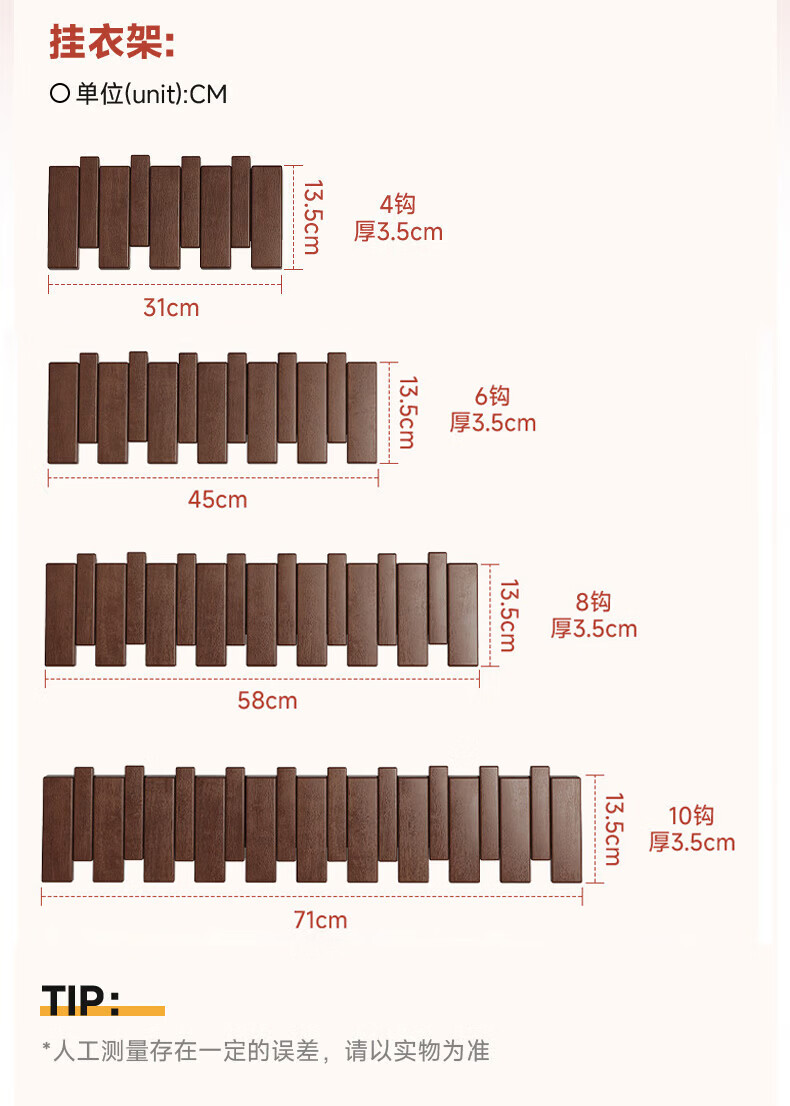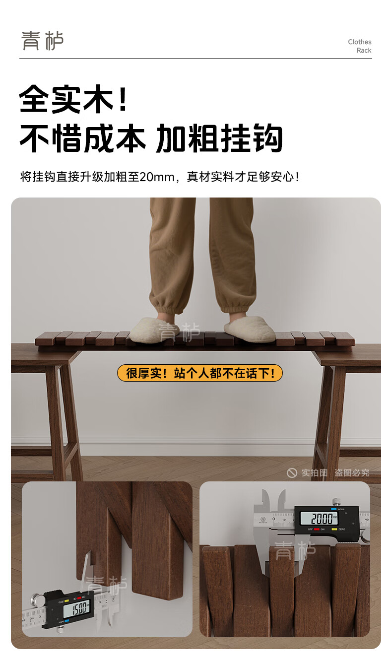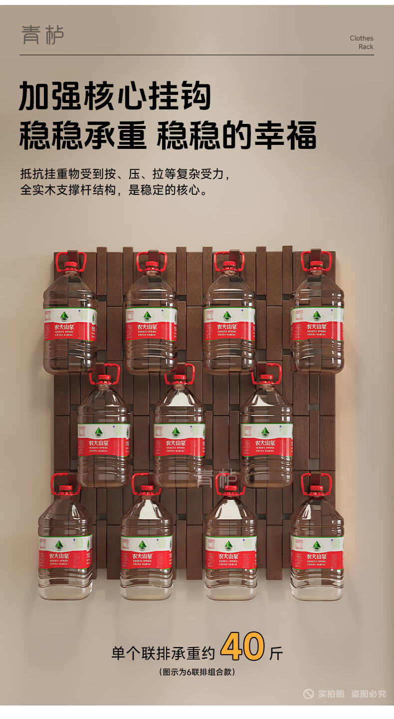 Qinggu solid wood piano key clothes hanger wall hanging coat rack wall hanging clothes hook bag rack entrance door wall clothes hook 35MM thickened walnut color 10 hooks 71CM*1