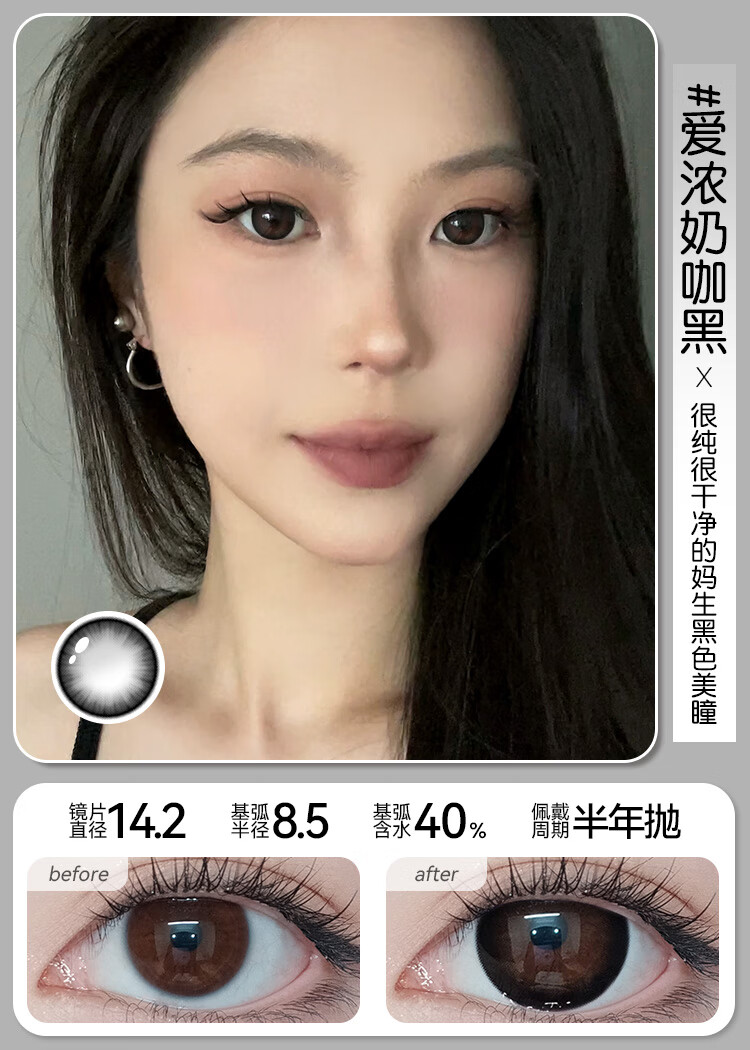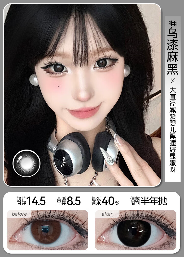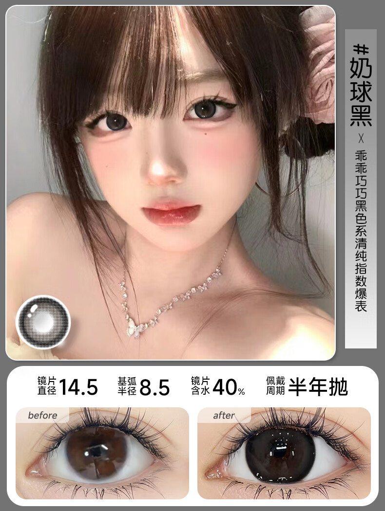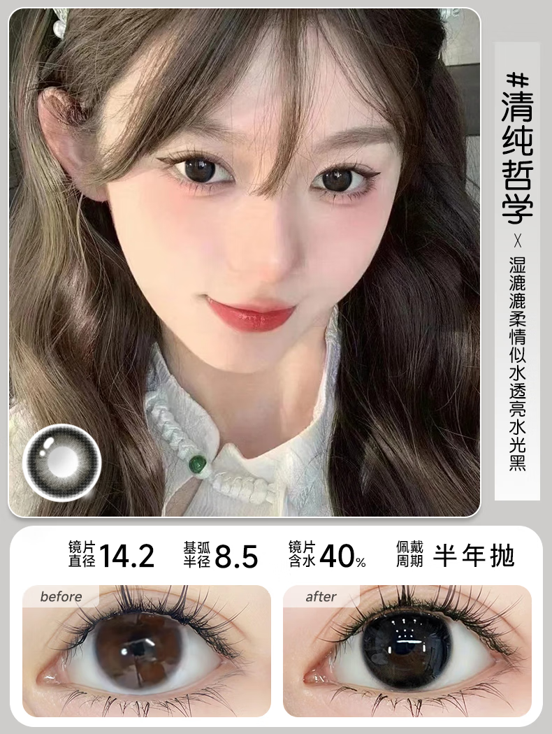 OVOLOOK Black Color Contact Lenses Half Yearly Disposable Genuine Sandwich Size Diameter Hydrating Pure Desire Color Contact Lenses Flagship Store Pure Philosophy 14.2 Half Yearly Disposable 0 Degree