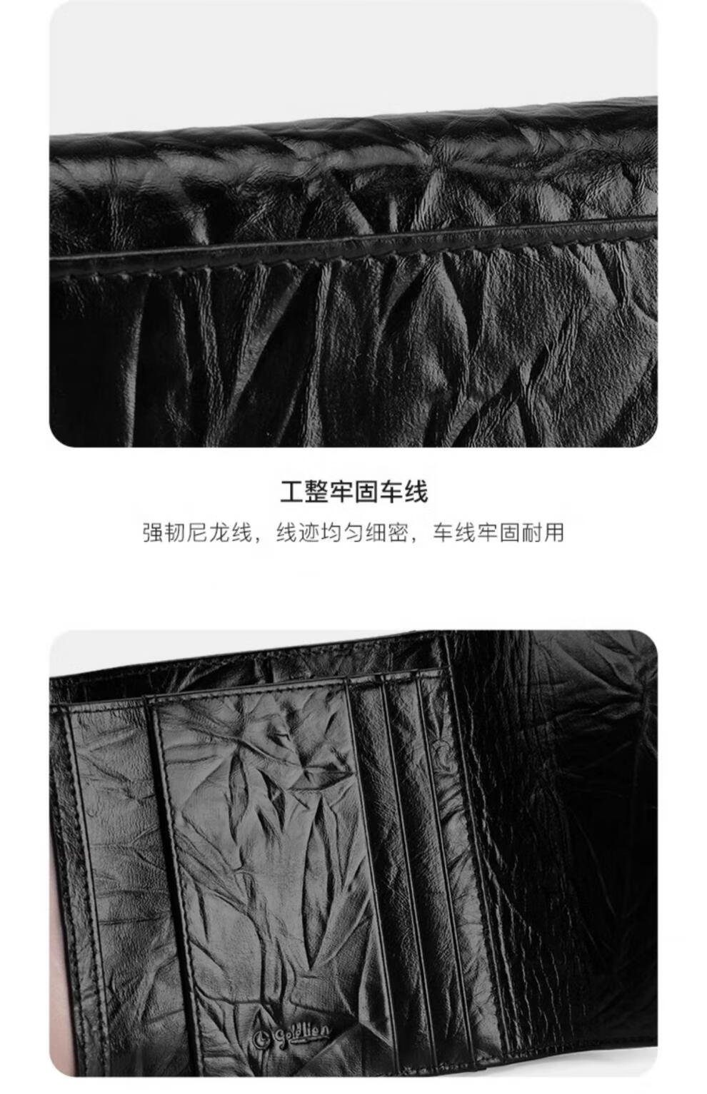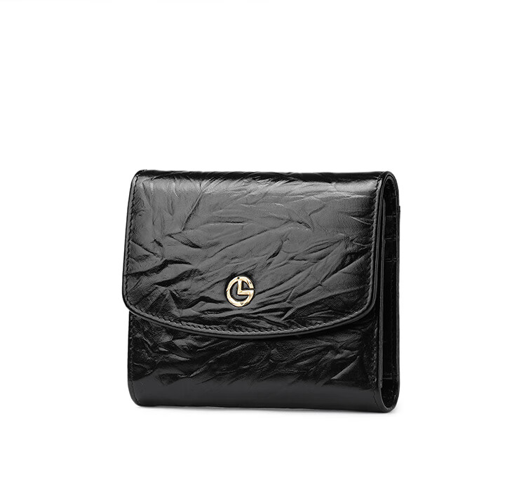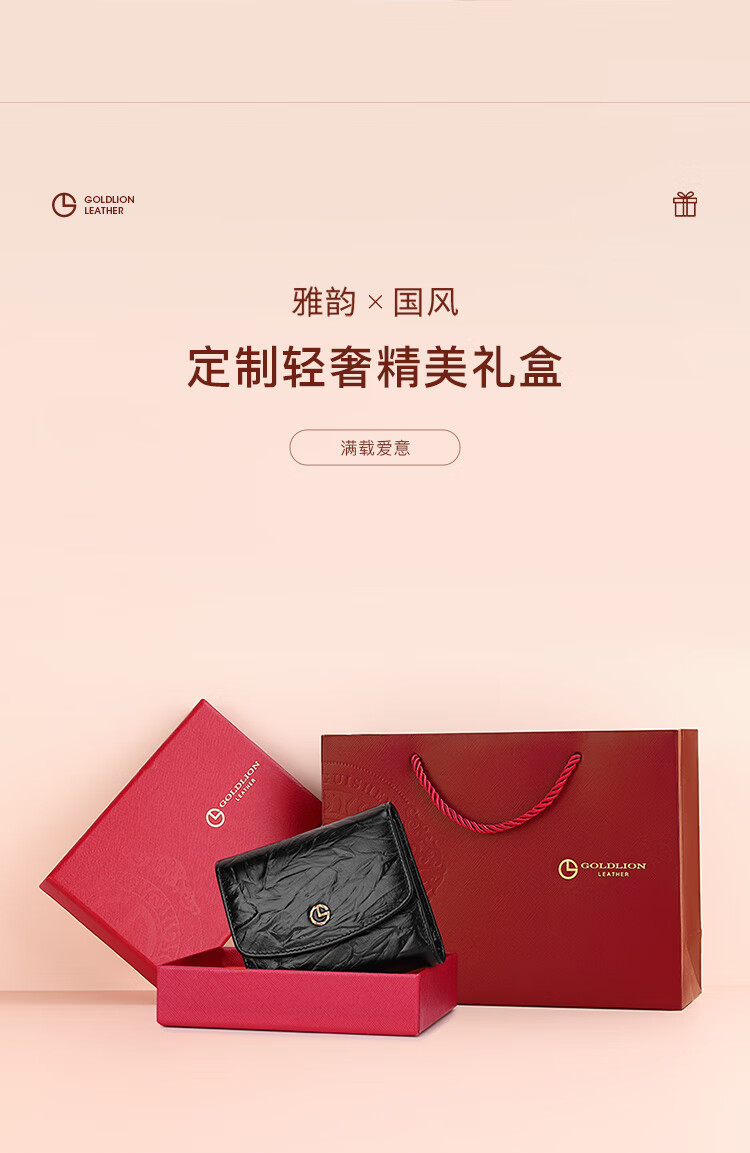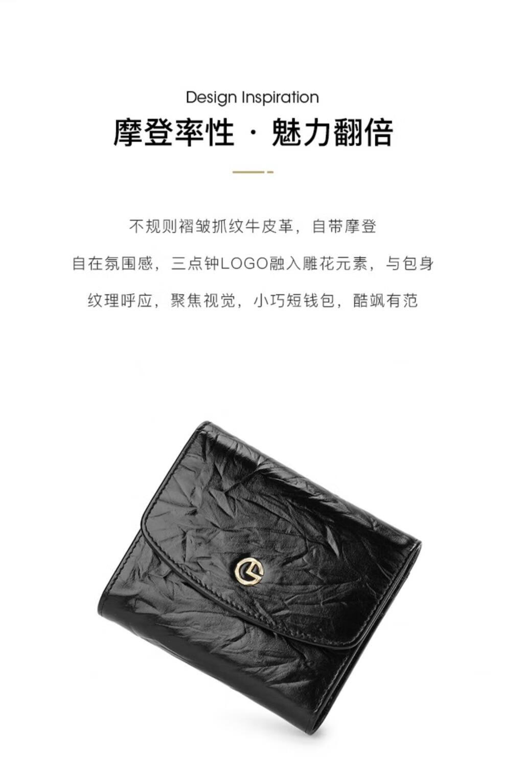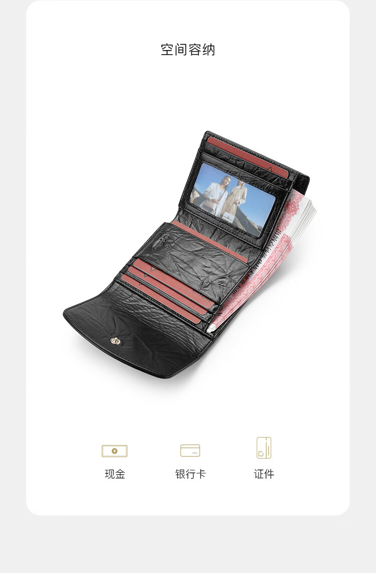 Goldlion 2025 Spring Hot Style Short Wallet Women's Trendy Niche Design Multi-Card Slot Wallet Cowhide Coin Purse Black