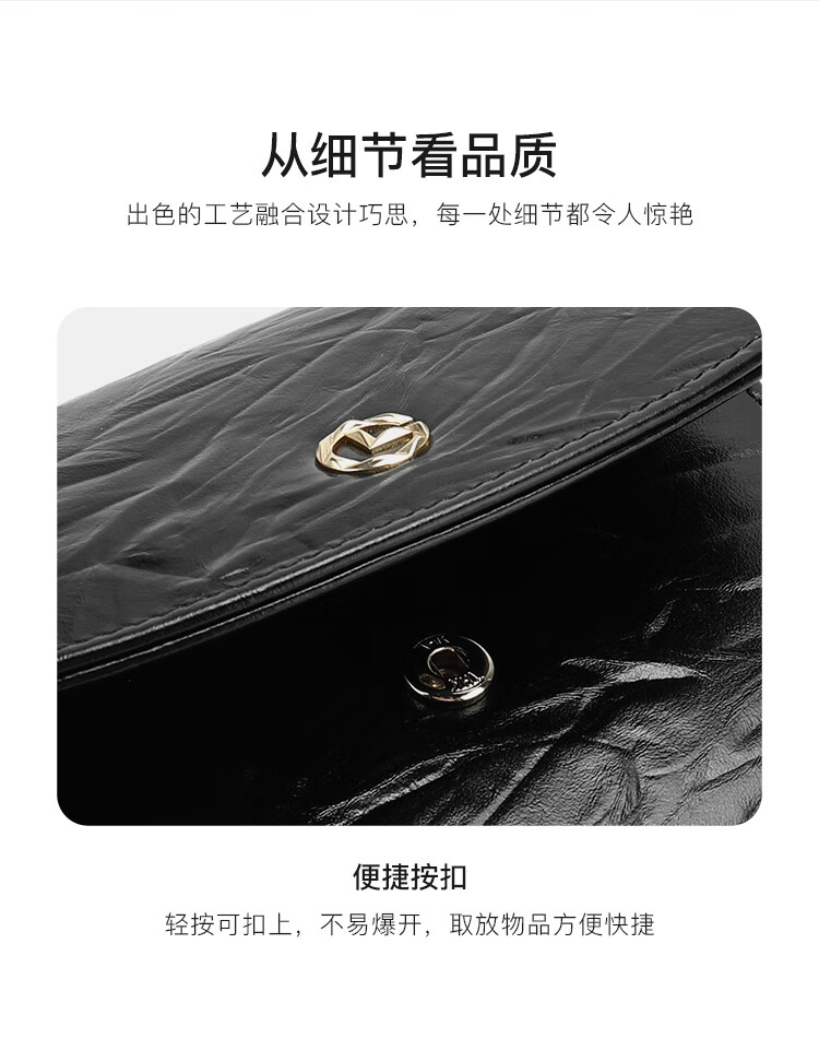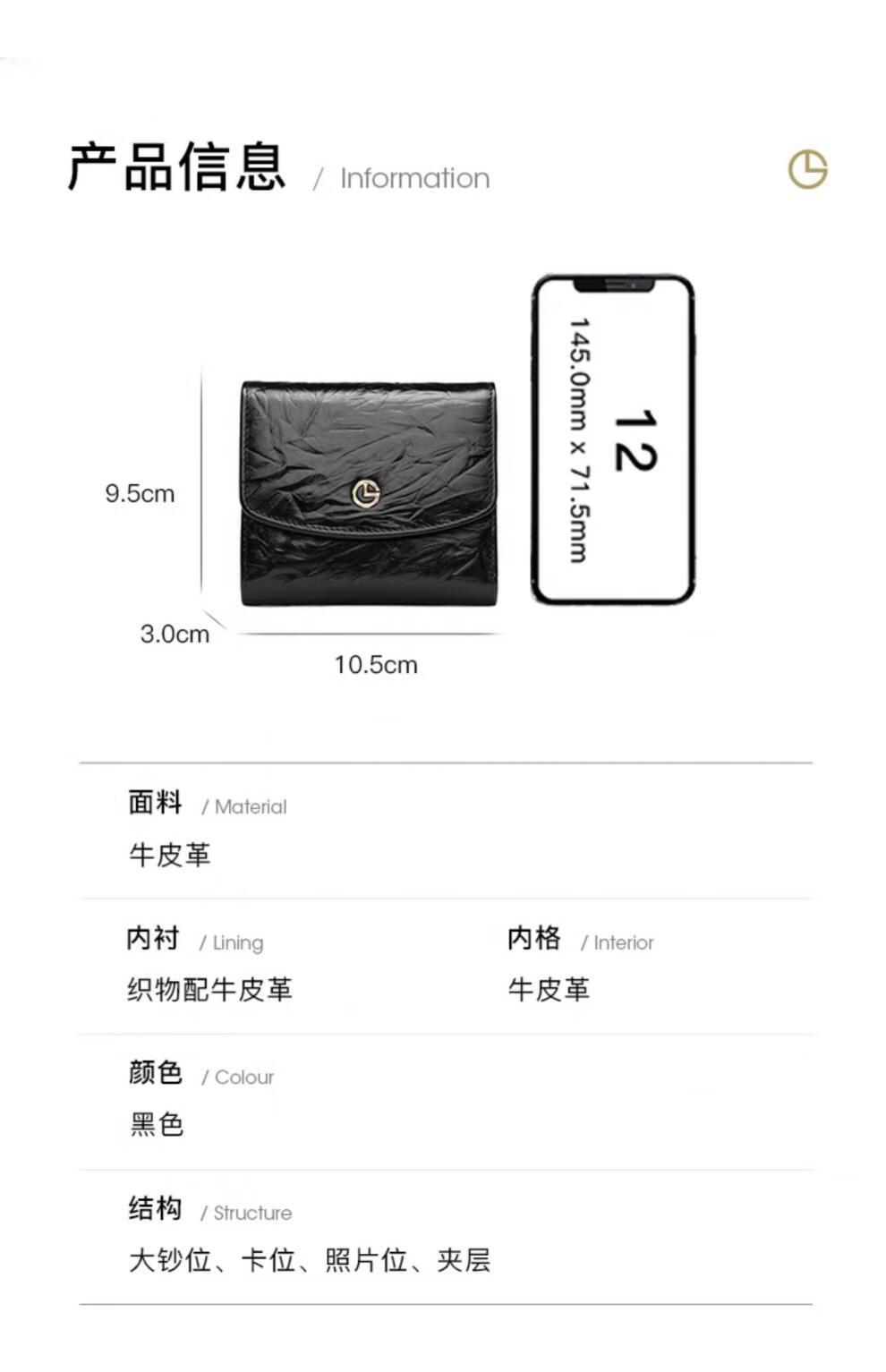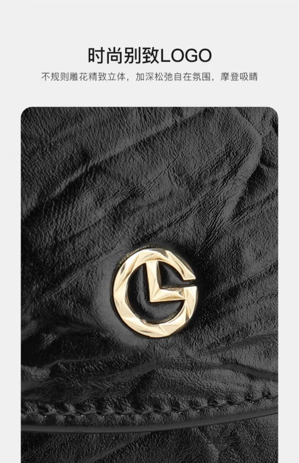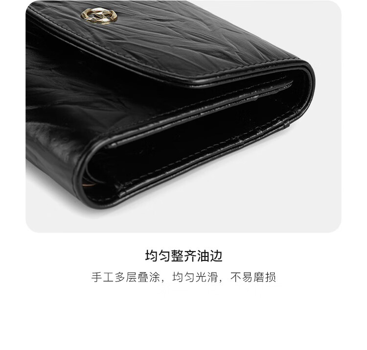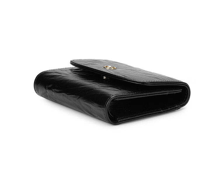 Goldlion 2025 Spring Hot Style Short Wallet Women's Trendy Niche Design Multi-Card Slot Wallet Cowhide Coin Purse Black