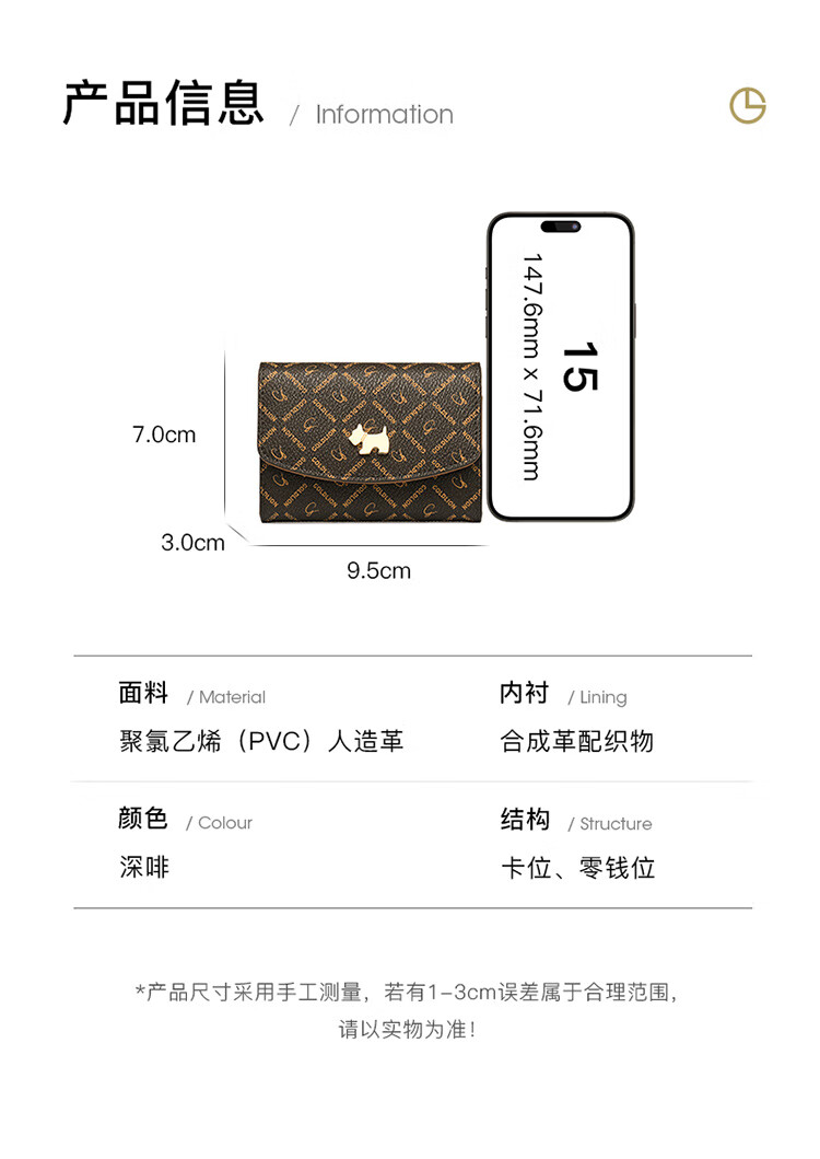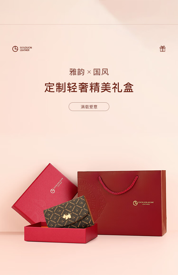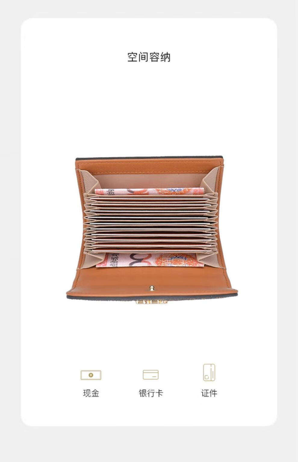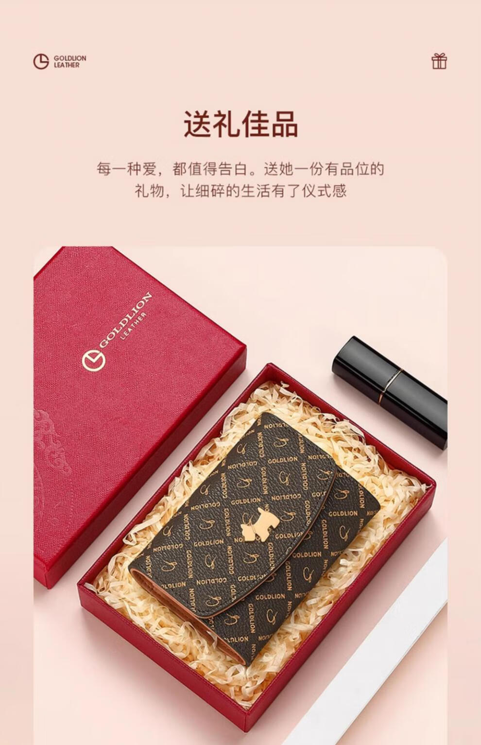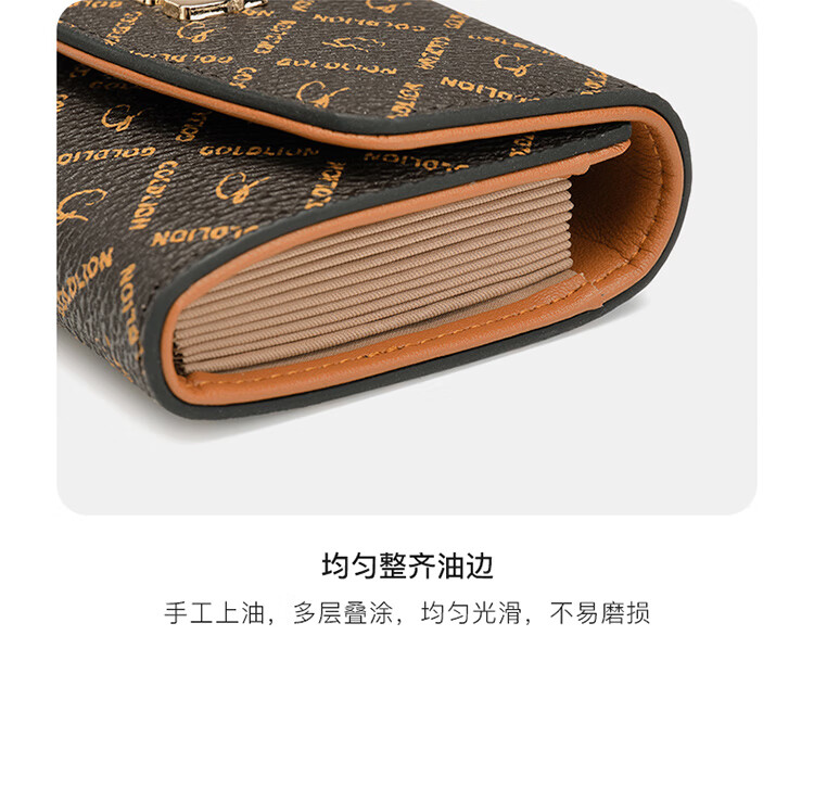 Goldlion 2025 Hot Women's Bag Fashion Printed Wallet Women's Short Cute Puppy Card Holder Multi-Card Slot Wallet Trendy Dark Brown