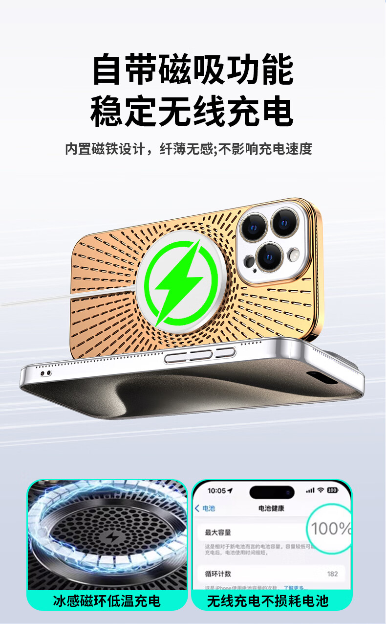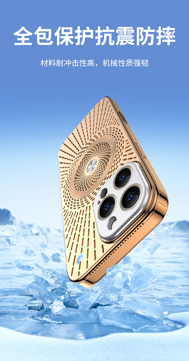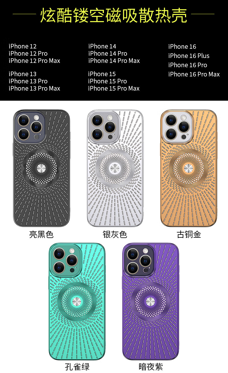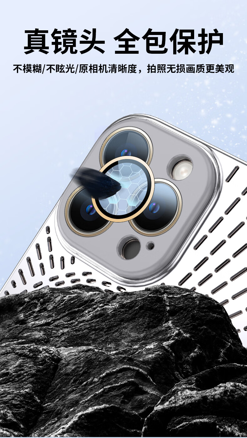 Durability suitable for Apple 17/16/15/14promax mobile phone case, magnetic charging, hollow mesh thread, breathable and cooling lens, all-inclusive protective cover, anti-fall, simple new model, silver gray, Apple 16promax