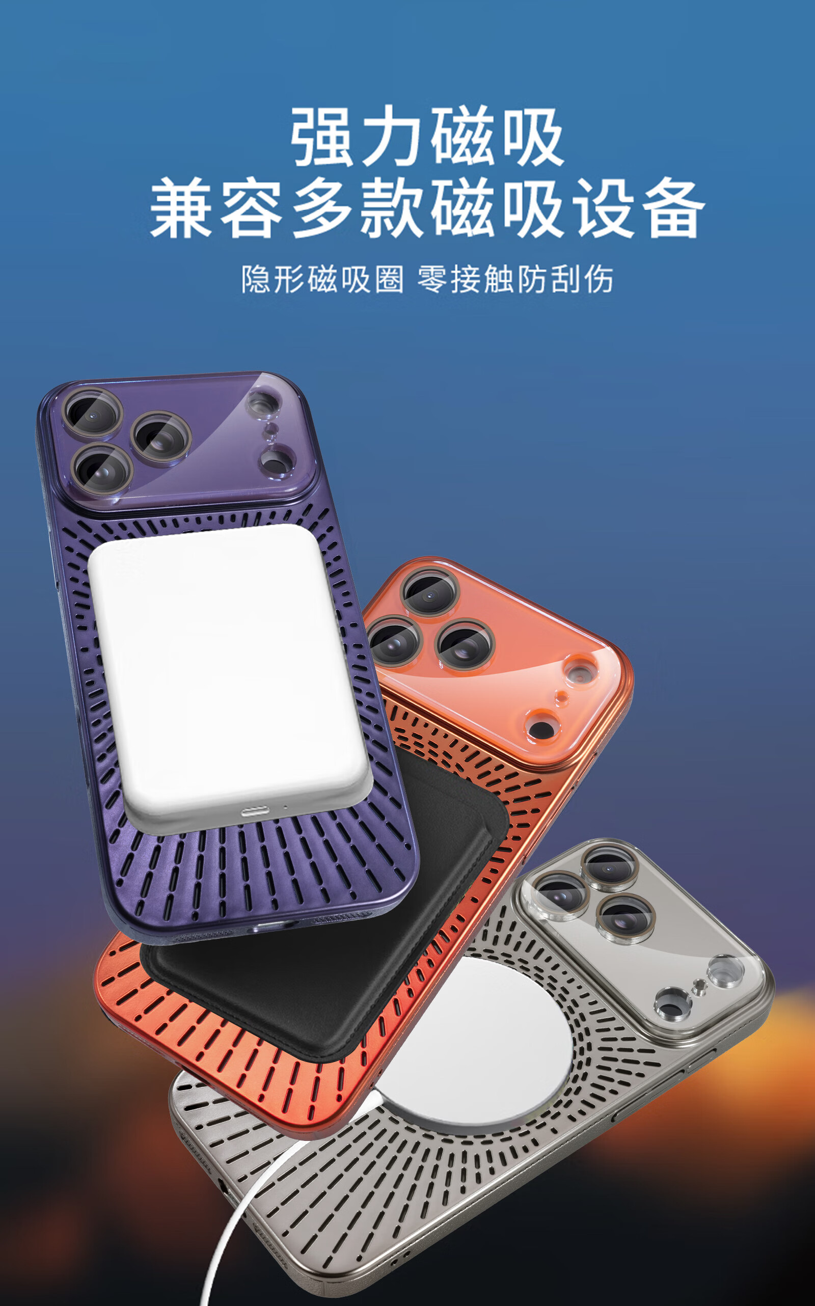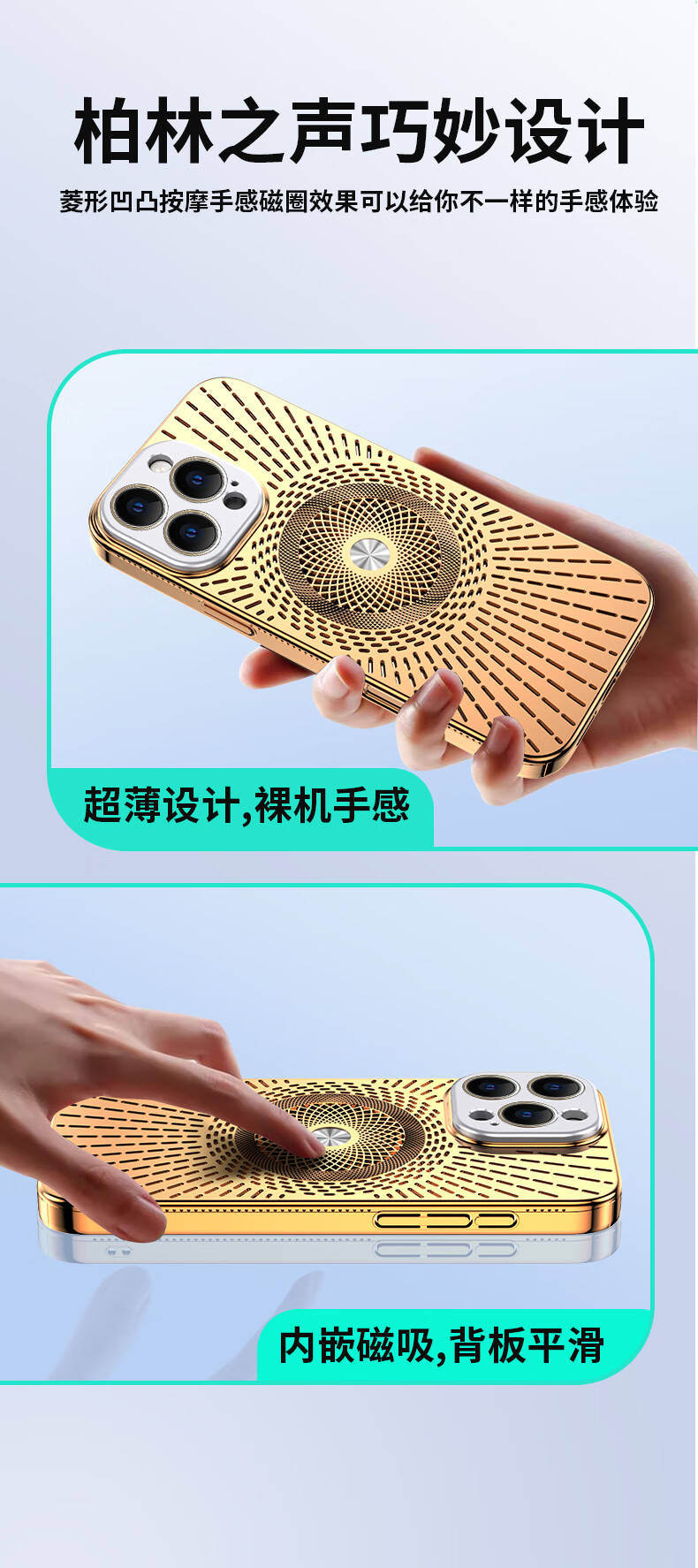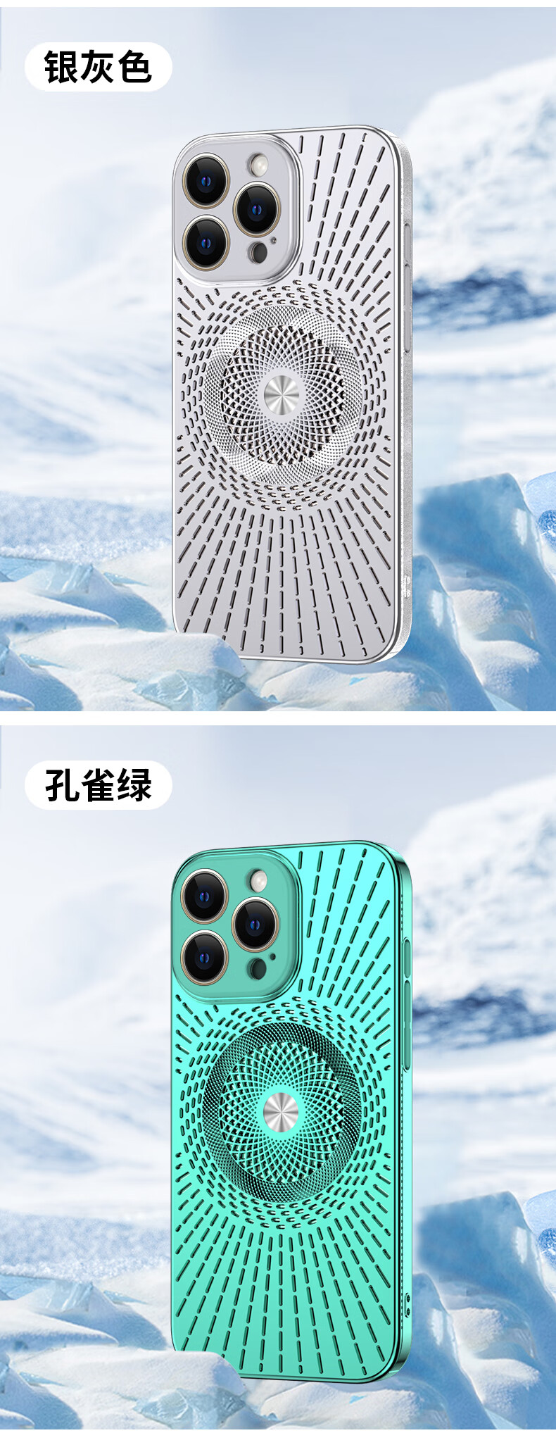 Durability suitable for Apple 17/16/15/14promax mobile phone case, magnetic charging, hollow mesh thread, breathable and cooling lens, all-inclusive protective cover, anti-fall, simple new model, silver gray, Apple 16promax