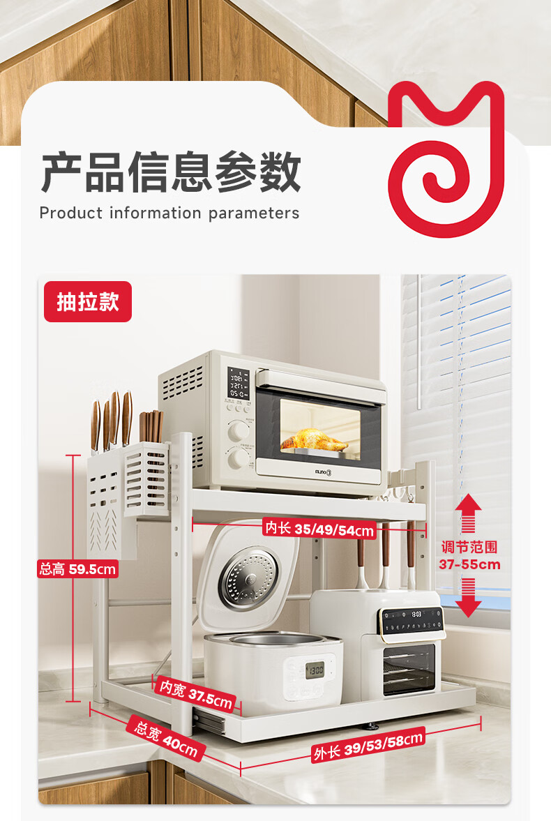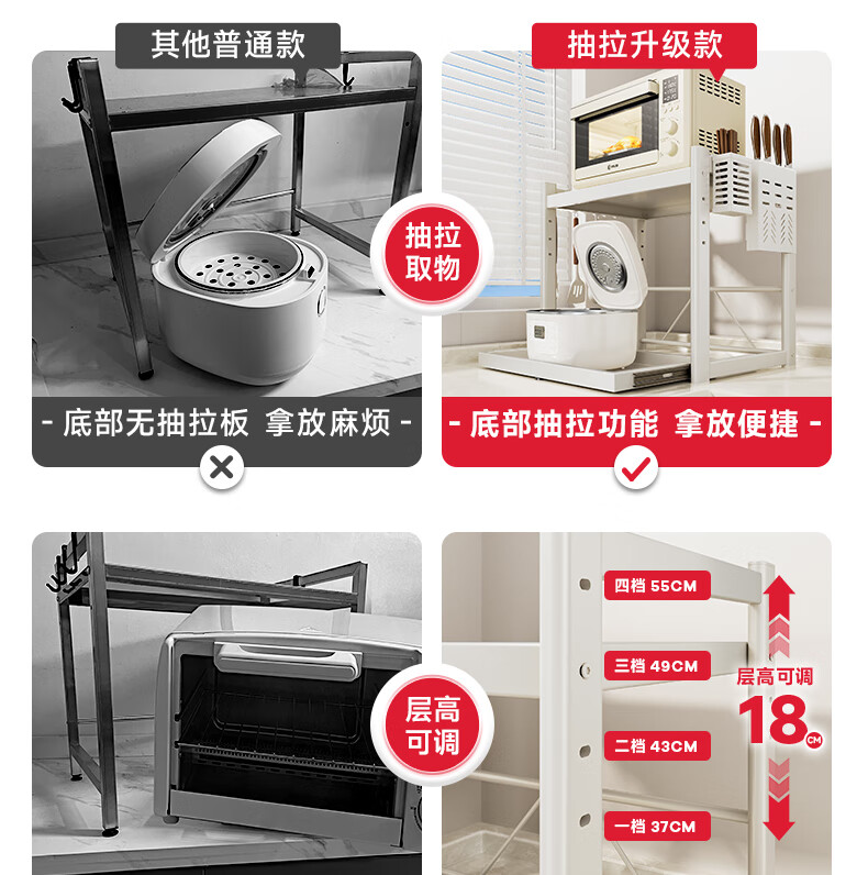 Kitchen Story Microwave Oven Rack Kitchen Rack Microwave Rack Rack Rice Cooker Oven Utensil Storage Rack Orbital Style White 53 Long Floor Height Adjustable