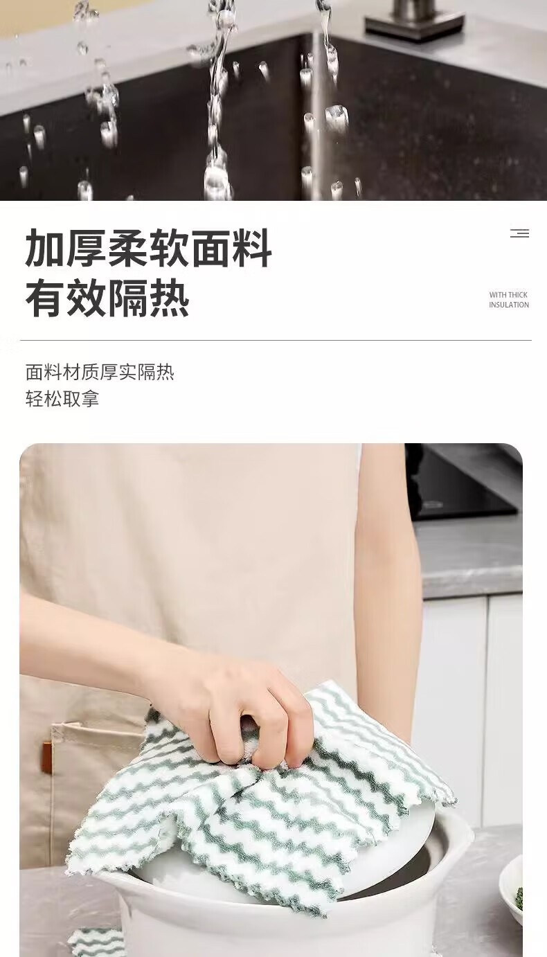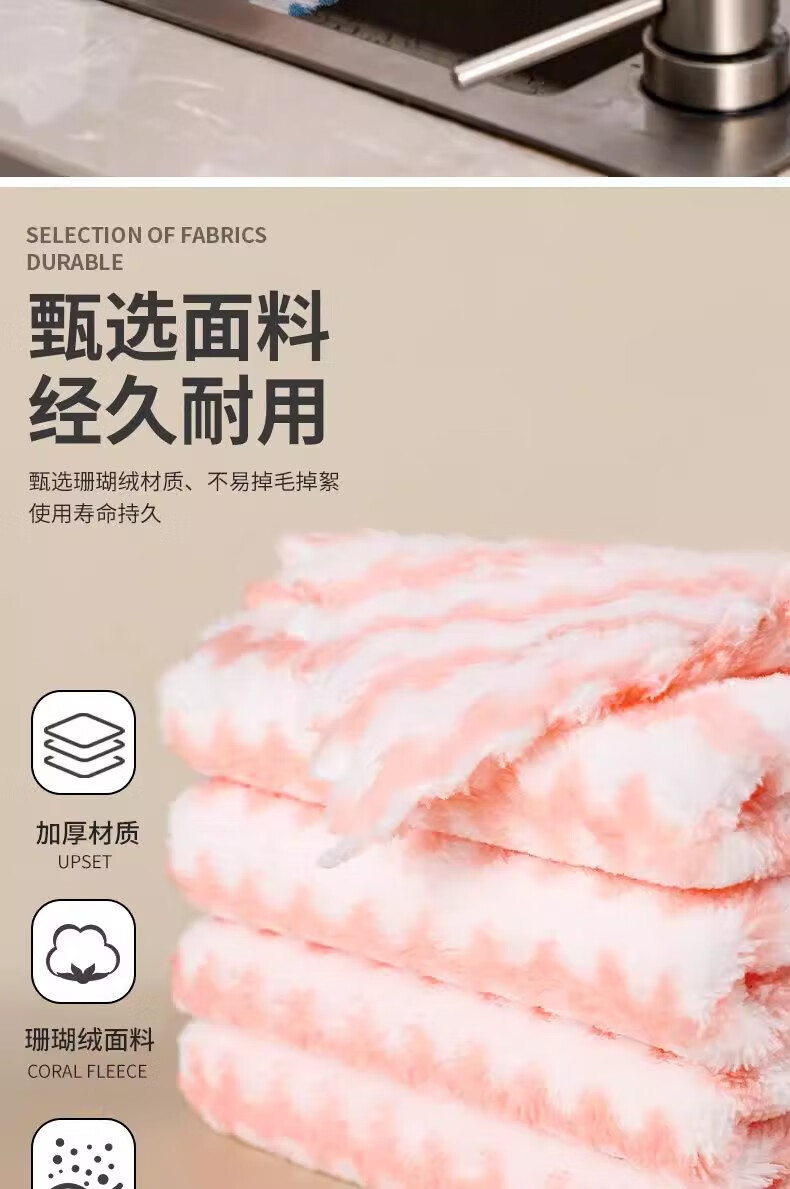 Non-stick oil rag, water-absorbent dishcloth, kitchen special non-lint towel, thickened table scouring pad, coral velvet rag 20*20cm, 5 pack