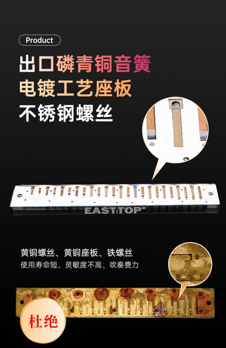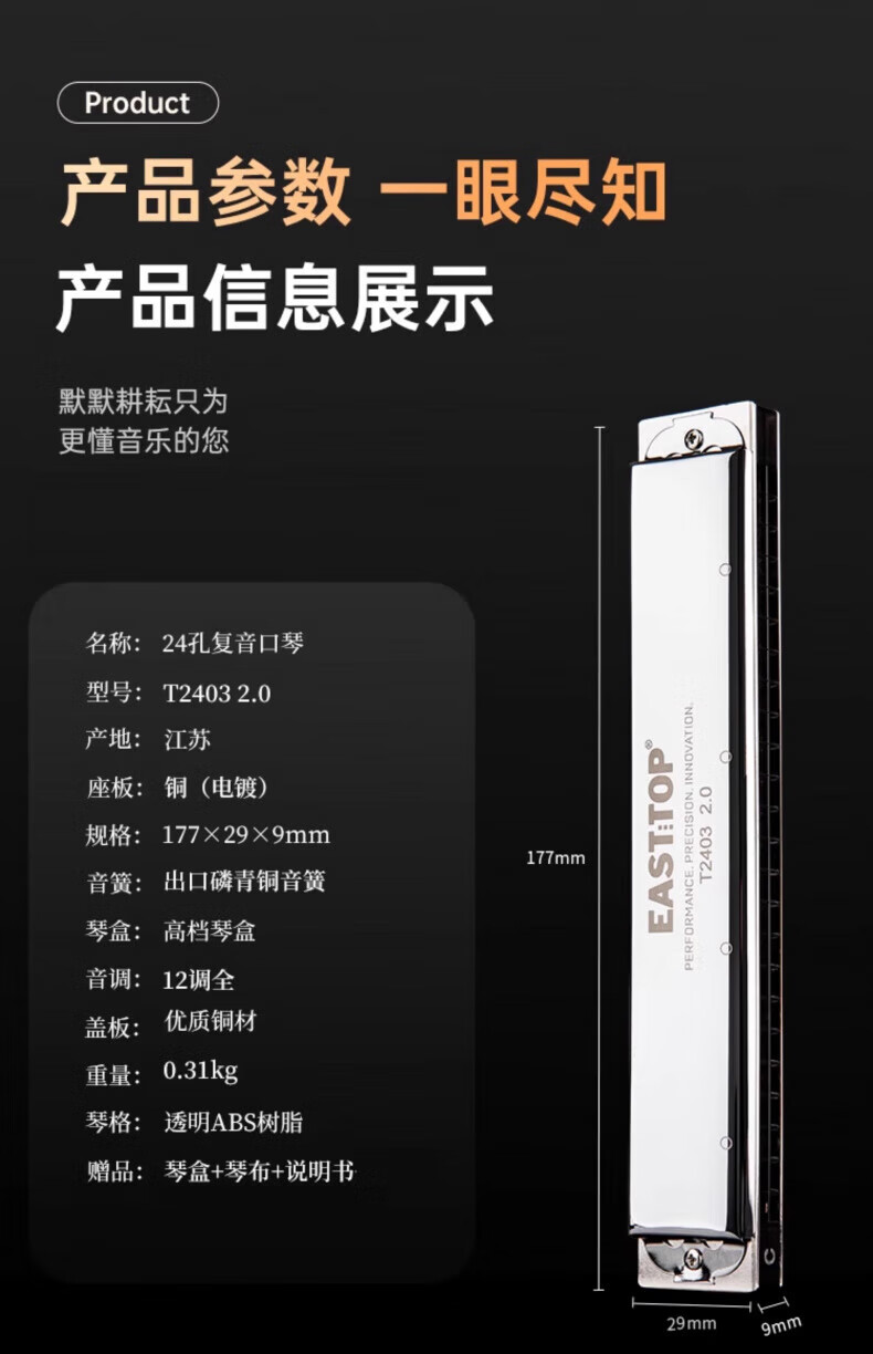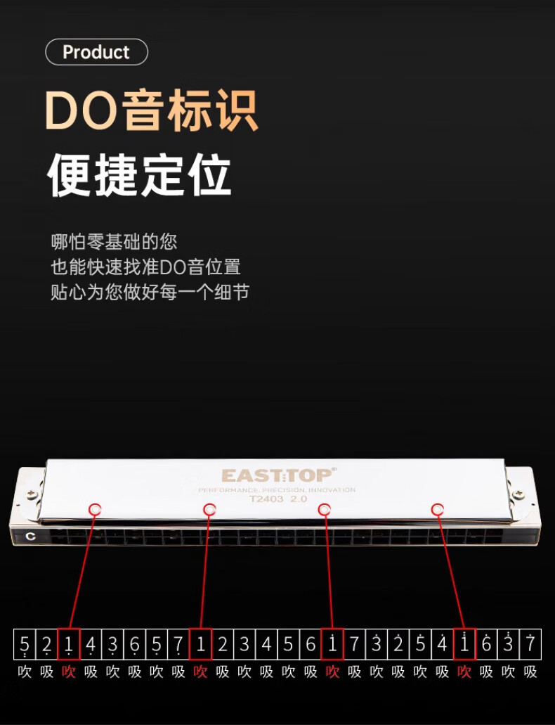 Dongfangding 24-hole polyphonic harmonica student C key adult entry practice beginner harmonica t2403 professional performance level 2.0 #C key = bD key = flat d key
