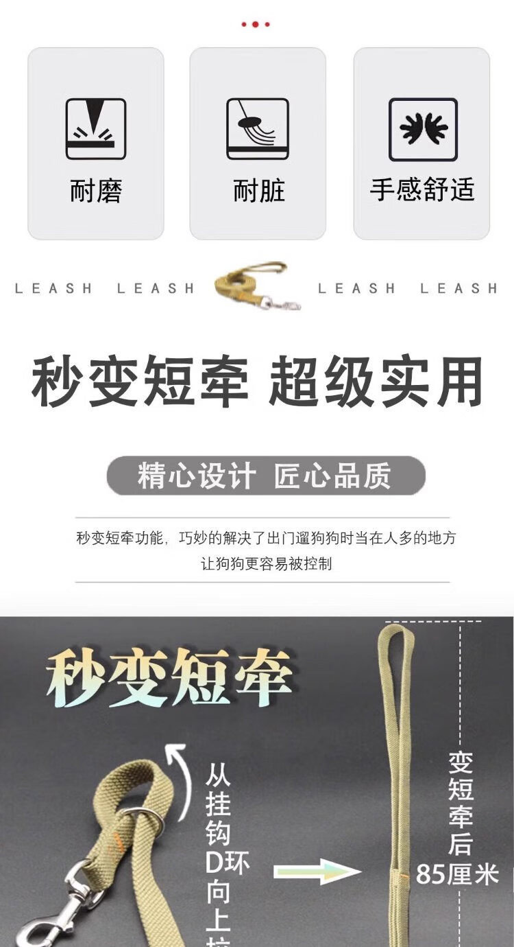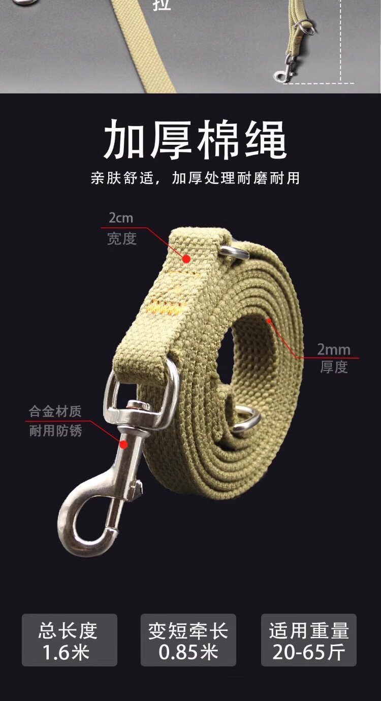 Dog leash thickened special small and large dogs Golden Retriever Labrador German Shepherd collar dog chain cotton leash + collar military green