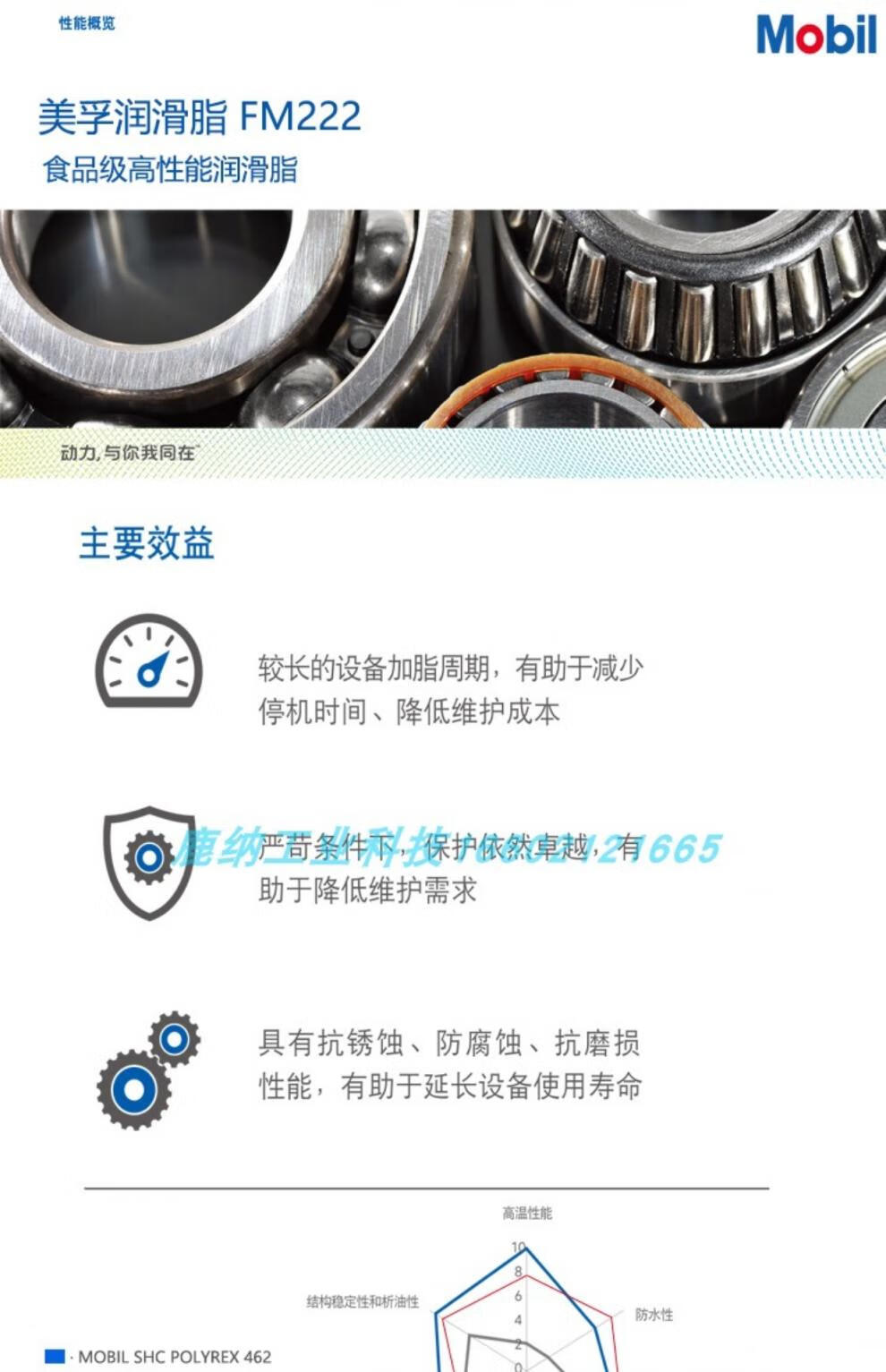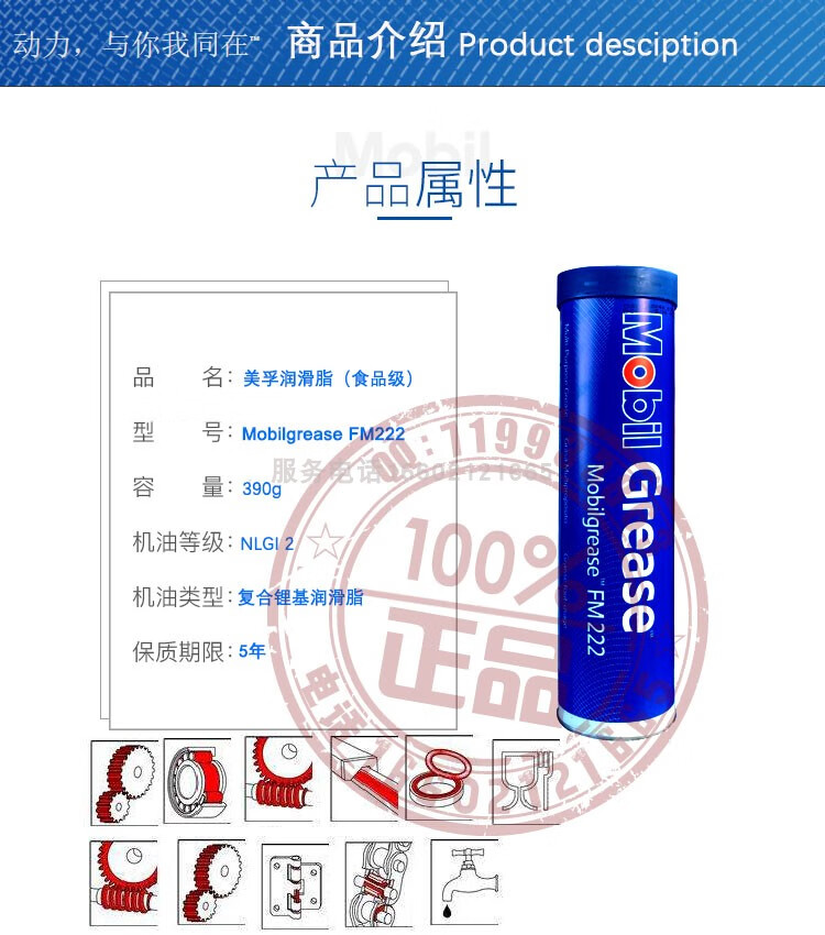 Mobil food grade grease Mobilgerase FM222 white food and pharmaceutical machinery butter Mobil FM222 390g